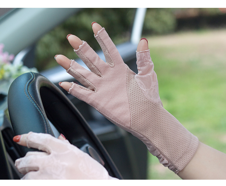 Перчатки, тонкое летнее короткое шелковое кольцо, без пальцев, защита от ультрафиолета