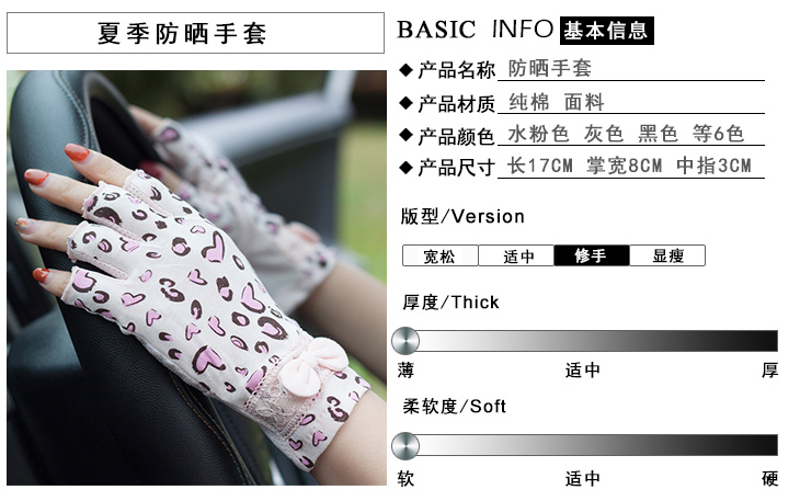 Половину перчатки, которые являются более милыми и стильными. Это очень удобно ездить или ездить летом. Это хлопок, воздухопроницаемый и не слабый, и это удобнее принести. Общие руки могут быть принесены. 16- 18 см мм