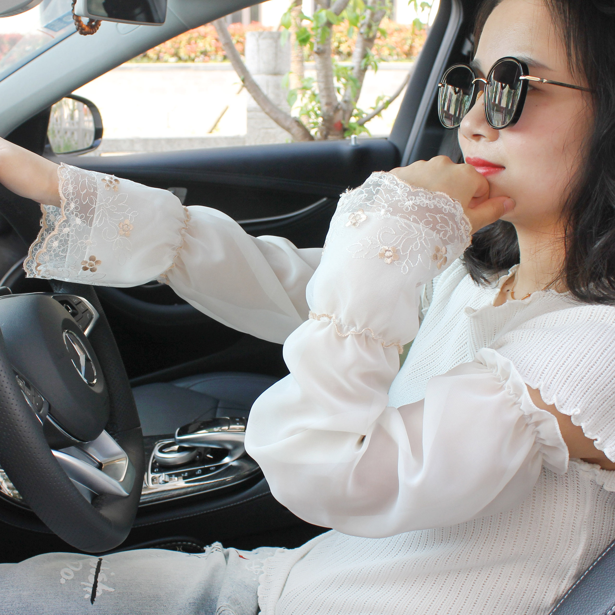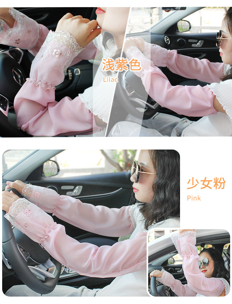 Кружевные летние нарукавники, перчатки, тонкий шелковый длинный шифоновый комплект, защита от солнца, защита от ультрафиолета