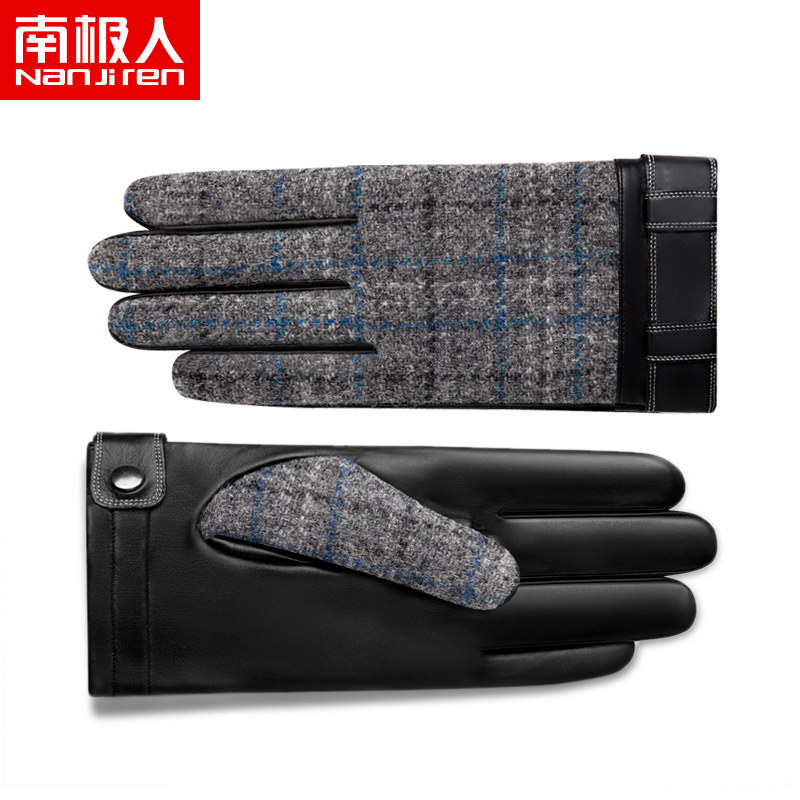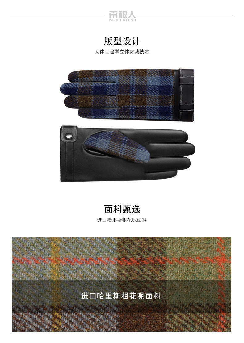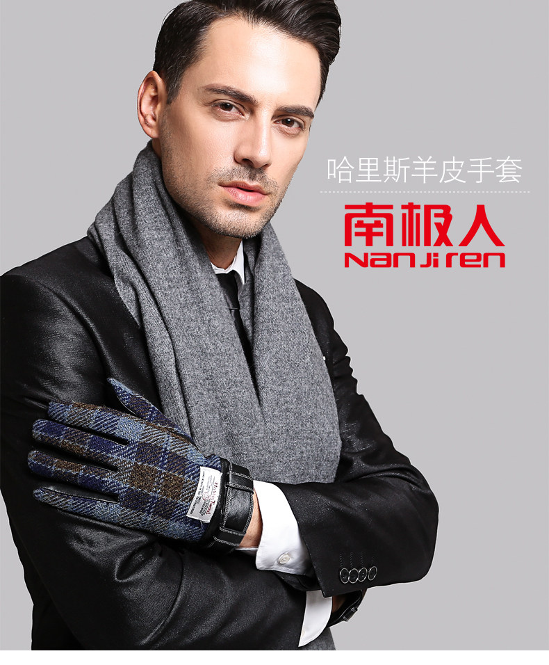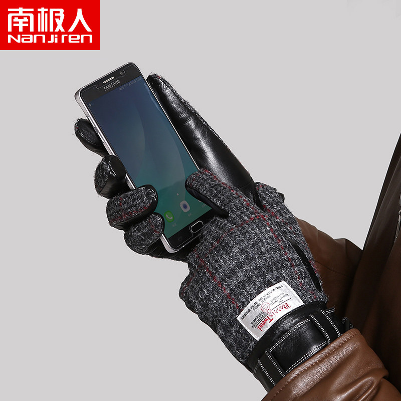 南极人 Харрис Твид Харрис Шотландский грубая женская шерстяная шерсть мужские зимние кожаные перчатки