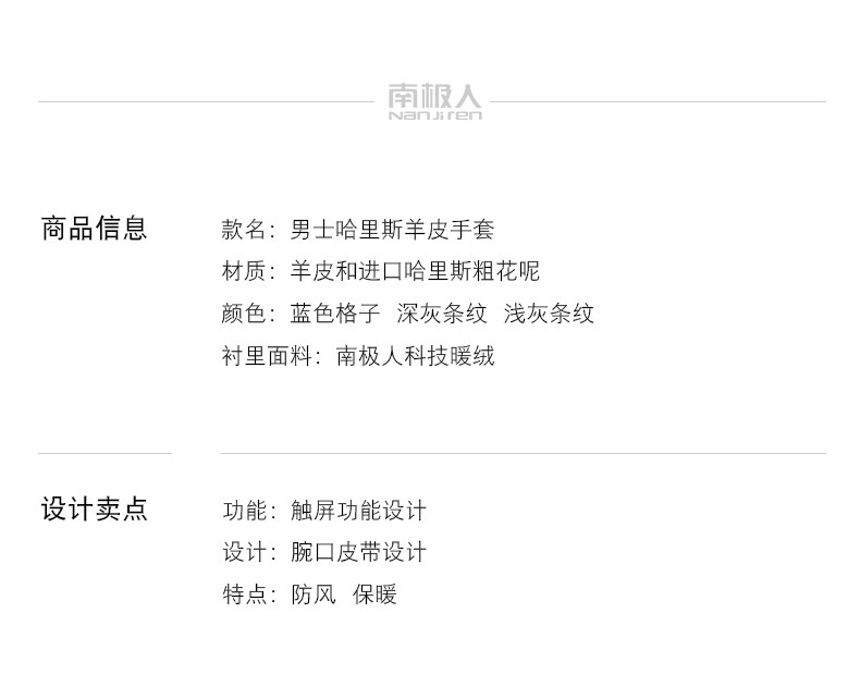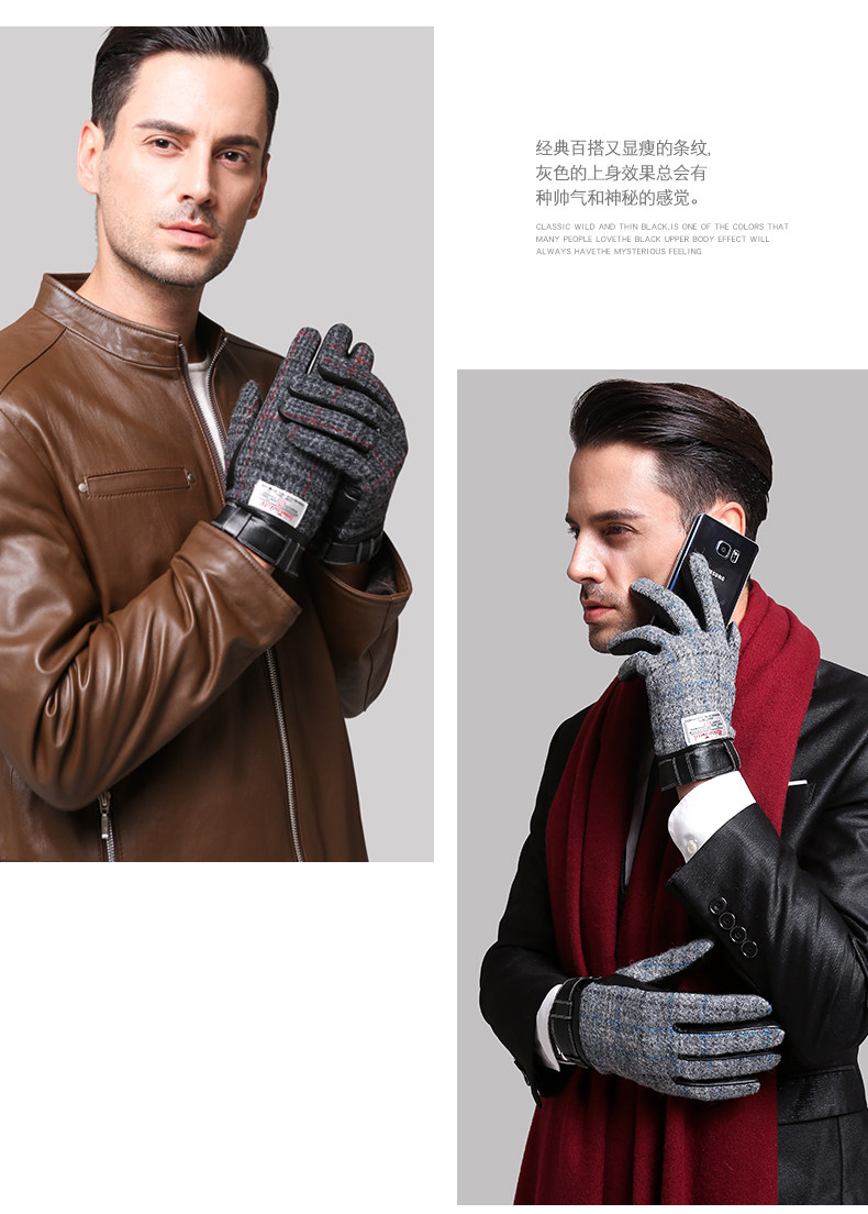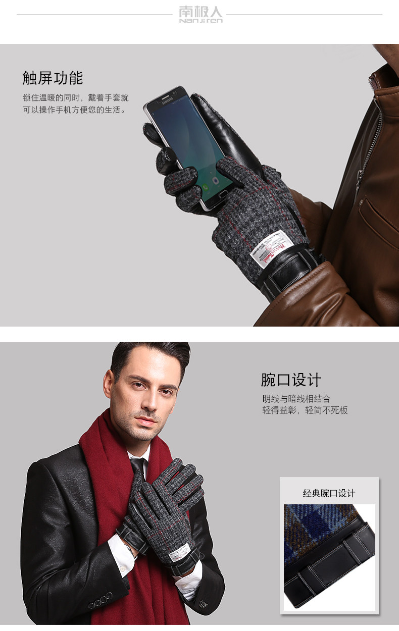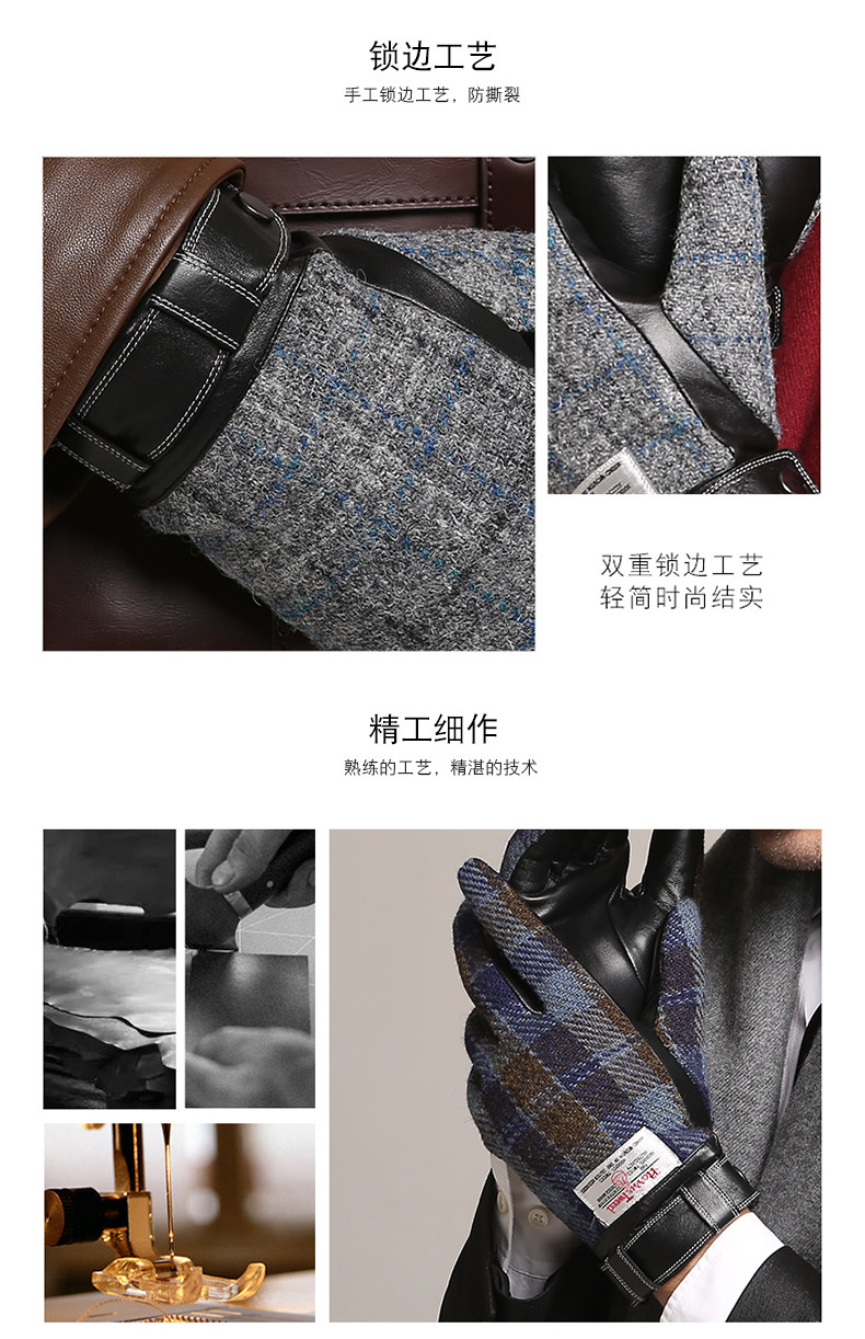 南极人 Харрис Твид Харрис Шотландский грубая женская шерстяная шерсть мужские зимние кожаные перчатки