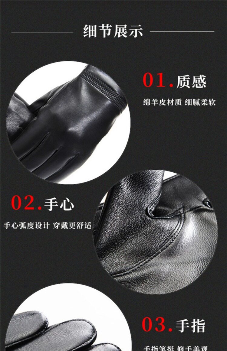 Мужские демисезонные удерживающие тепло перчатки из овчины, тонкий флисовый комплект, овечка, увеличенная толщина, из натуральной кожи