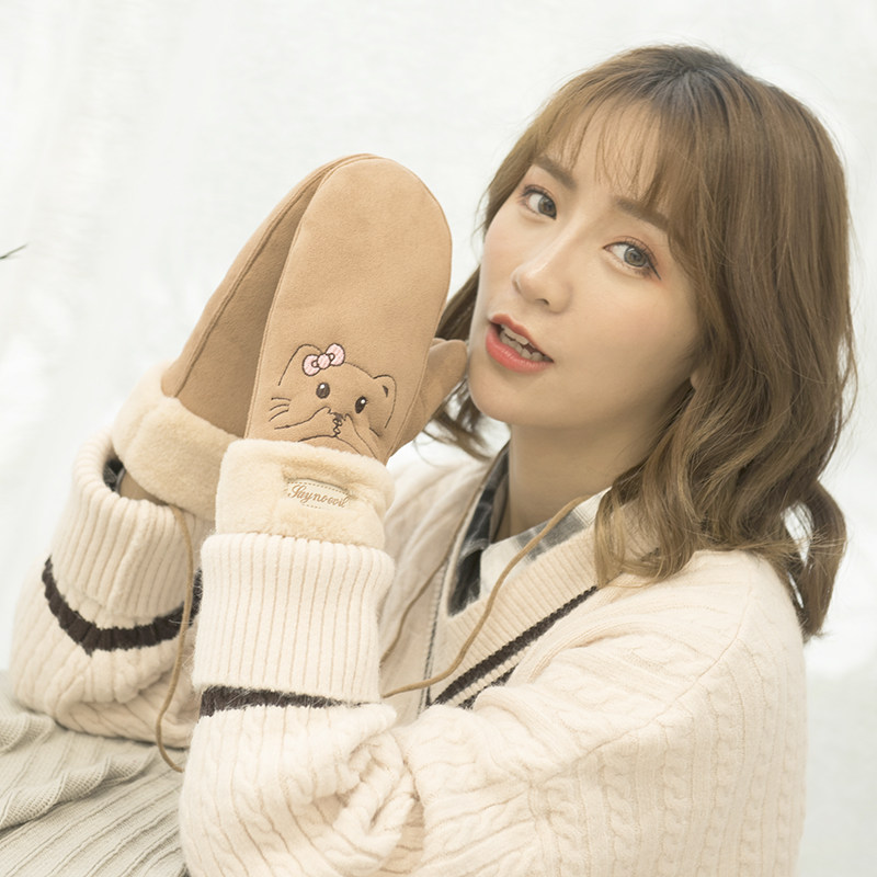 Перчатки, утепленный удерживающий тепло ветрозащитный зимний комплект для школьников, увеличенная толщина, в корейском стиле