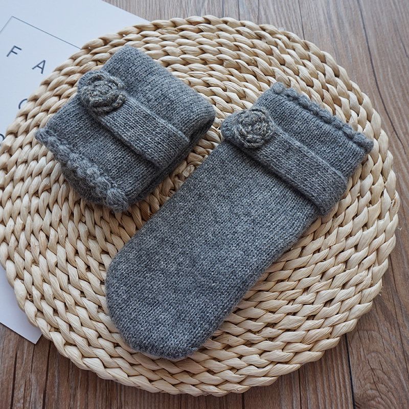 Clasca Winter Wind's Women's Double Wool Wool Theme Connection Fingers рука с крюком цветок чистый цвет шерстя