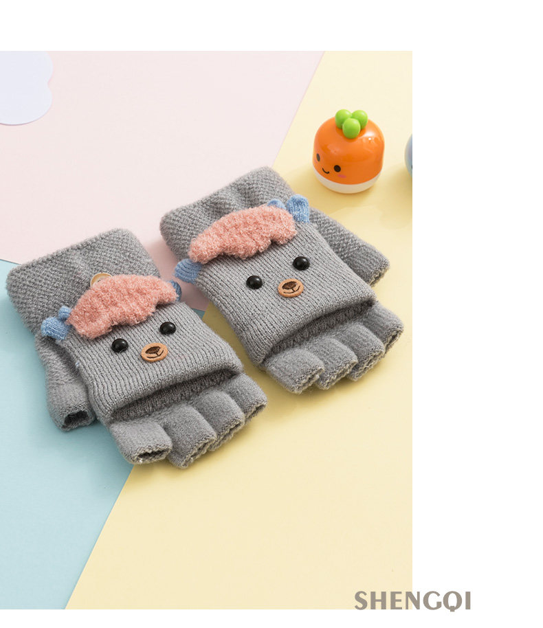 盛琦 Детские зимние трикотажные ветрозащитные удерживающие тепло мультяшные флисовые перчатки, без пальцев