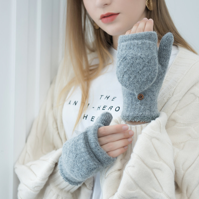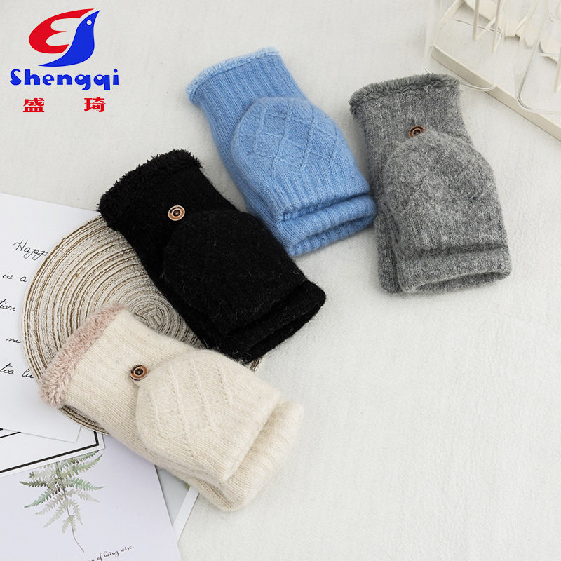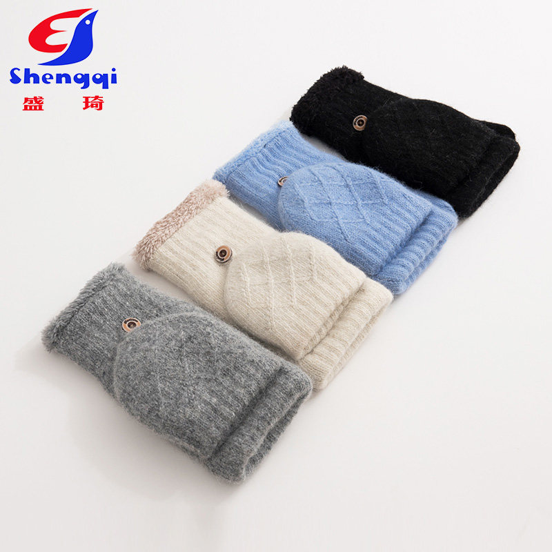 盛琦 Перчатки, утепленный шерстяной трикотажный ветрозащитный удерживающий тепло милый комплект, без пальцев