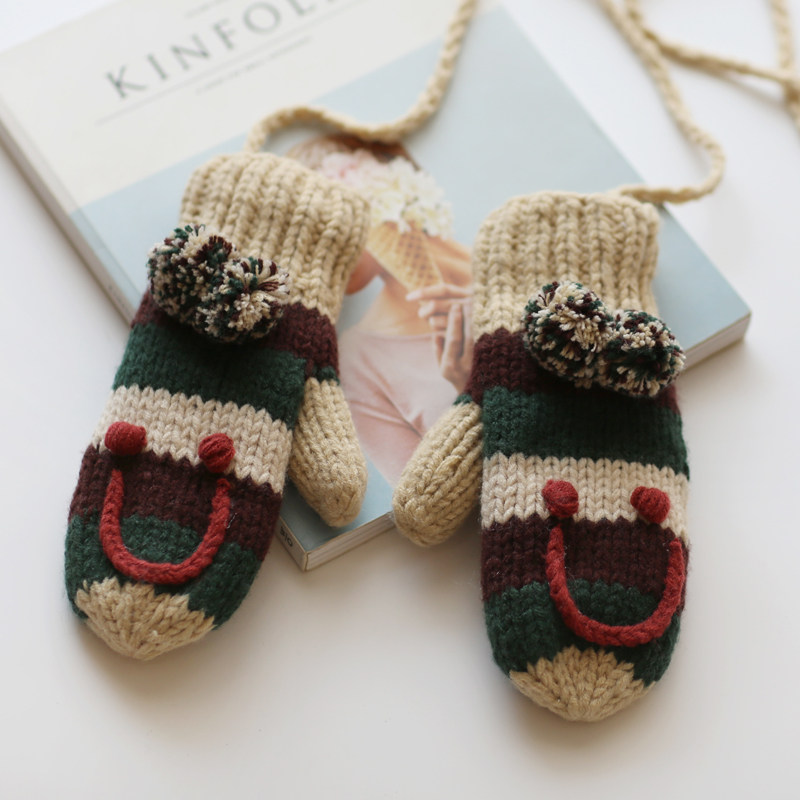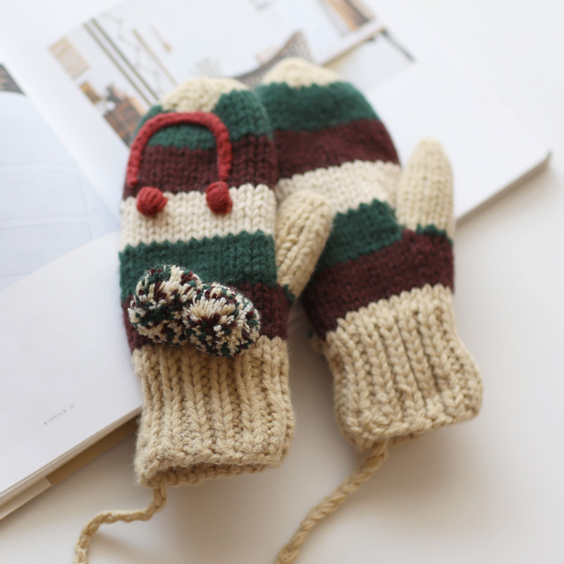 Шерстяные перчатки, удерживающий тепло милый флисовый мультяшный трикотажный комплект для школьников, увеличенная толщина, в корейском стиле