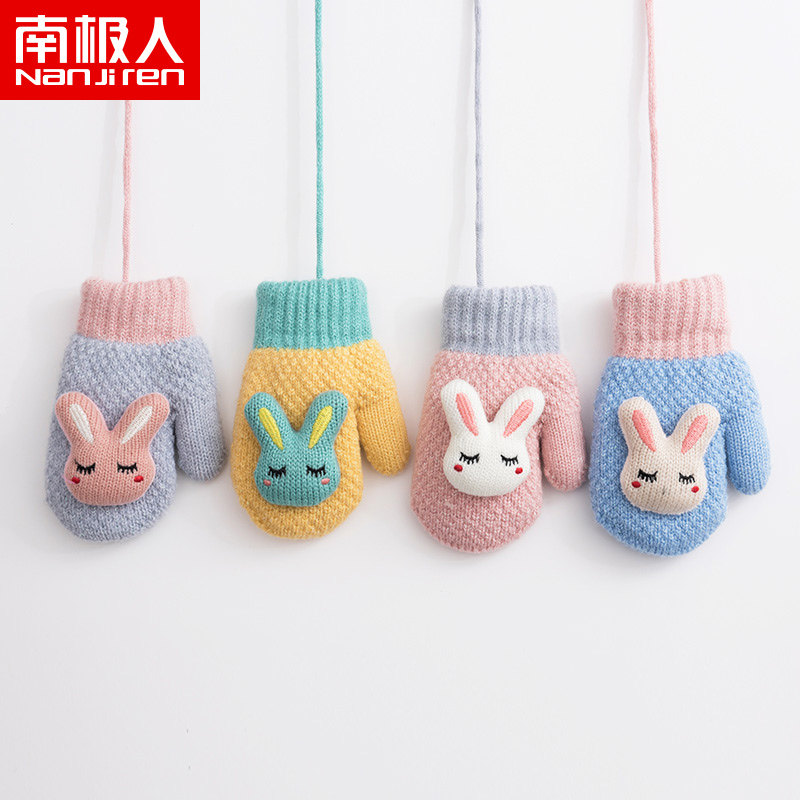 南极人 Детские перчатки, мультяшный утепленный удерживающий тепло детский кролик