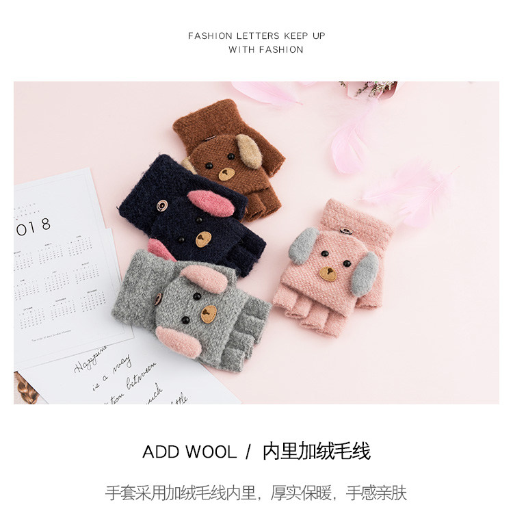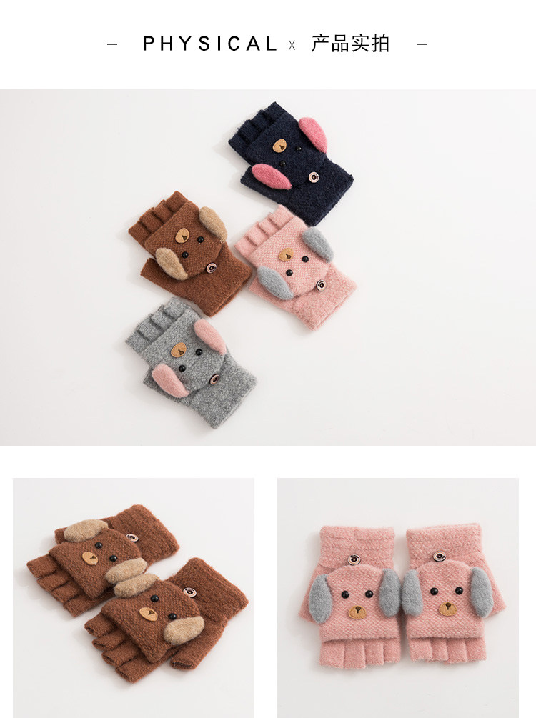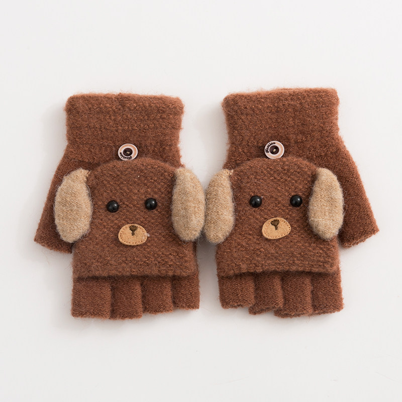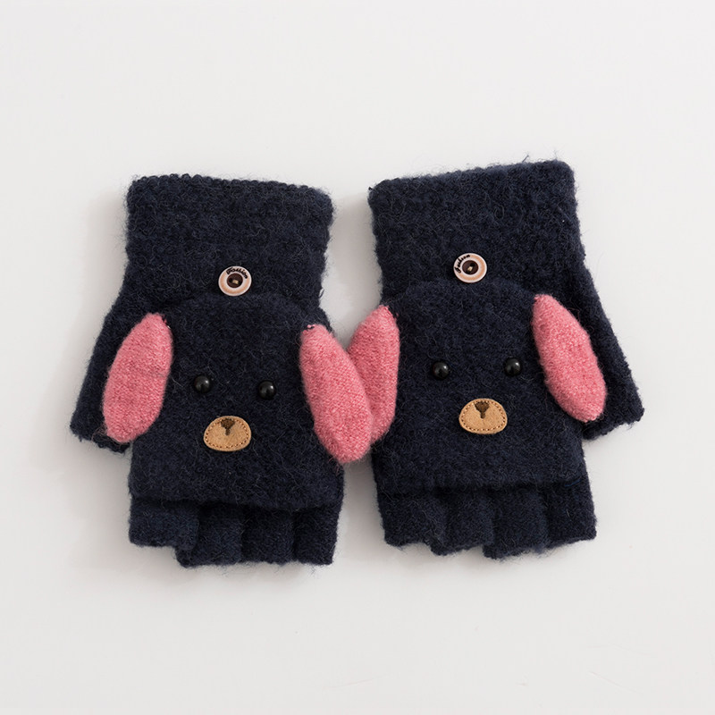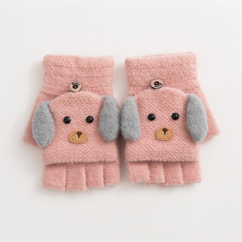 Зимние перчатки, удерживающий тепло шерстяной трикотажный милый ветрозащитный японский комплект для школьников, без пальцев