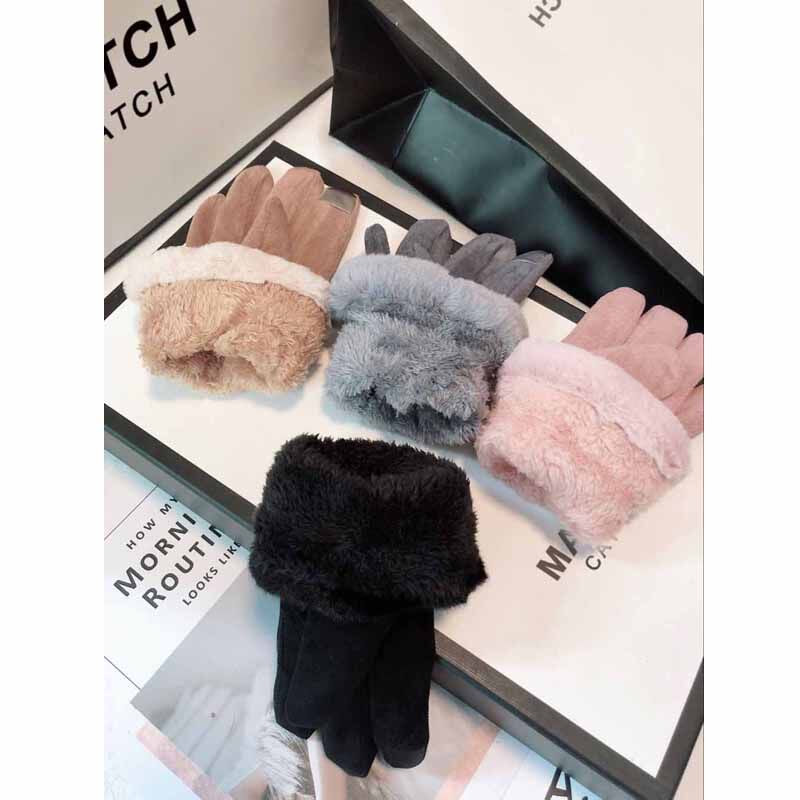 Перчатки, удерживающий тепло милый утепленный бархатный комплект для школьников