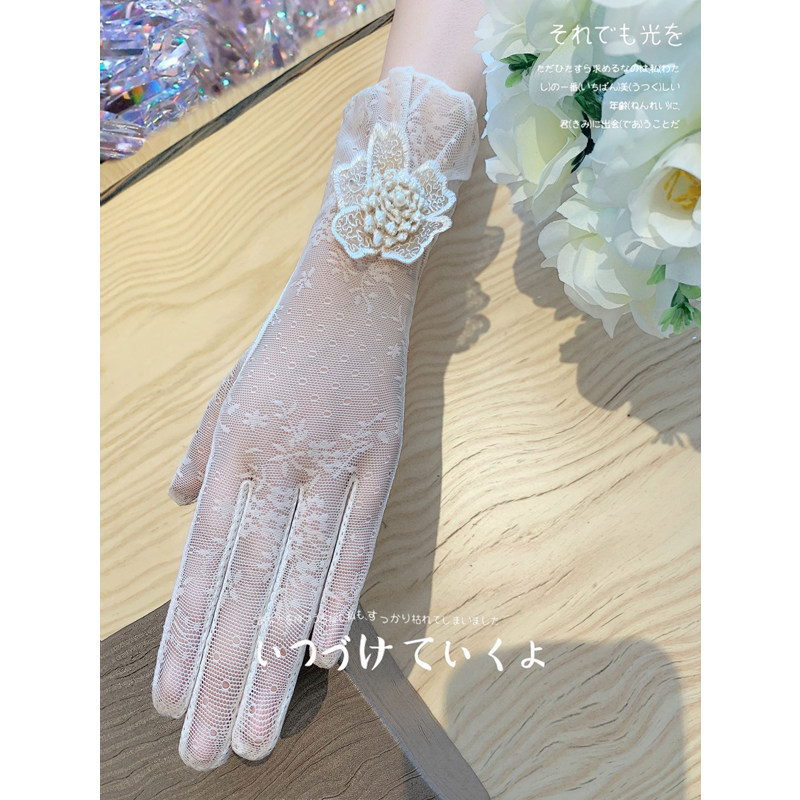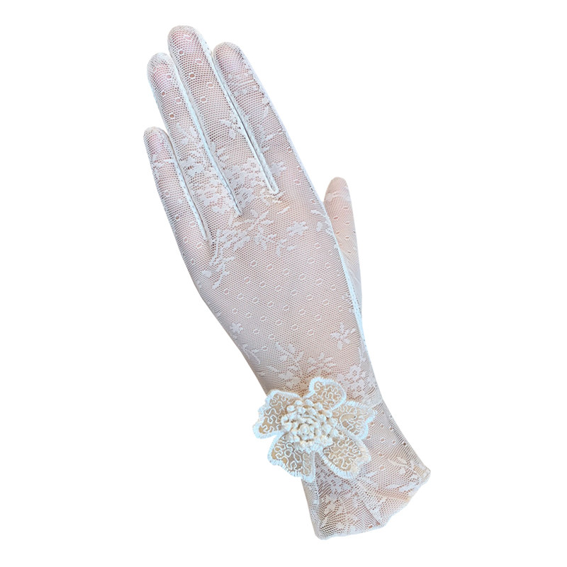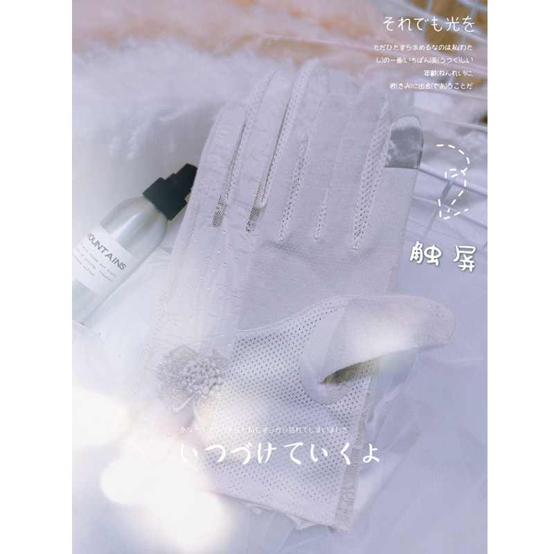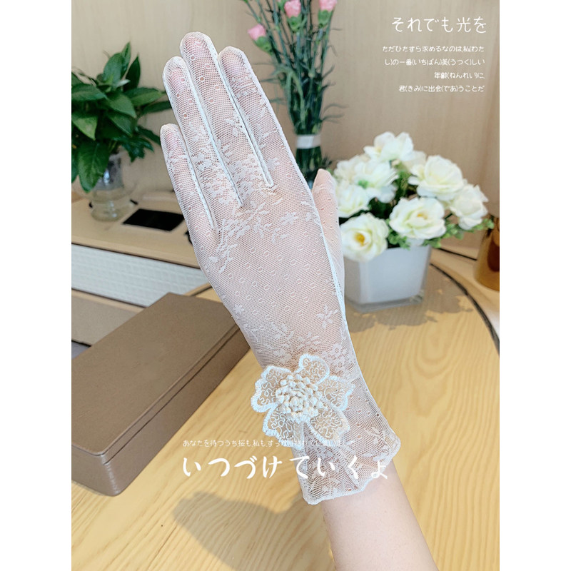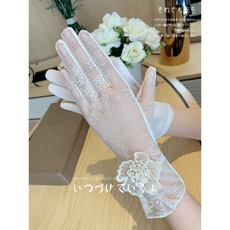 Перчатки, короткий тонкий кружевной летний дорожный модный милый эластичный нескользящий шелковый комплект, защита от солнца