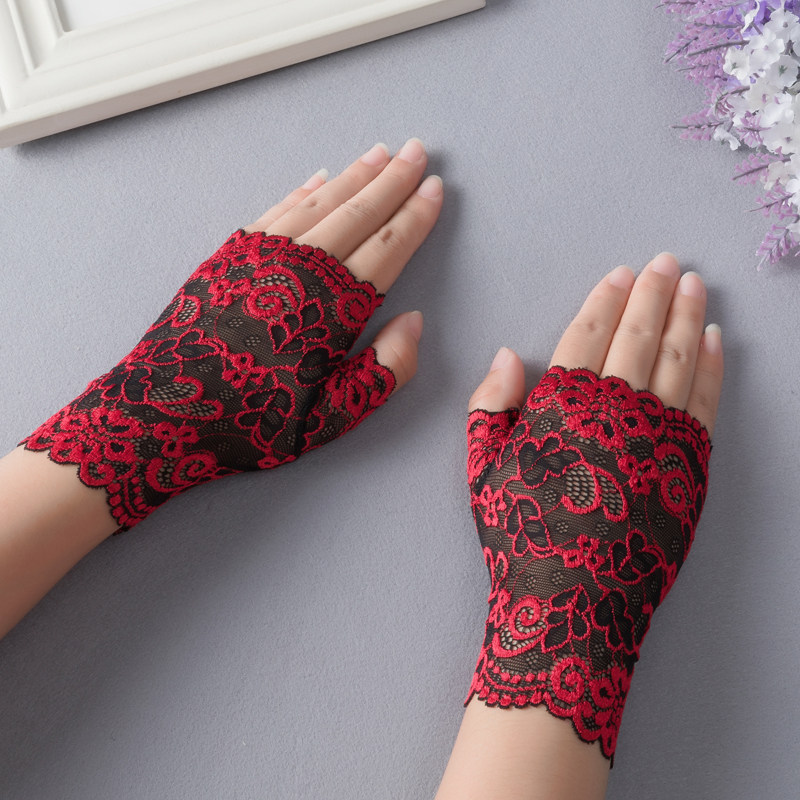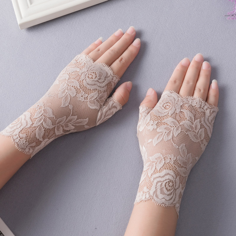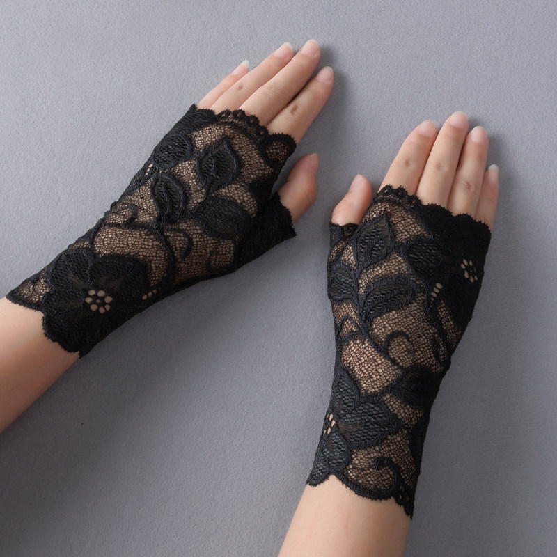 Сексуальные эластичные кружевные перчатки, тонкий нескользящий комплект, без пальцев, защита от солнца