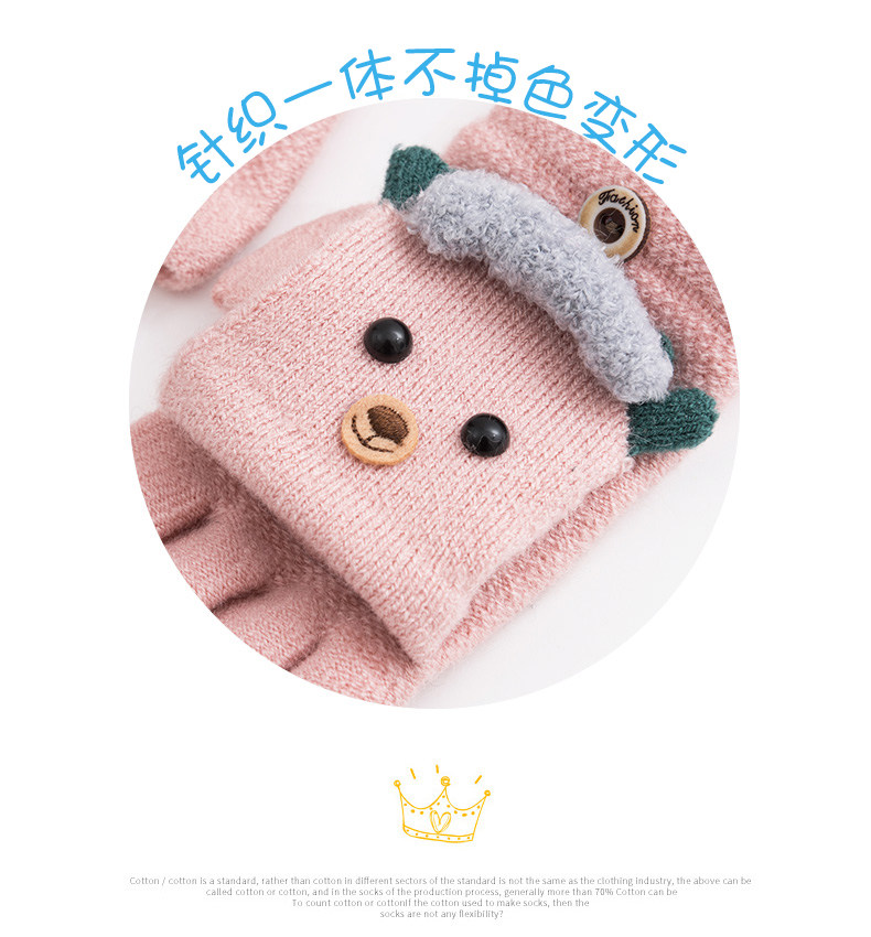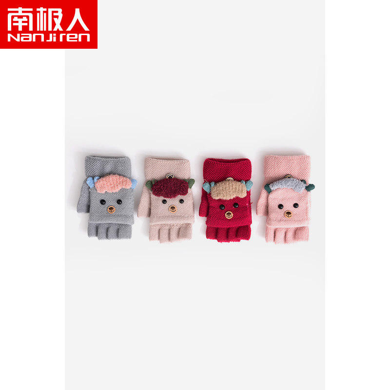 南极人 Зимние детские трикотажные перчатки, мультяшный милый удерживающий тепло мужской мягкий комплект, без пальцев