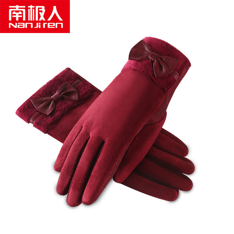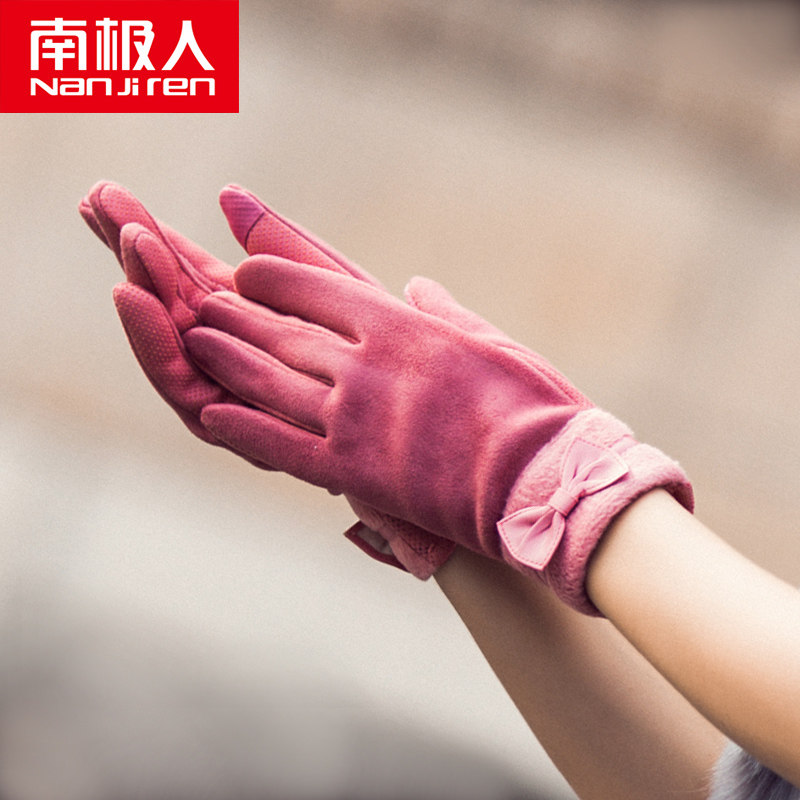 南极人 Перчатки, зимний милый бархатный удерживающий тепло комплект с бантиком для школьников, в корейском стиле