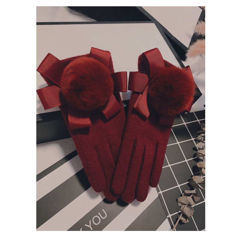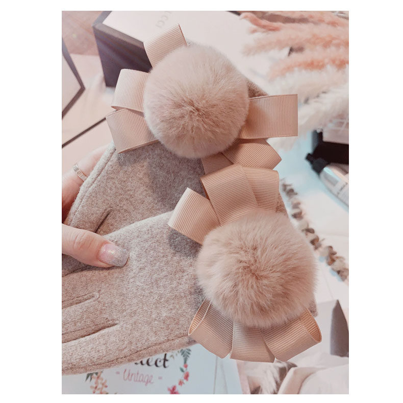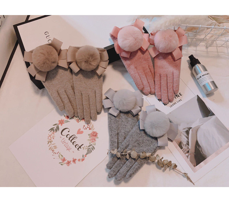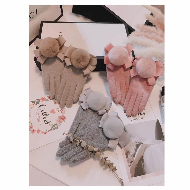 Перчатки, утепленный шерстяной милый комплект с бантиком для школьников, в корейском стиле