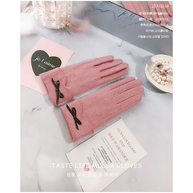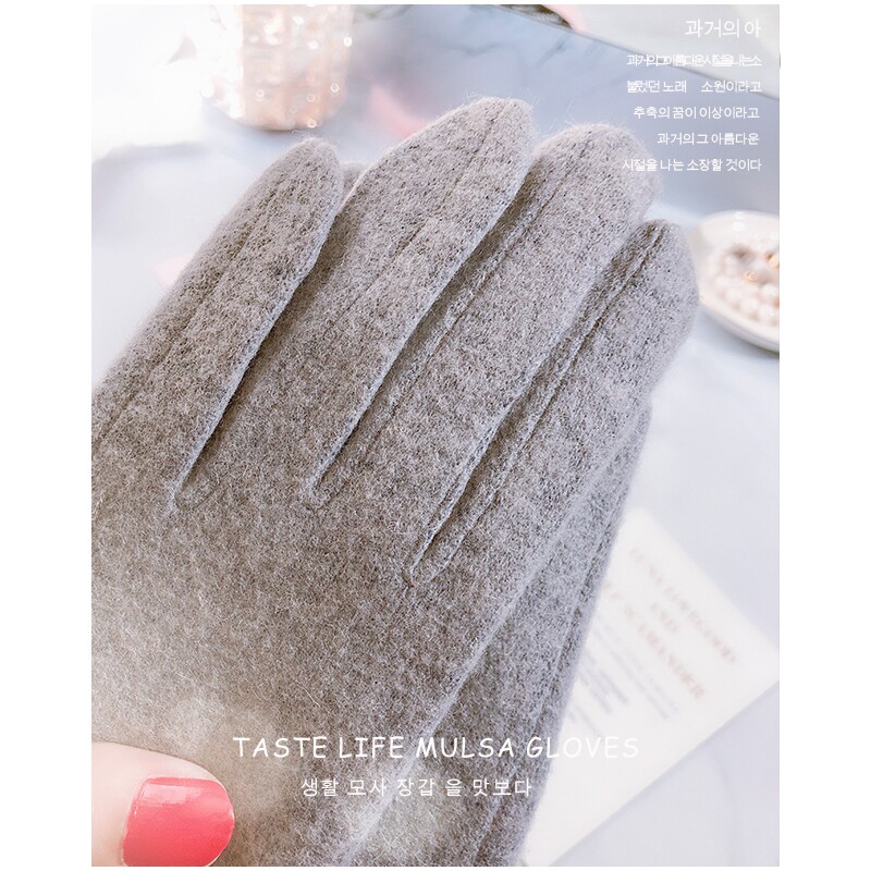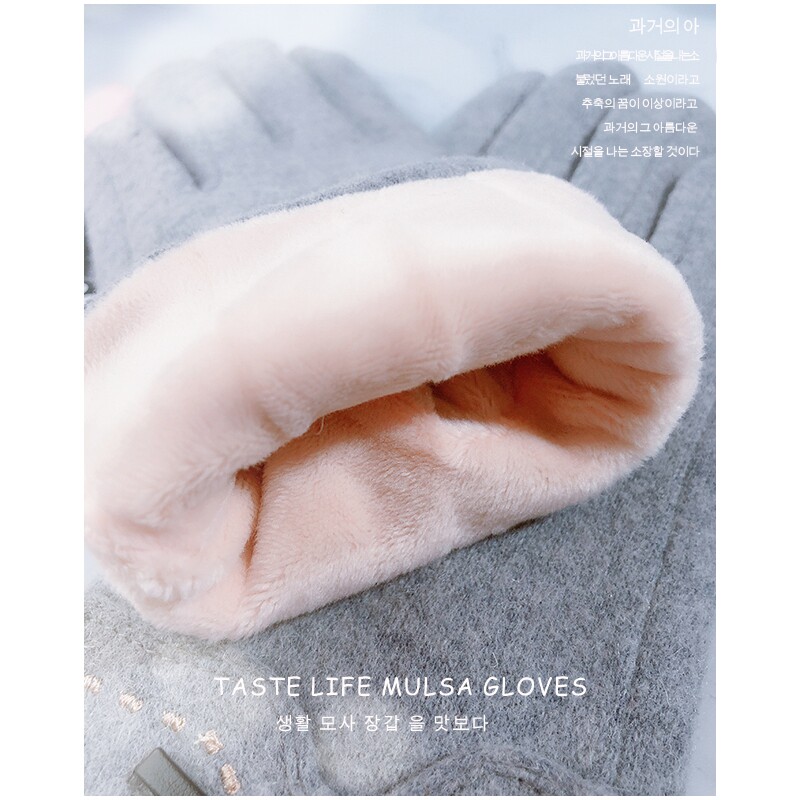 Осенние перчатки, удерживающий тепло трикотажный зимний милый брендовый шерстяной кашемировый комплект, увеличенная толщина, в корейском стиле