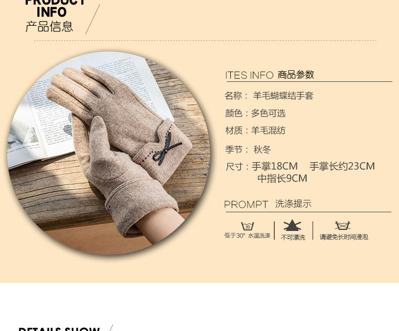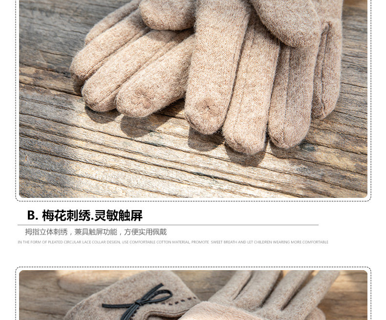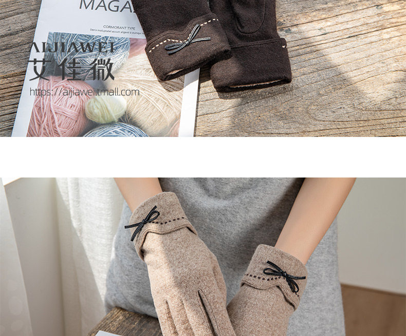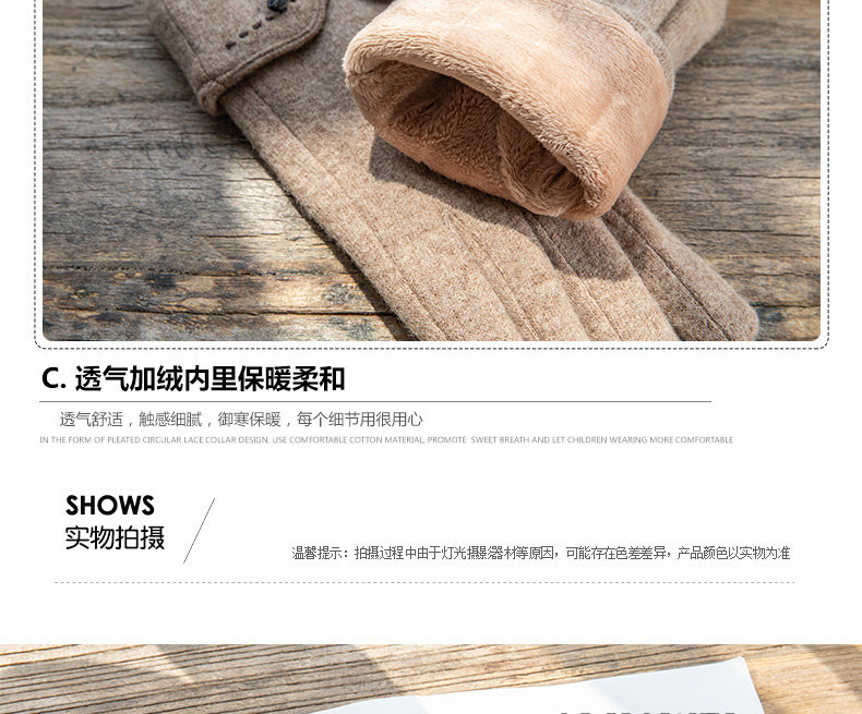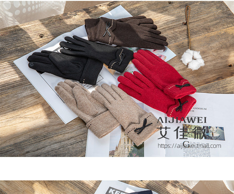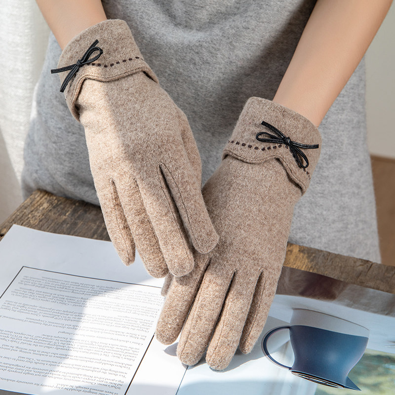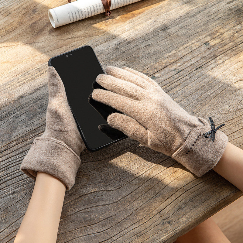 Перчатки, утепленный кашемировый тонкий модный шерстяной комплект, осенние