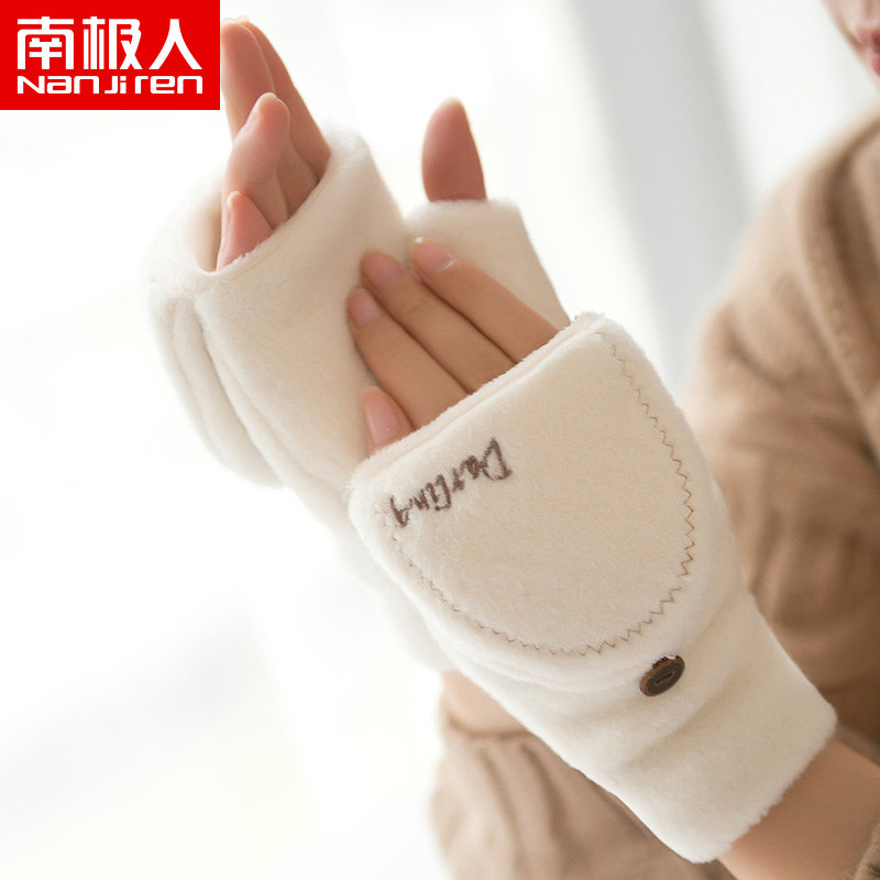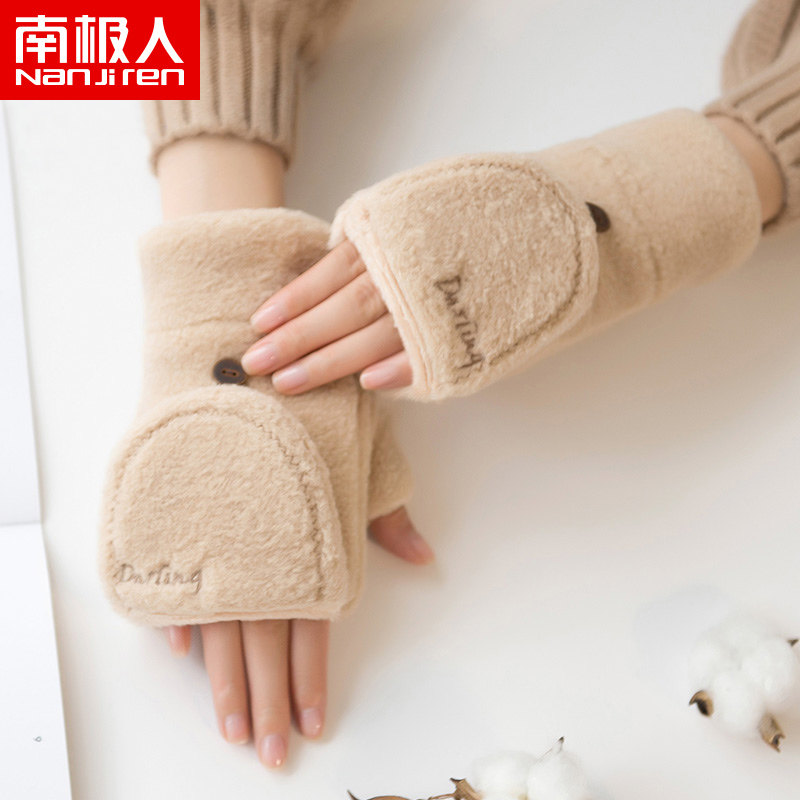 南极人 Перчатки, удерживающий тепло дорожный модный комплект для школьников с буквами, увеличенная толщина, без пальцев, с вышивкой