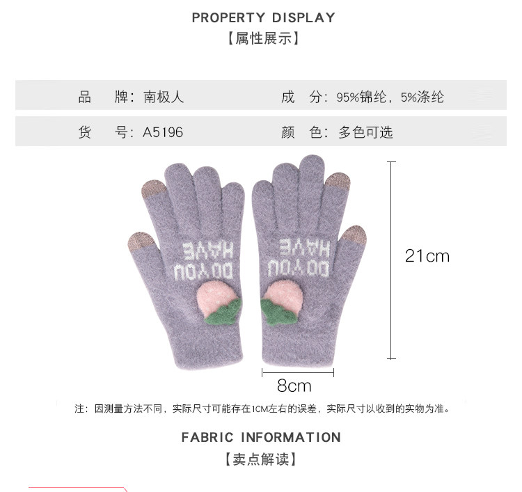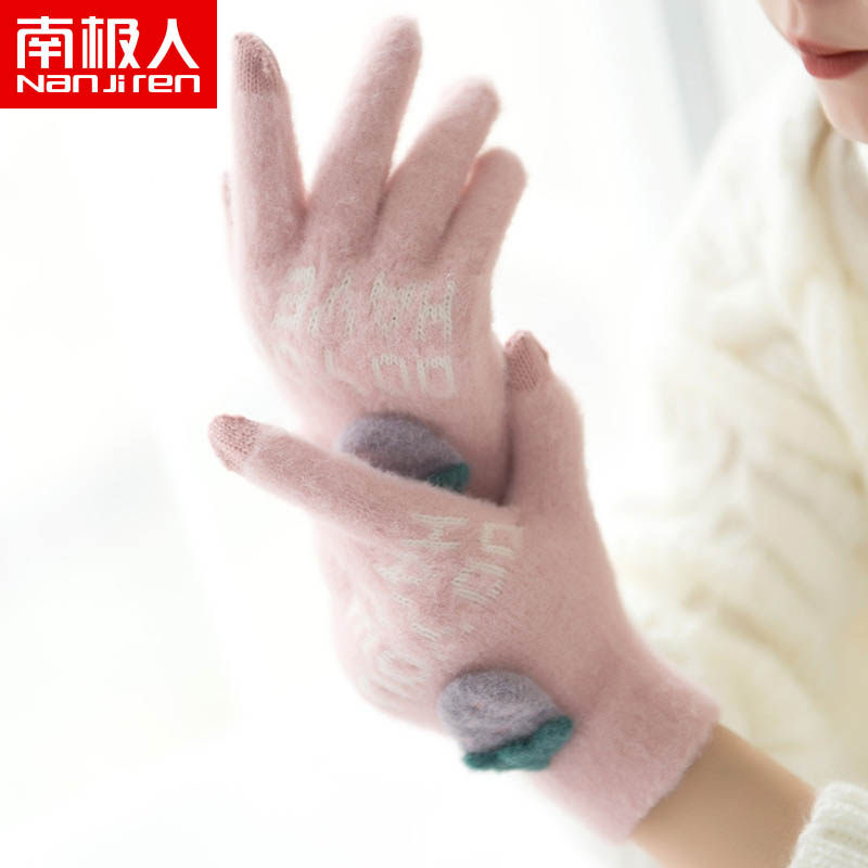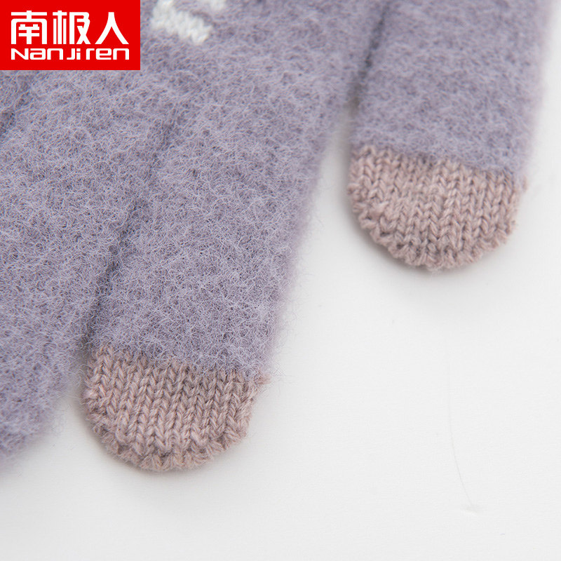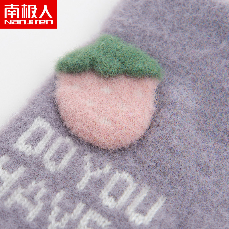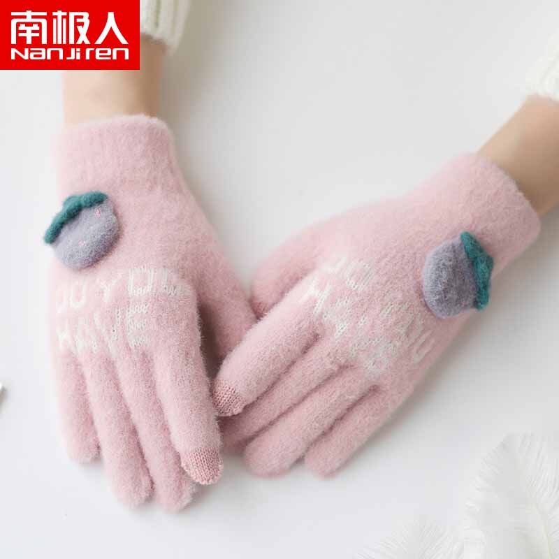 南极人 Зимние удерживающие тепло перчатки, дорожный флисовый комплект, милая трехмерная плюшевая клубника, в корейском стиле