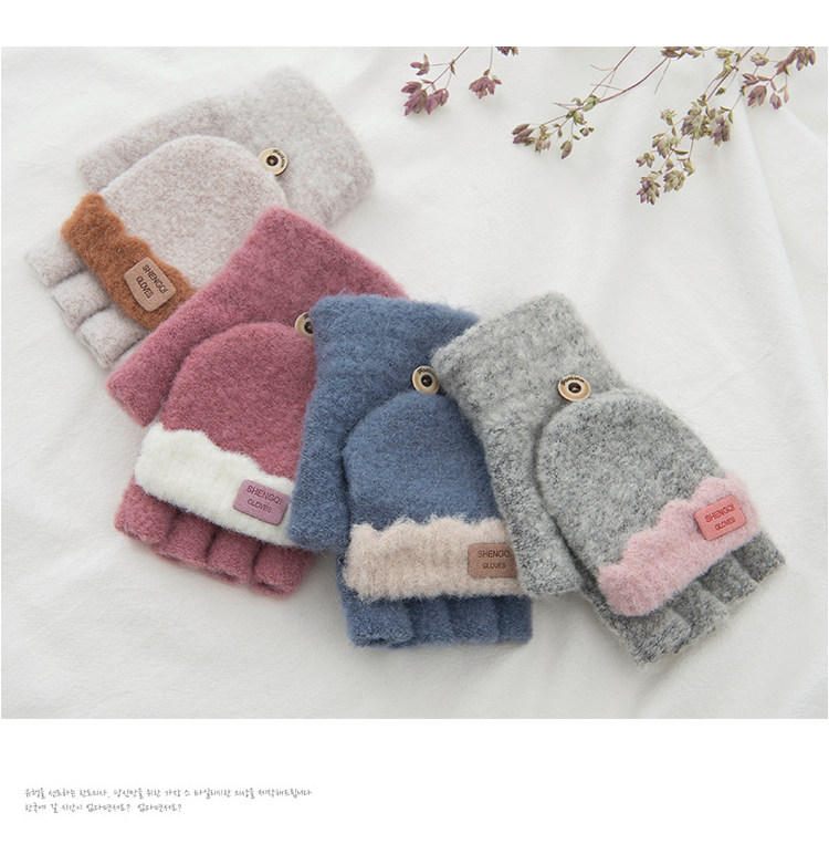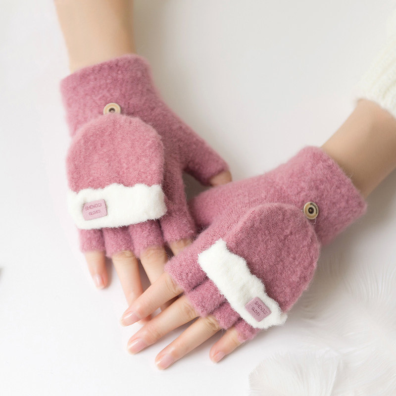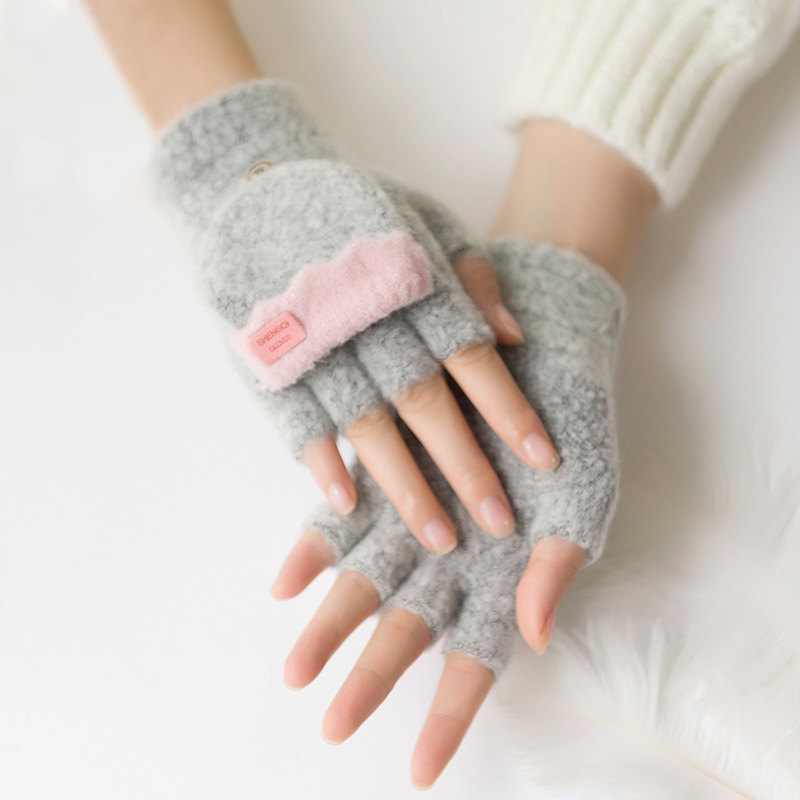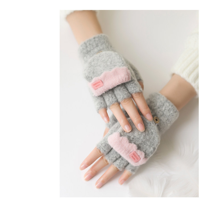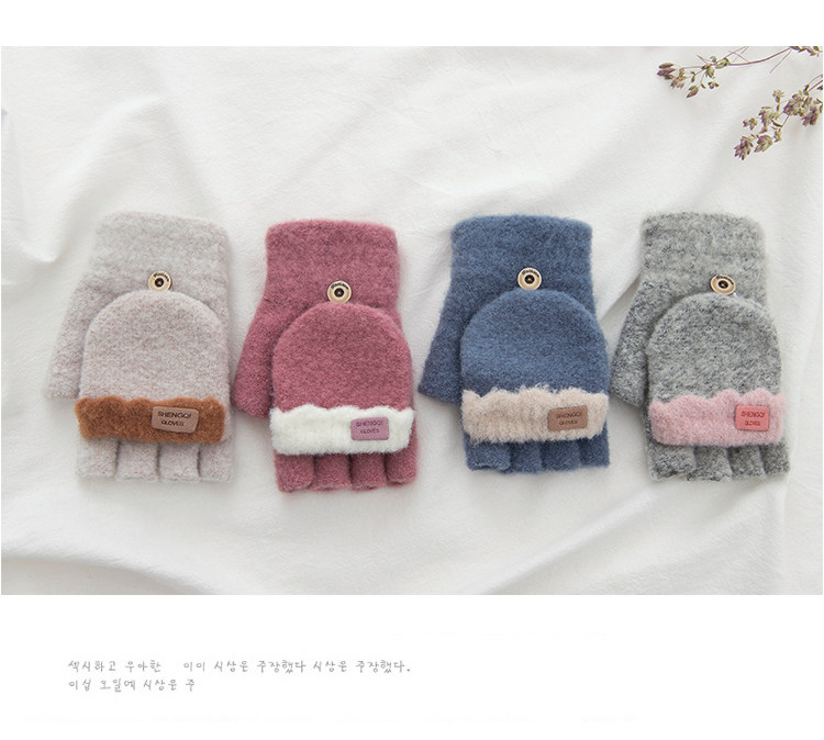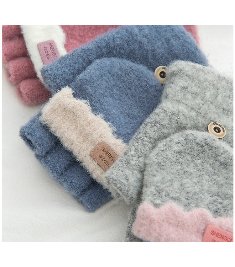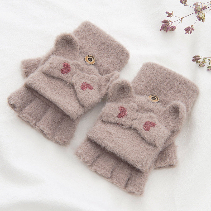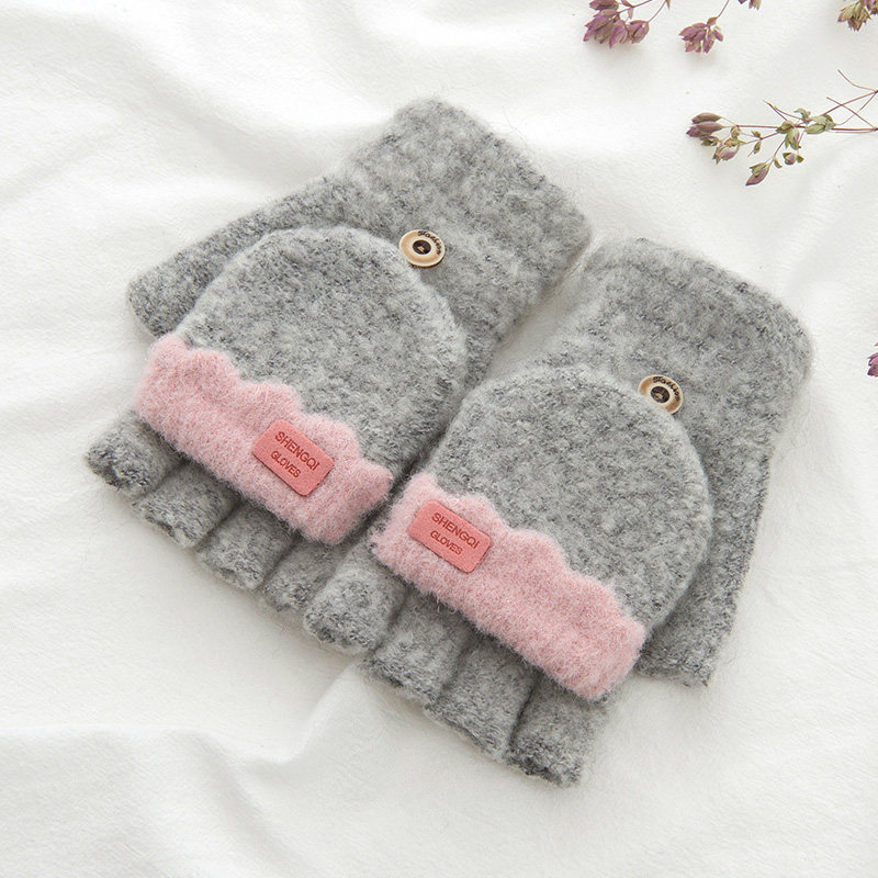 Зимние перчатки, милый демисезонный утепленный трикотажный шерстяной комплект для школьников, без пальцев, в корейском стиле