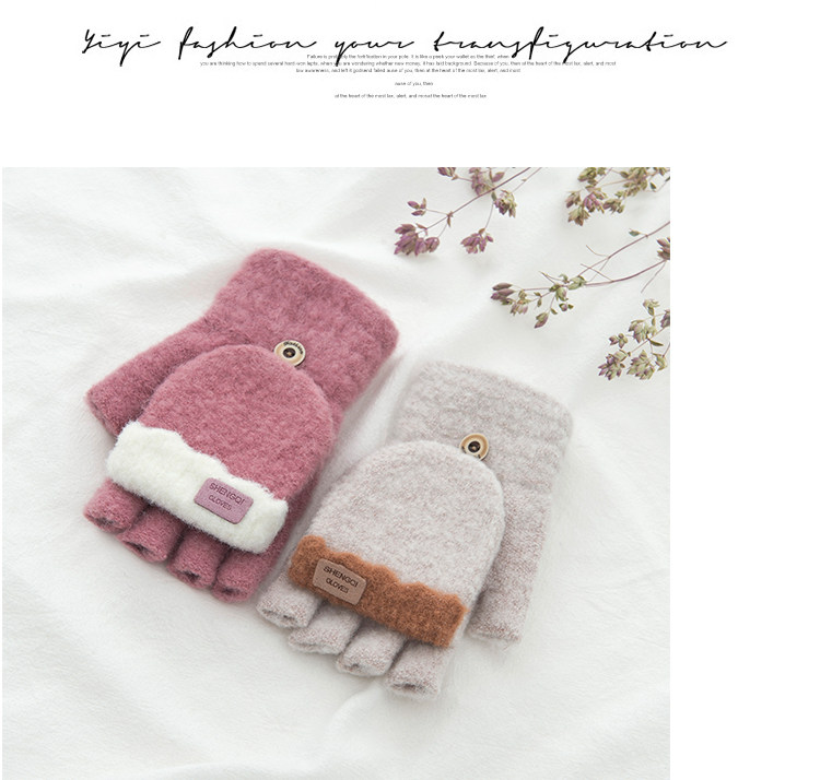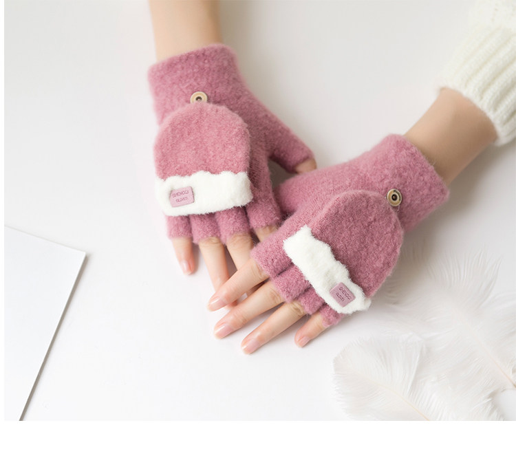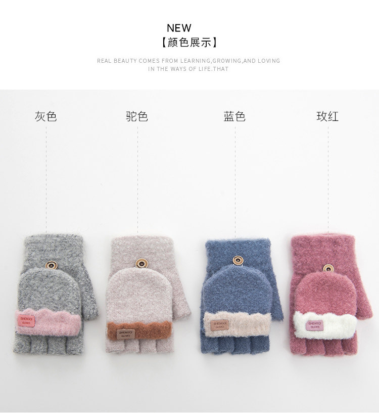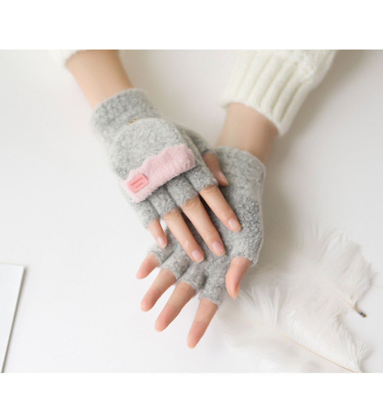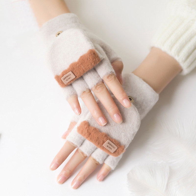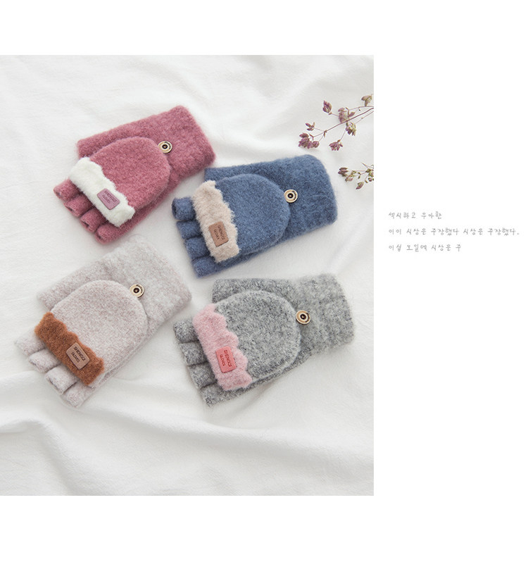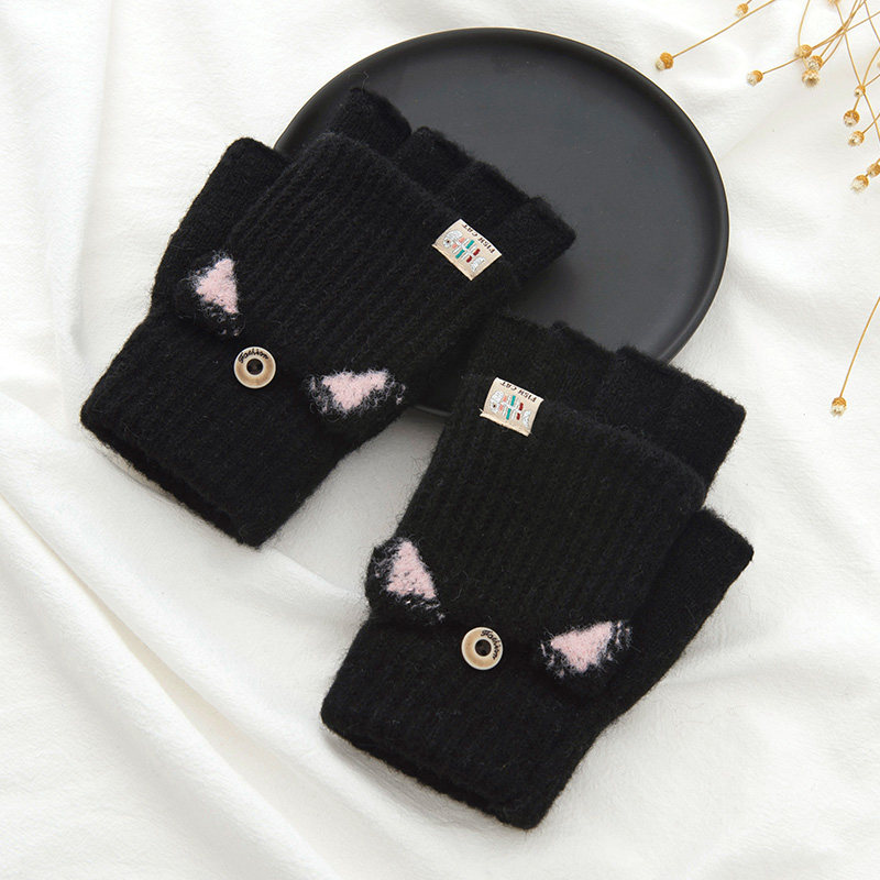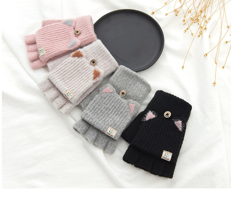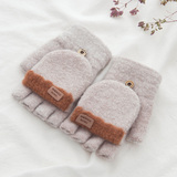 Зимние перчатки, милый демисезонный утепленный трикотажный шерстяной комплект для школьников, без пальцев, в корейском стиле