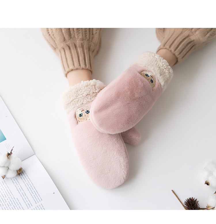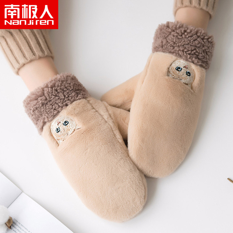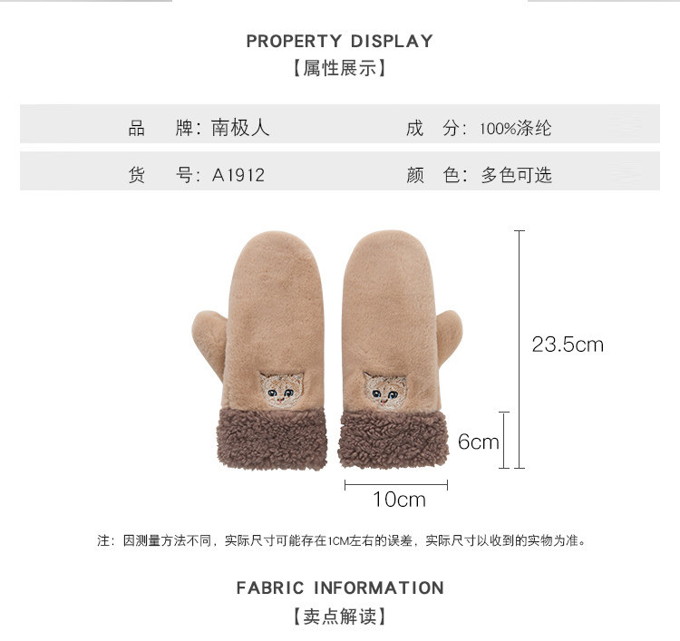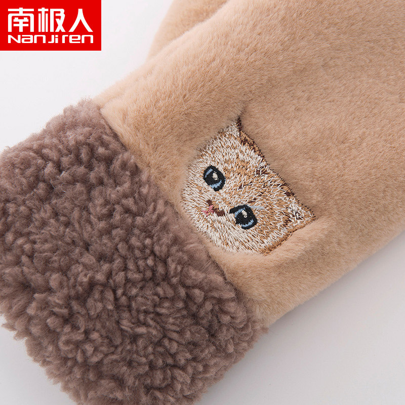南极人 Демисезонные перчатки, японский флисовый удерживающий тепло комплект для школьников, увеличенная толщина, с вышивкой