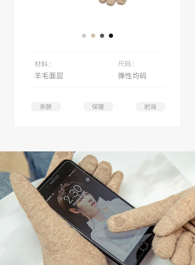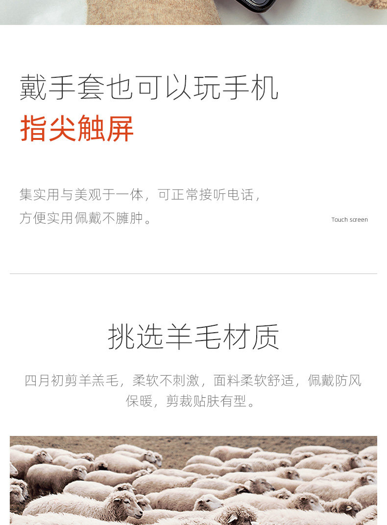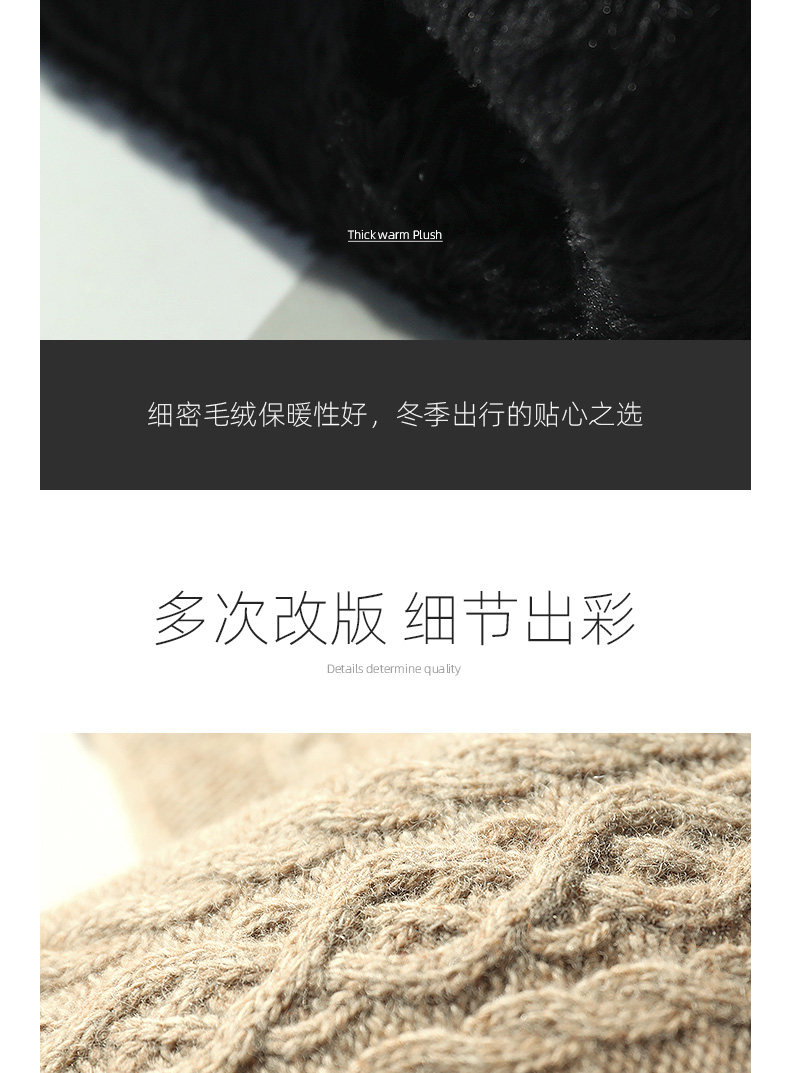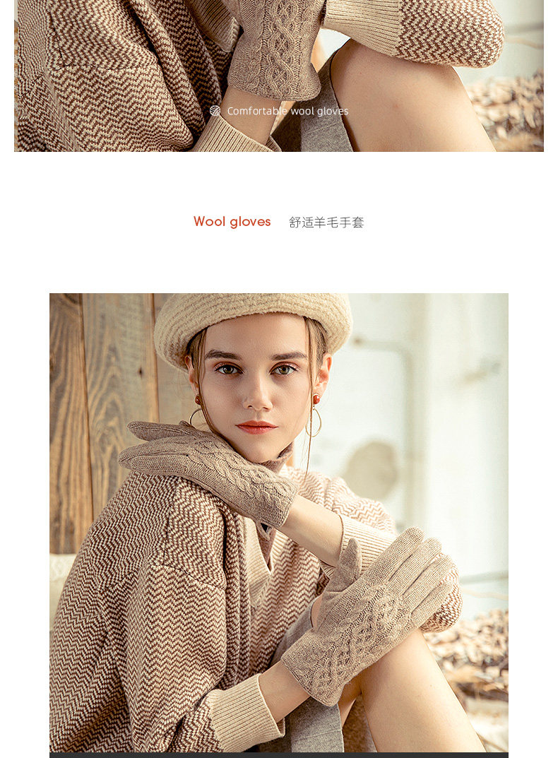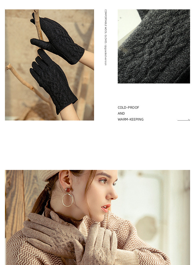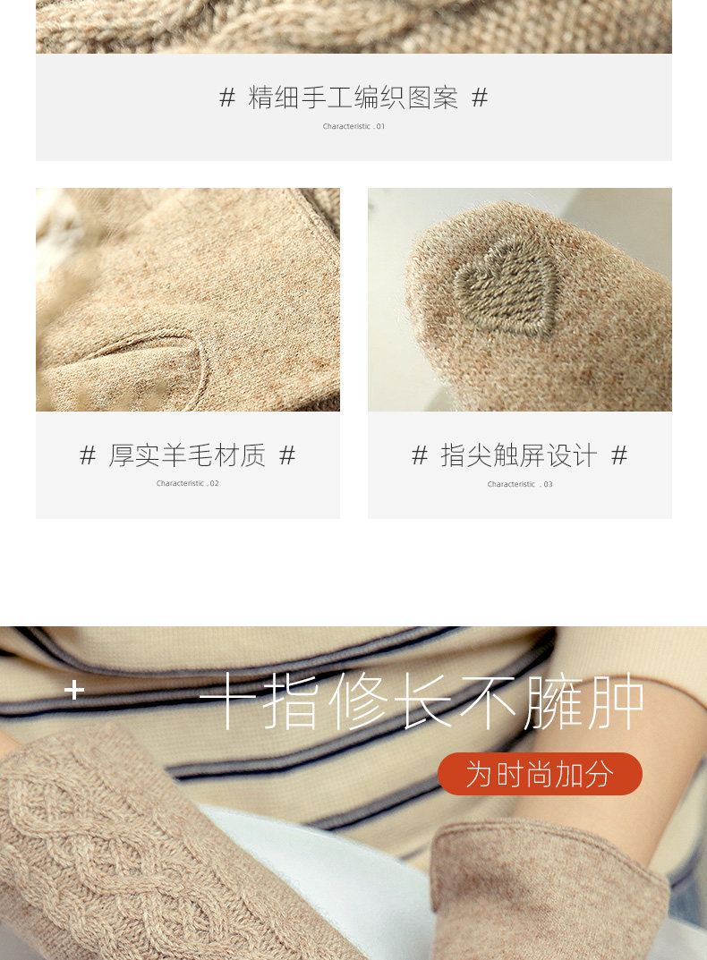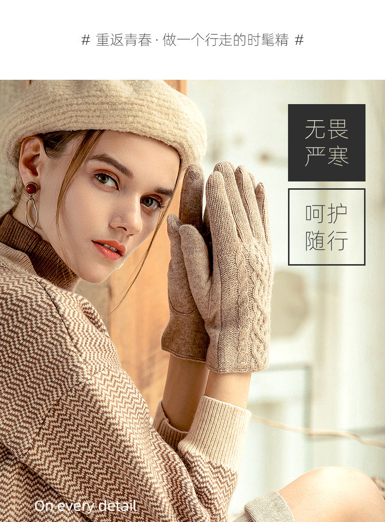 Демисезонные шерстяные перчатки, флисовый удерживающий тепло комплект, увеличенная толщина