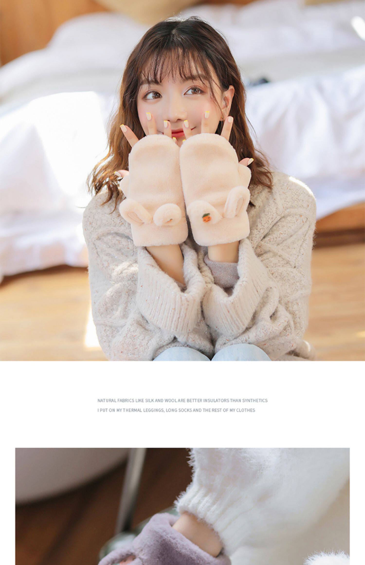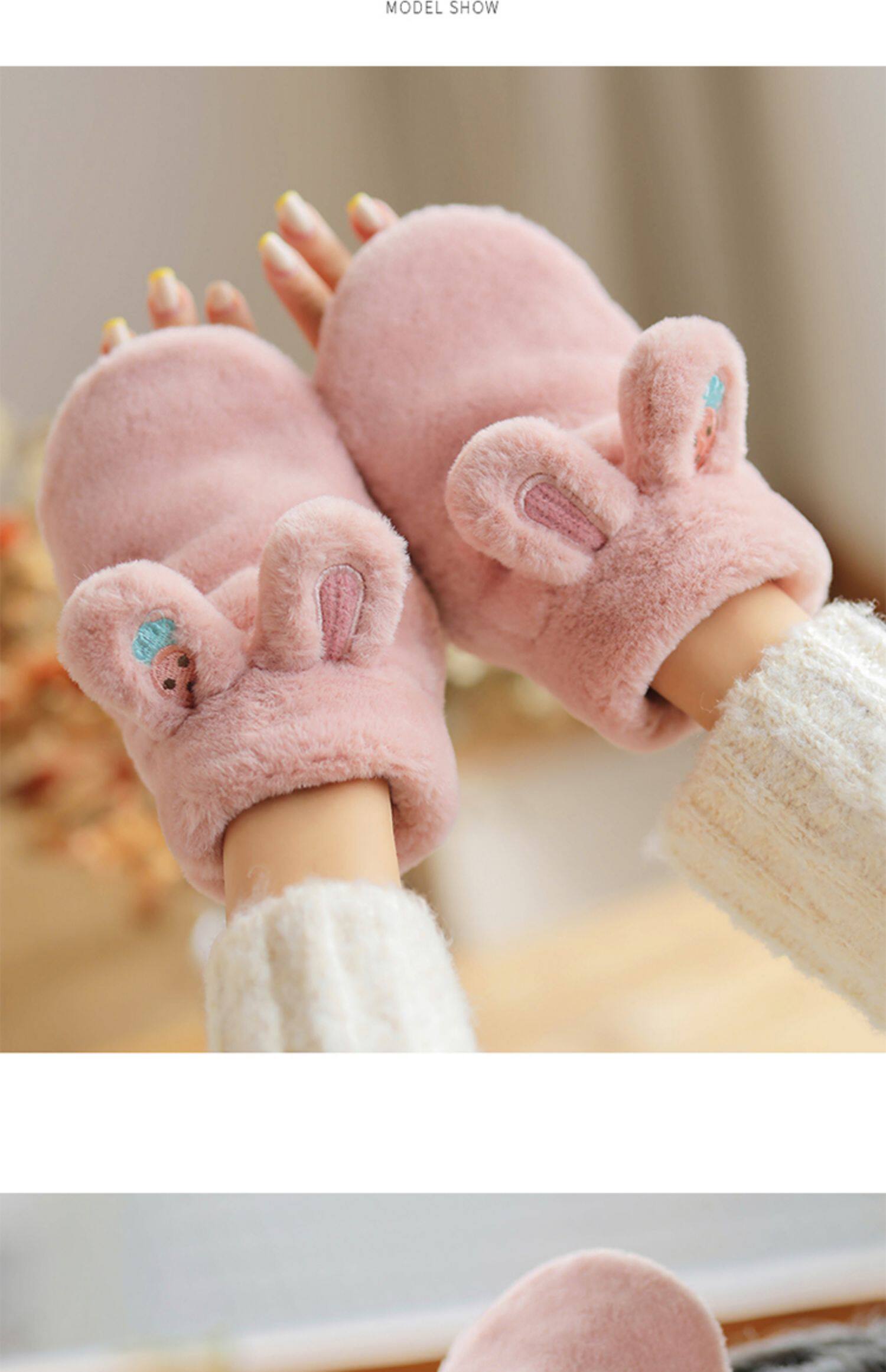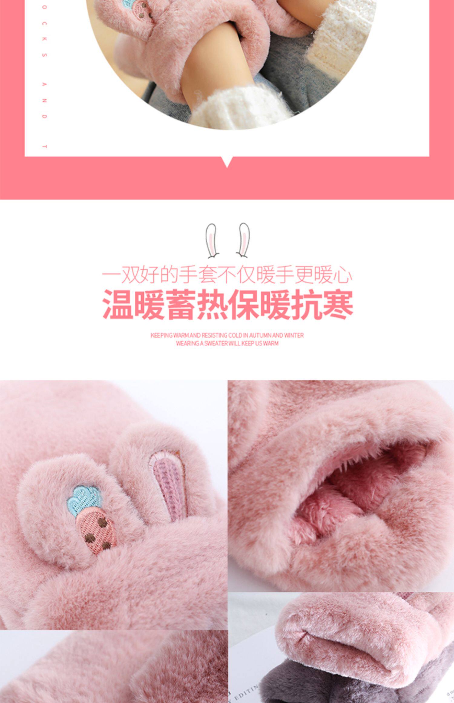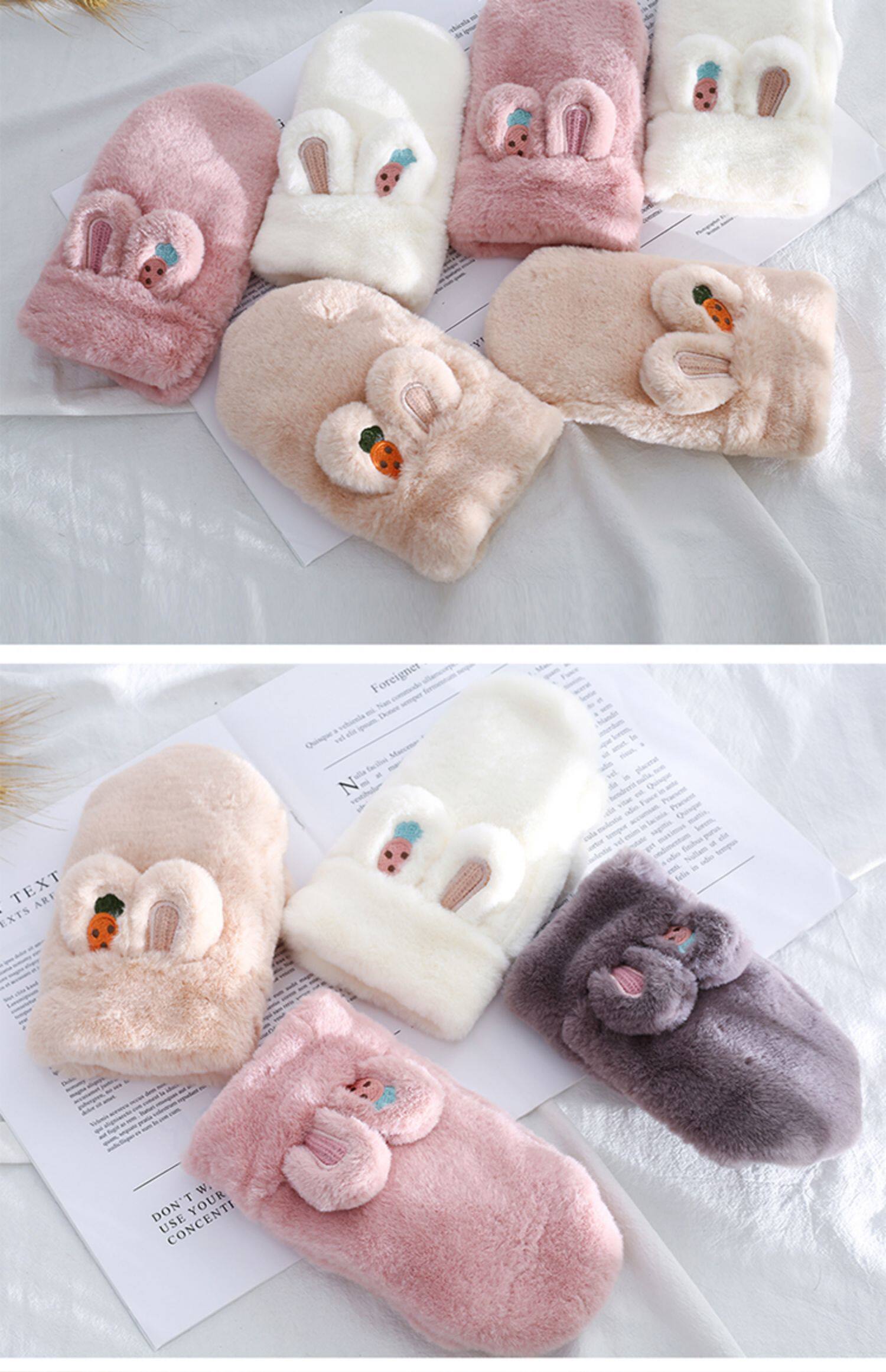 Плюшевые зимние милые перчатки для школьников и студентов, демисезонный удерживающий тепло кролик, Южная Корея, увеличенная толщина