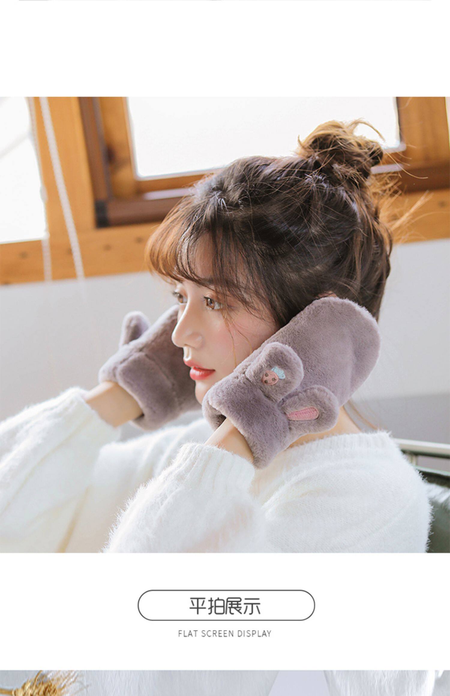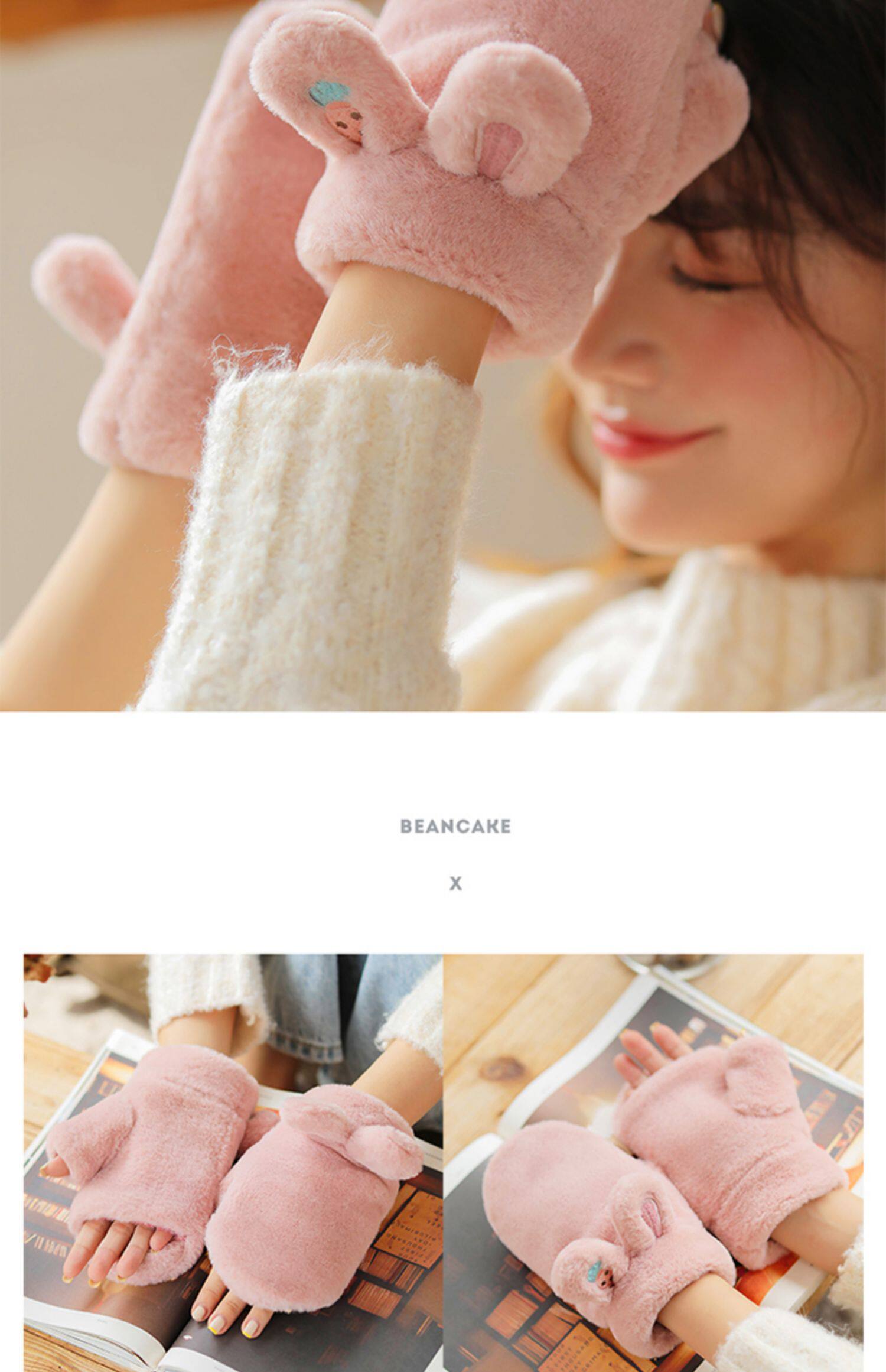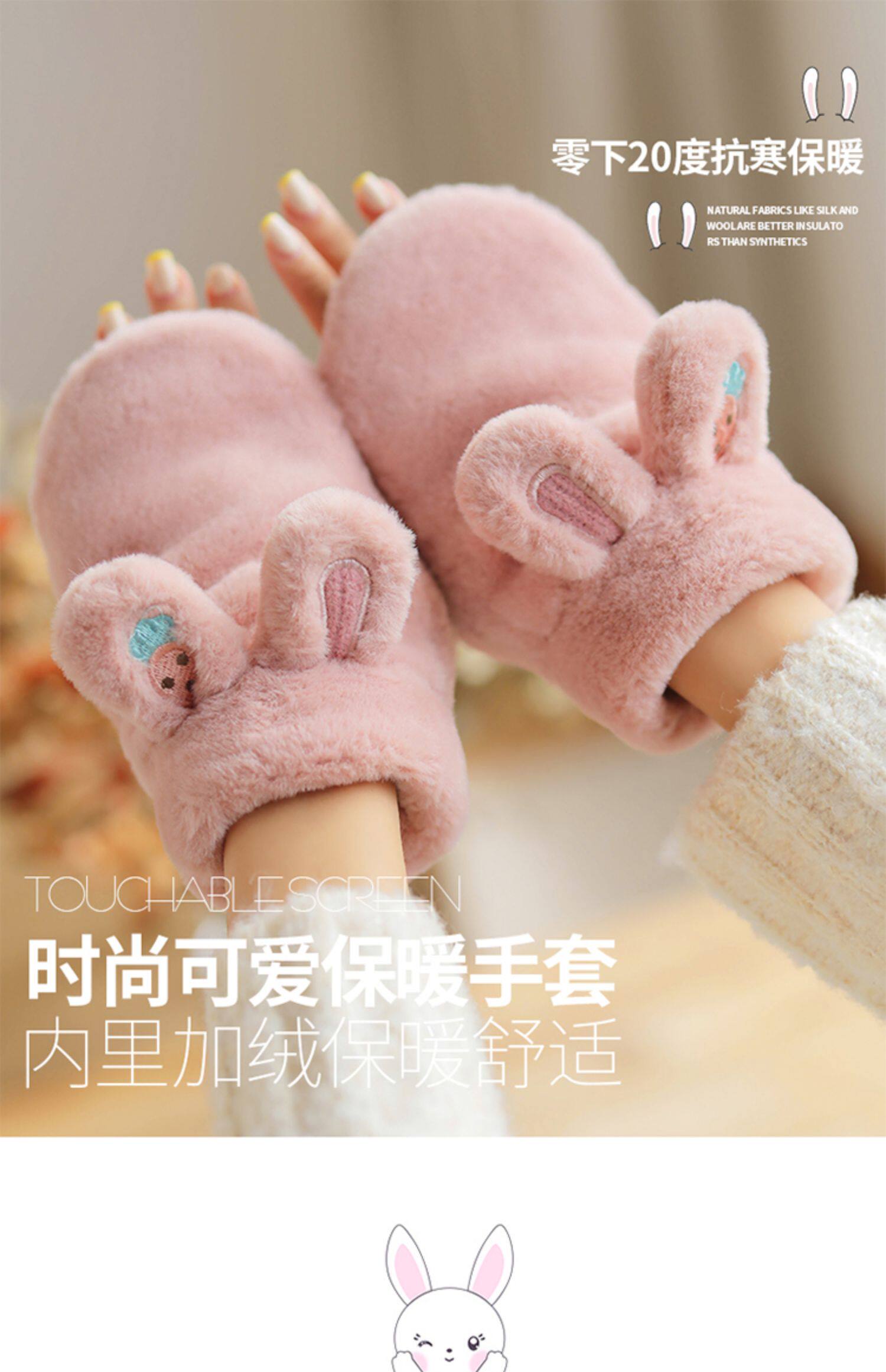 Плюшевые зимние милые перчатки для школьников и студентов, демисезонный удерживающий тепло кролик, Южная Корея, увеличенная толщина