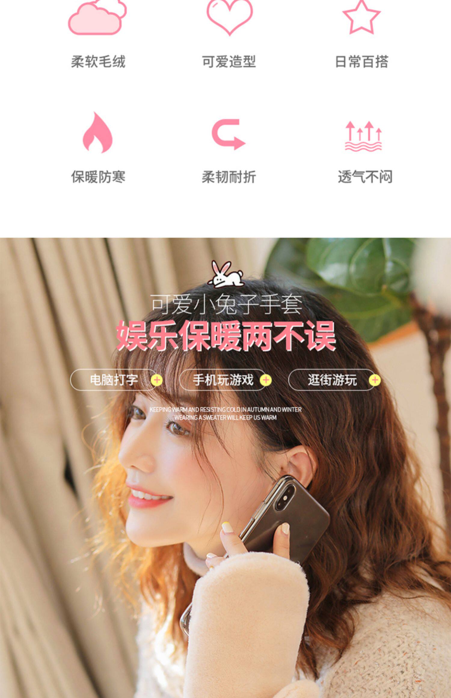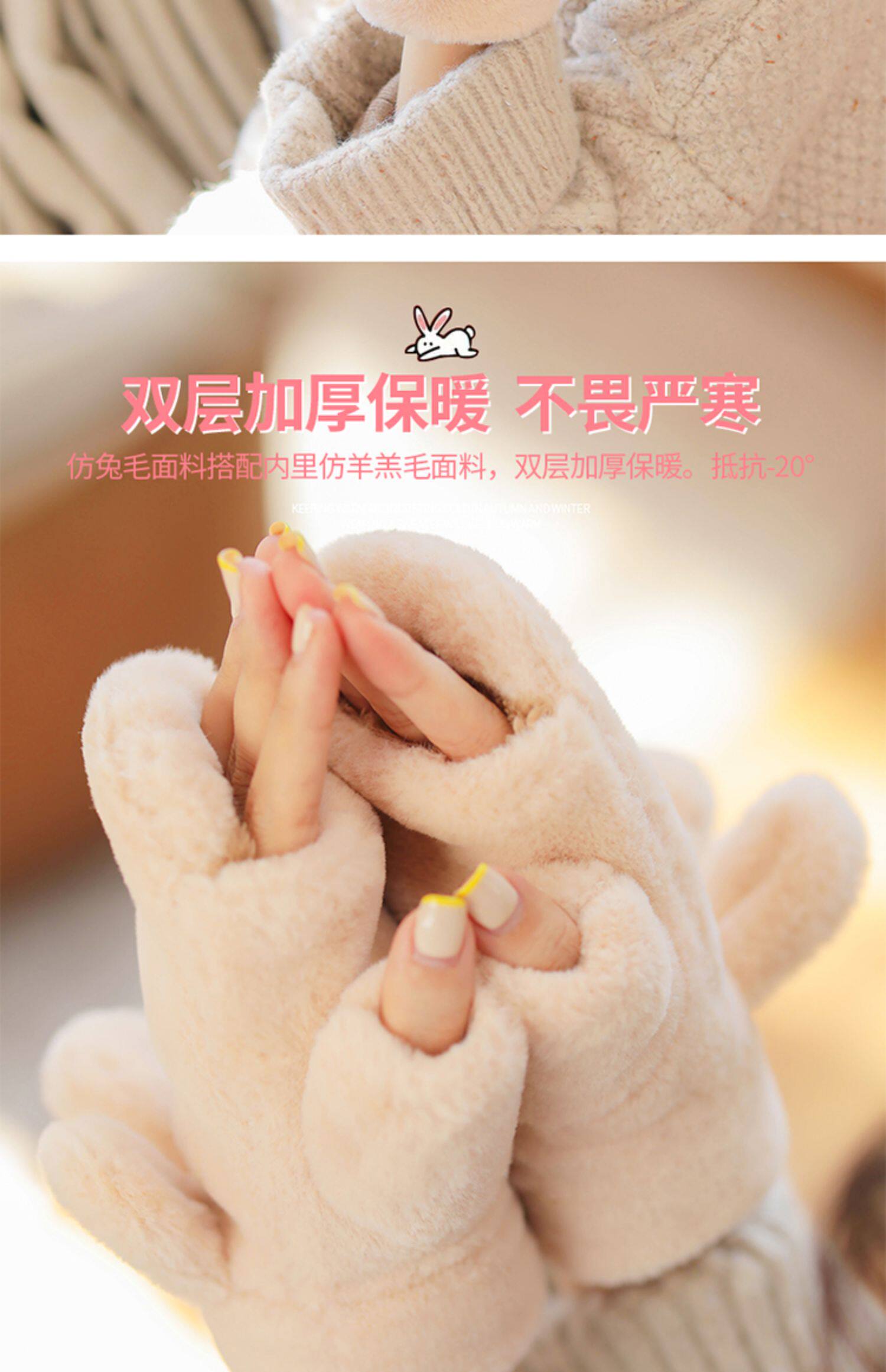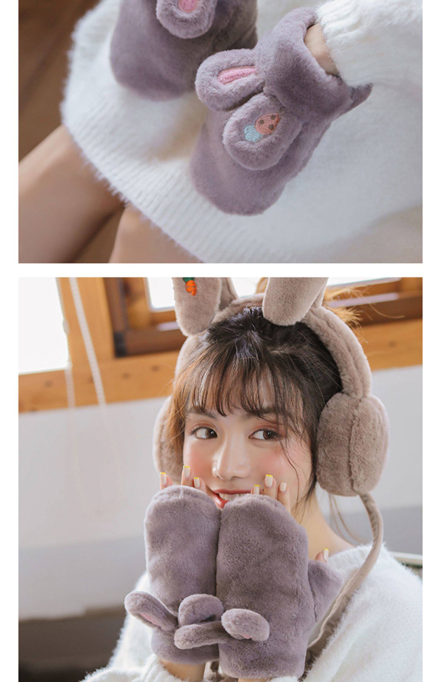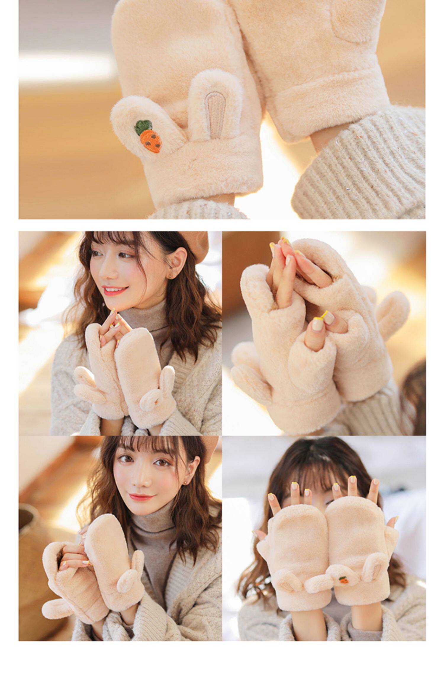 Плюшевые зимние милые перчатки для школьников и студентов, демисезонный удерживающий тепло кролик, Южная Корея, увеличенная толщина