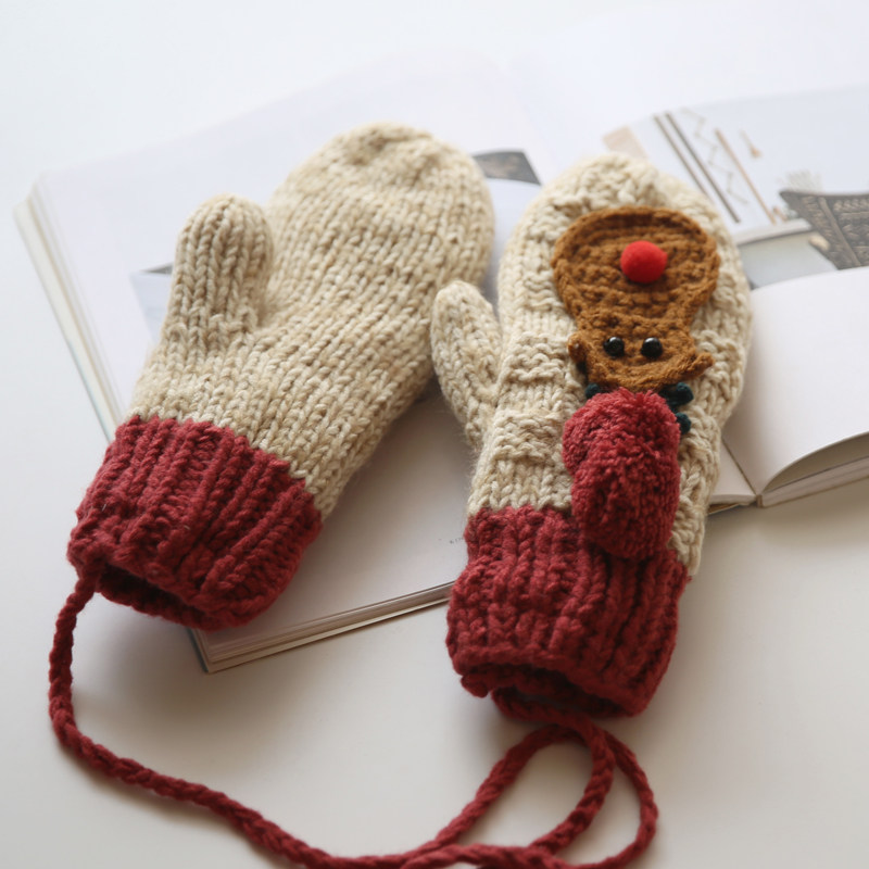 Флисовые удерживающие тепло зимние мультяшные демисезонные трикотажные перчатки ручной работы