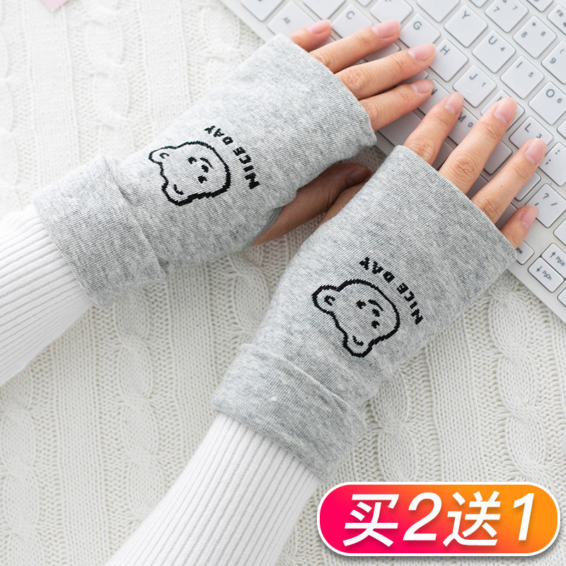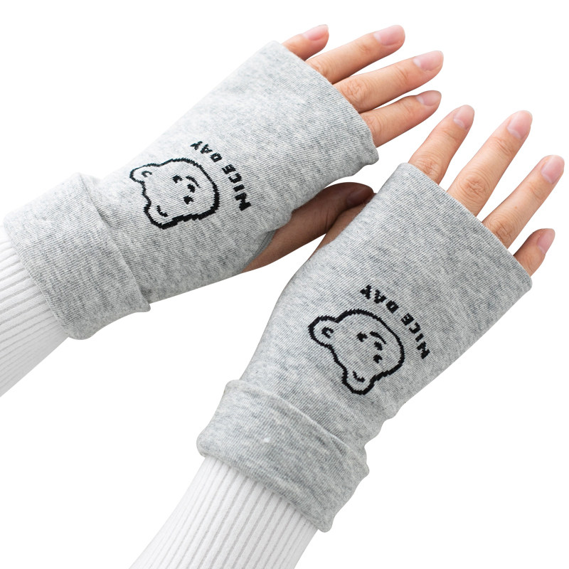 Перчатки, зимний удерживающий тепло милый тонкий детский комплект для школьников, без пальцев