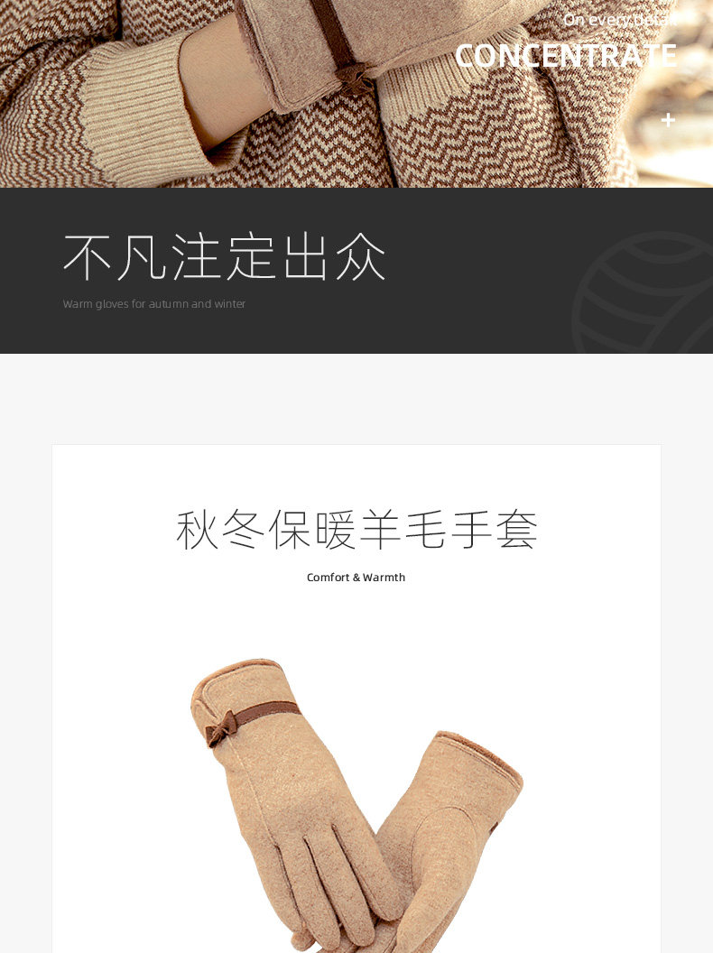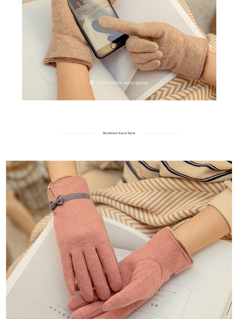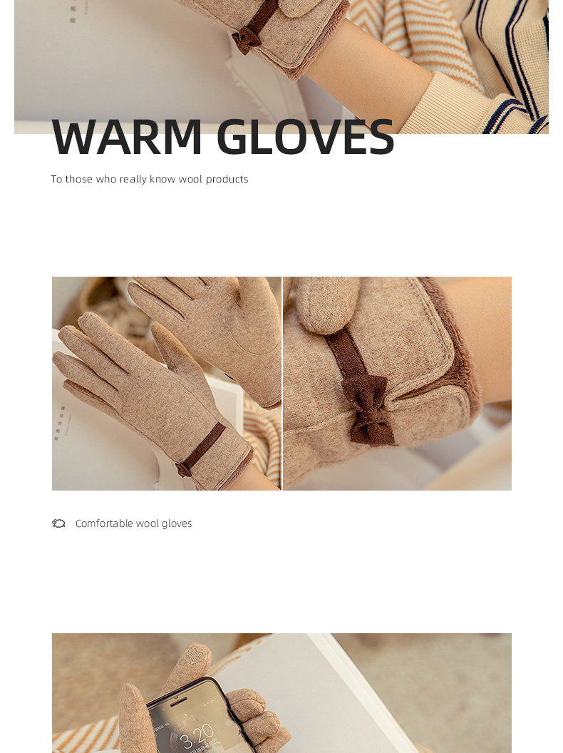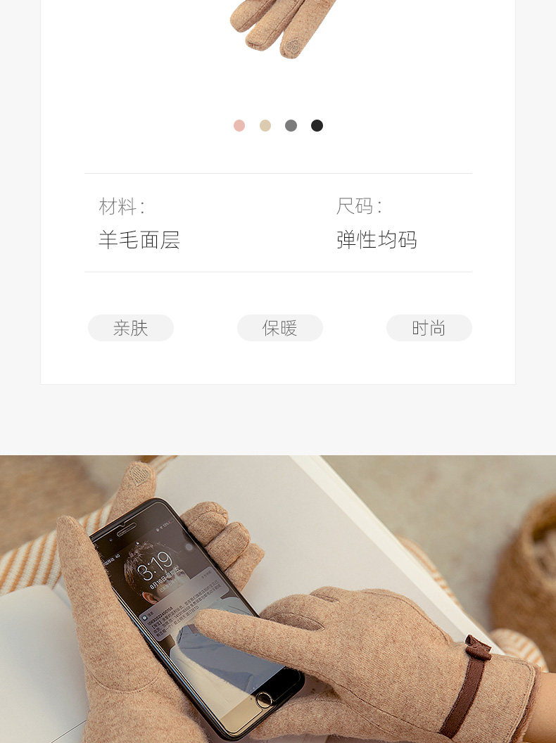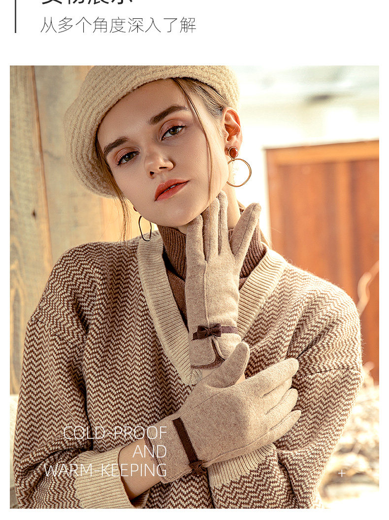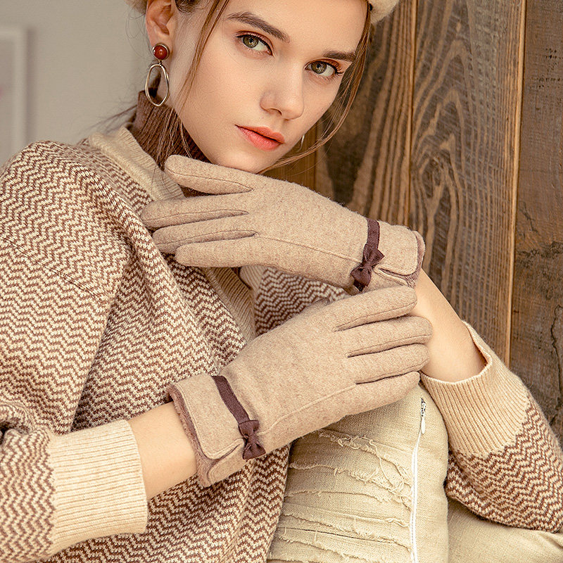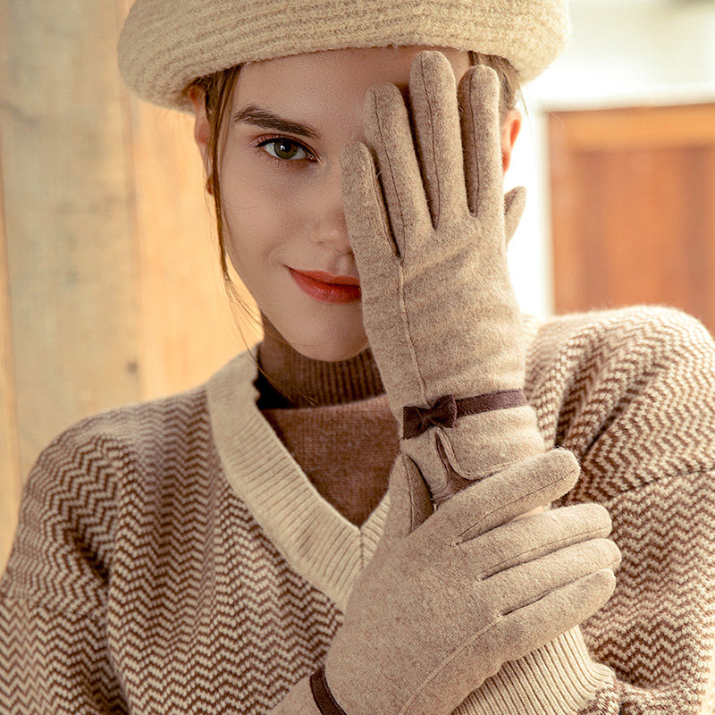 Перчатки, зимний утепленный кашемировый тонкий шерстяной комплект, осенние