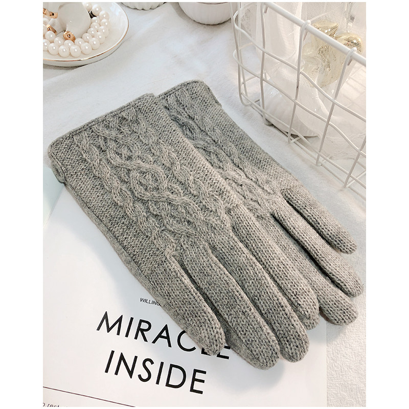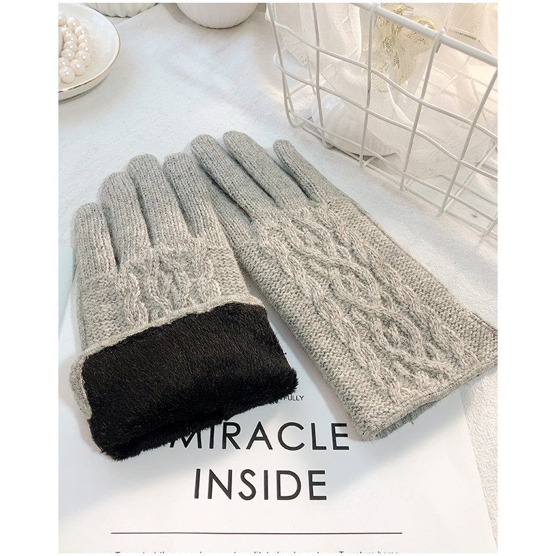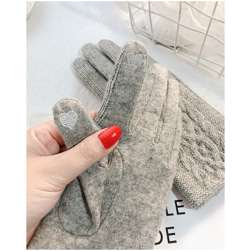 Перчатки, зимний утепленный удерживающий тепло осенний тонкий милый шерстяной кашемировый комплект, в корейском стиле