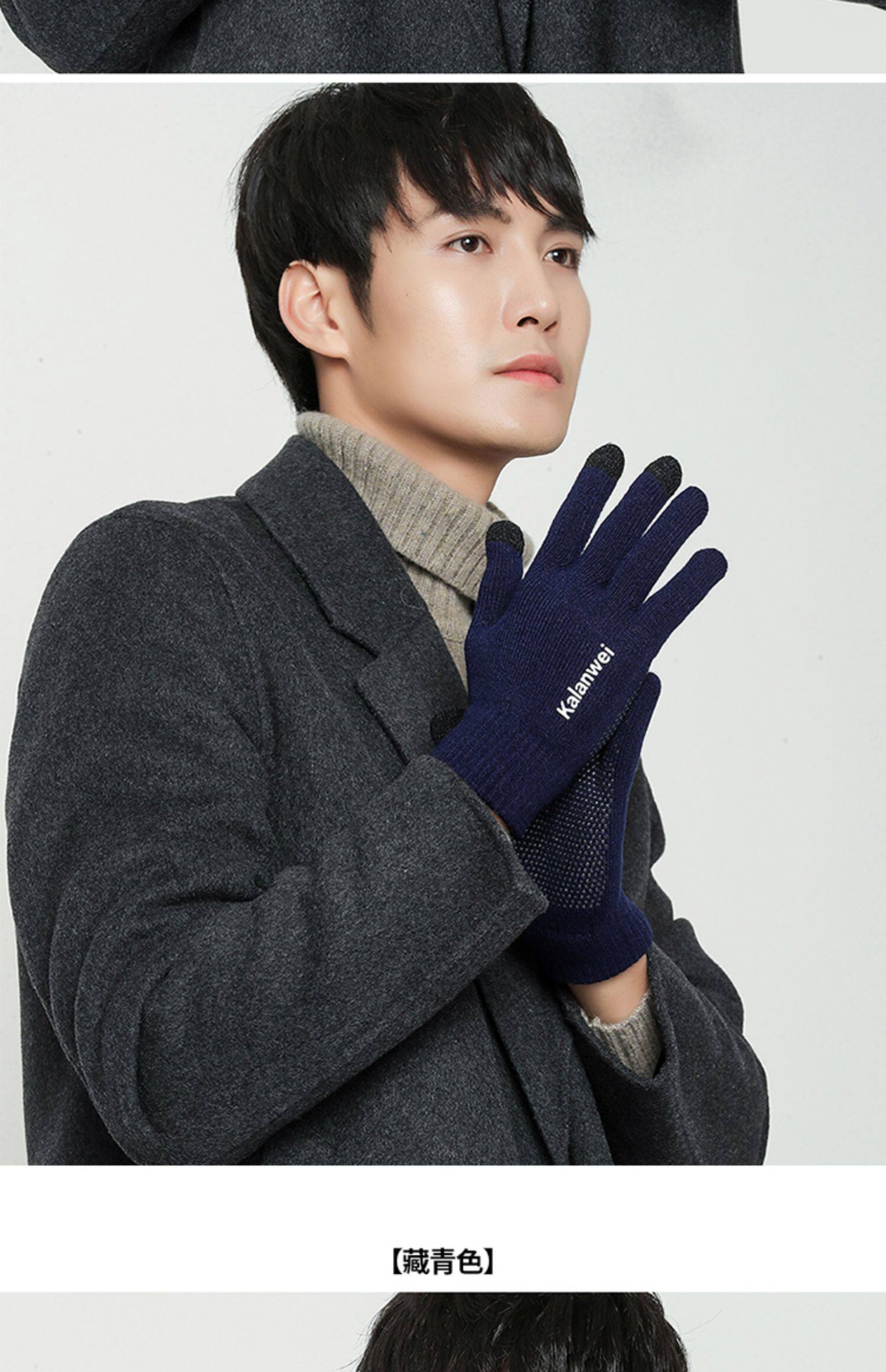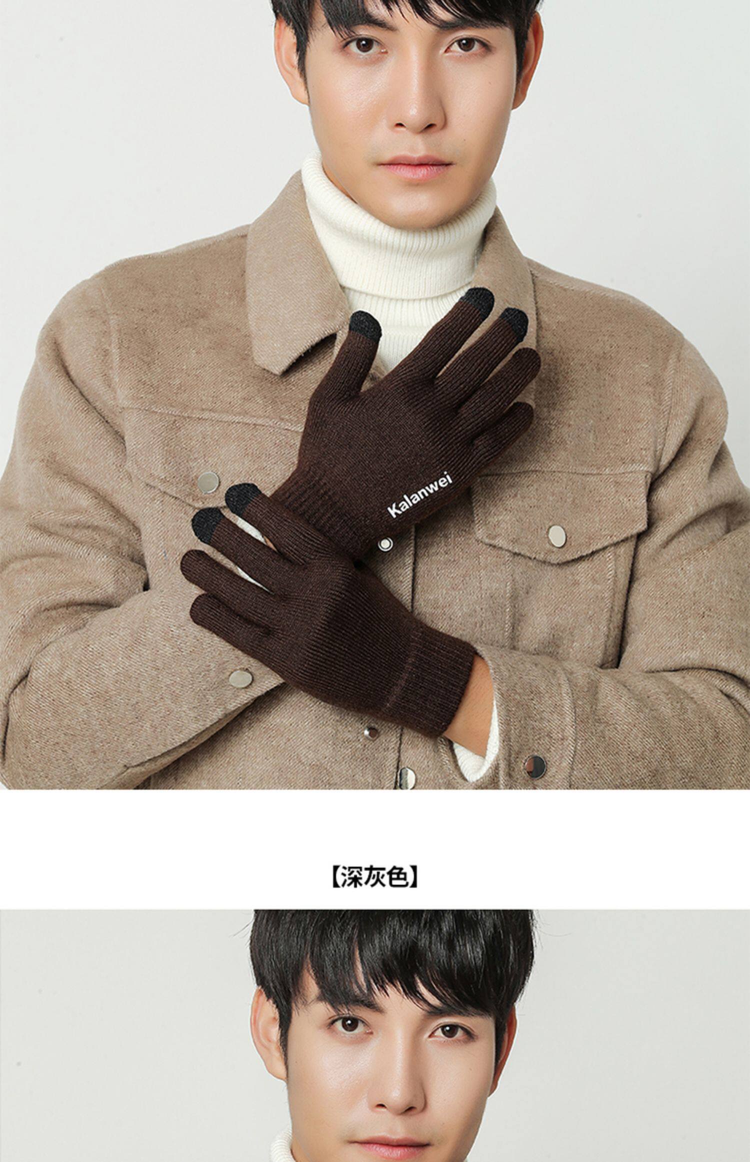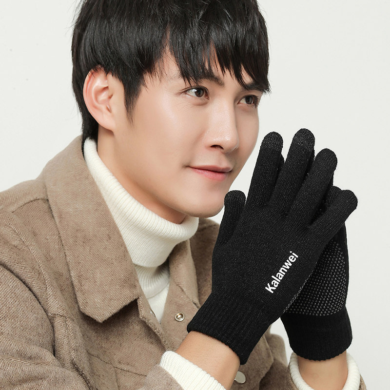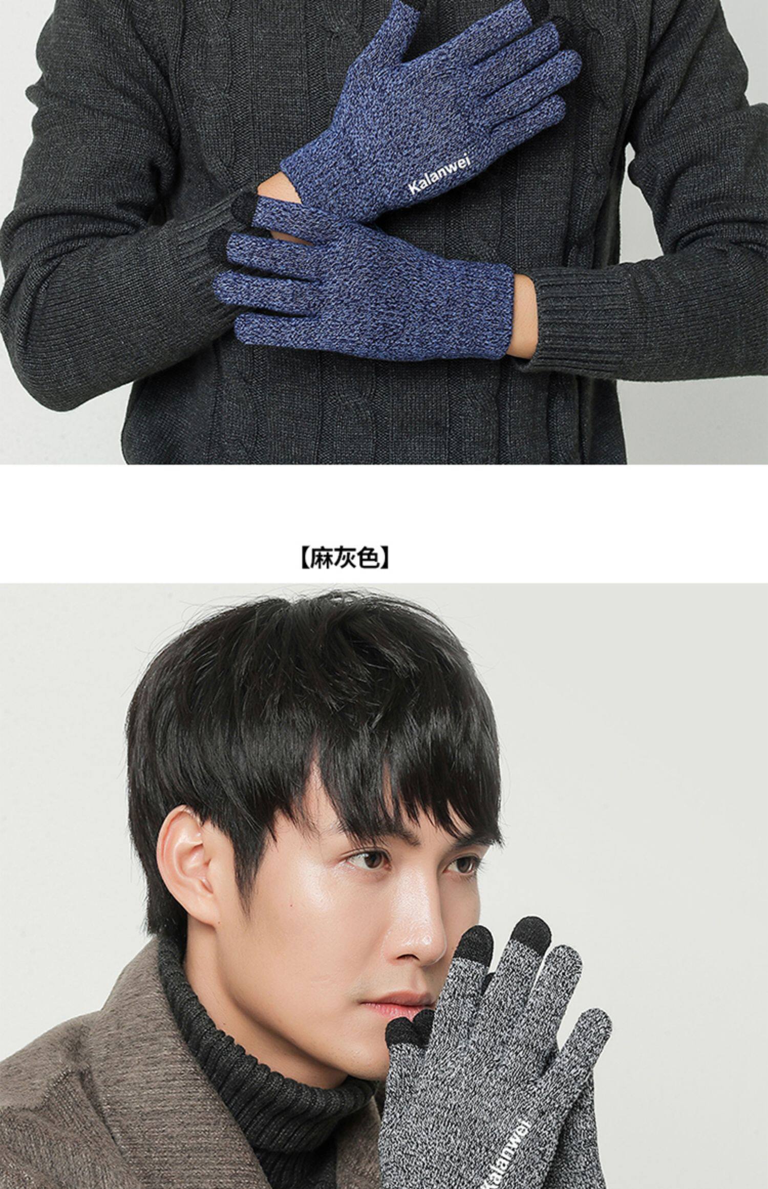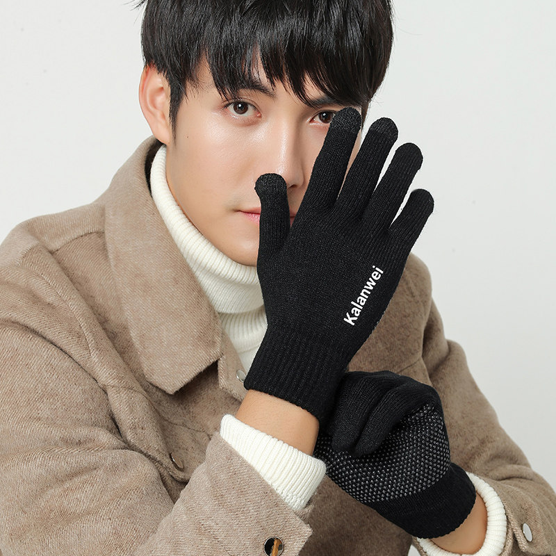 Мужские зимние удерживающие тепло демисезонные трикотажные перчатки, в корейском стиле
