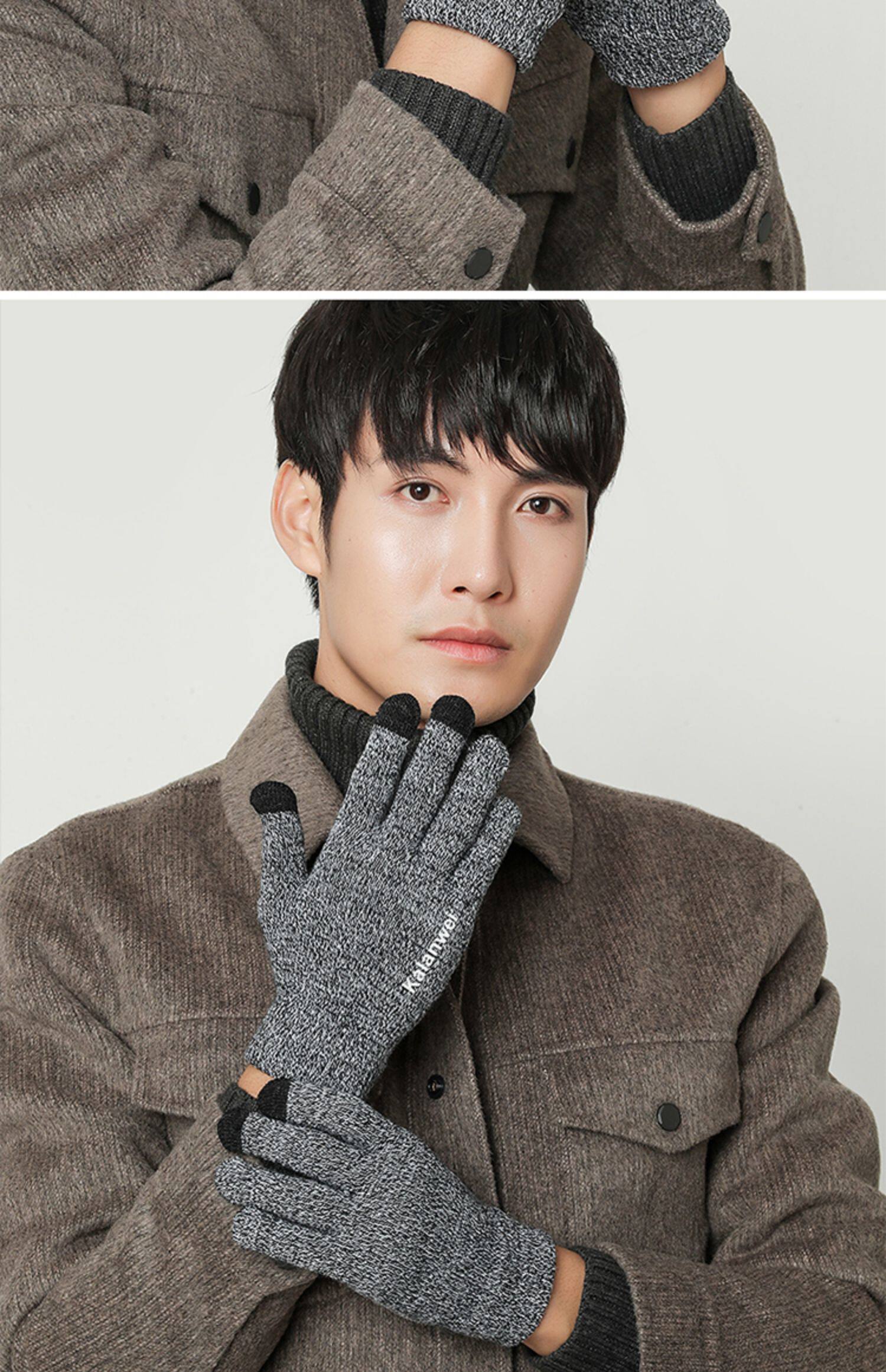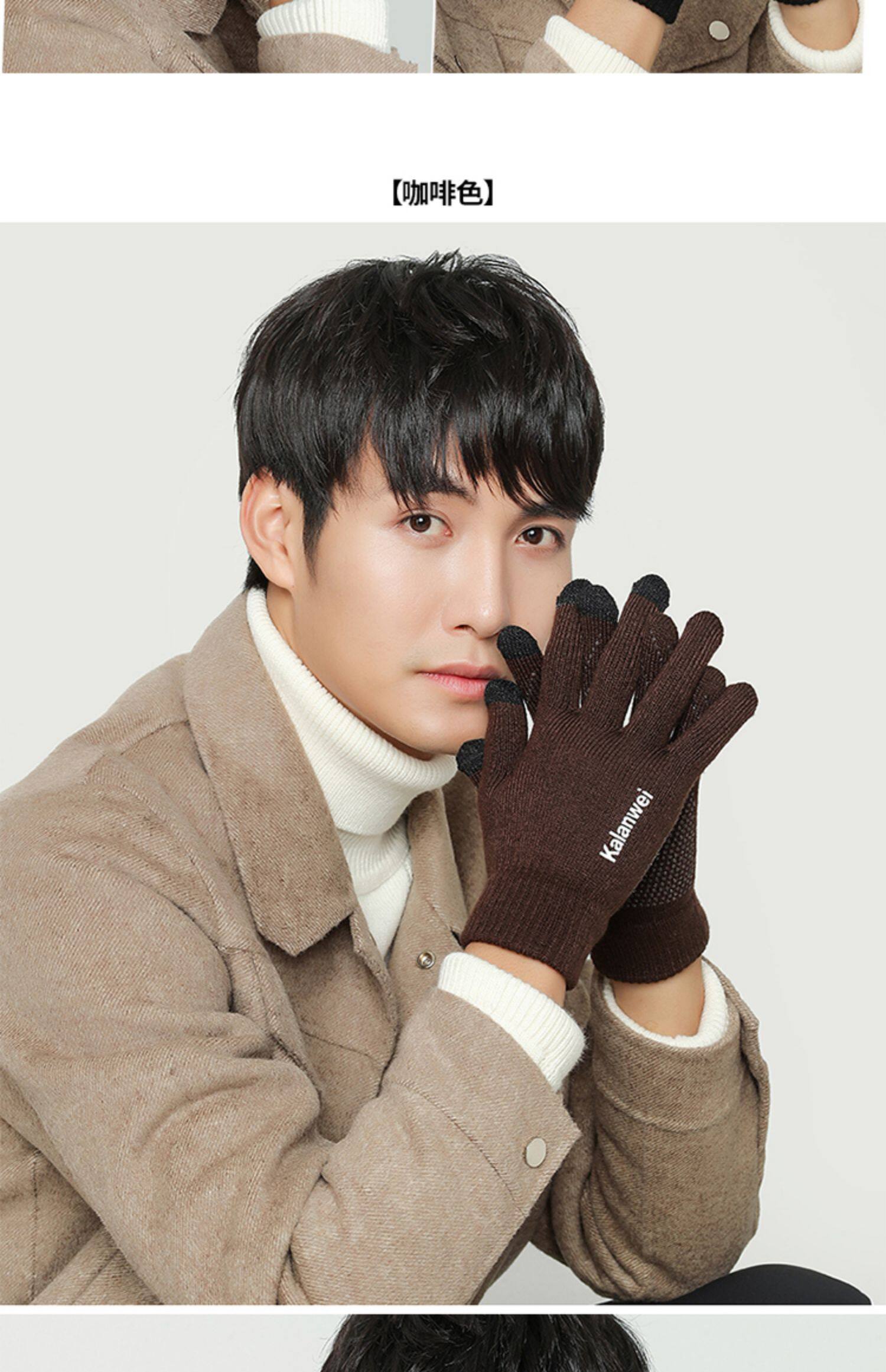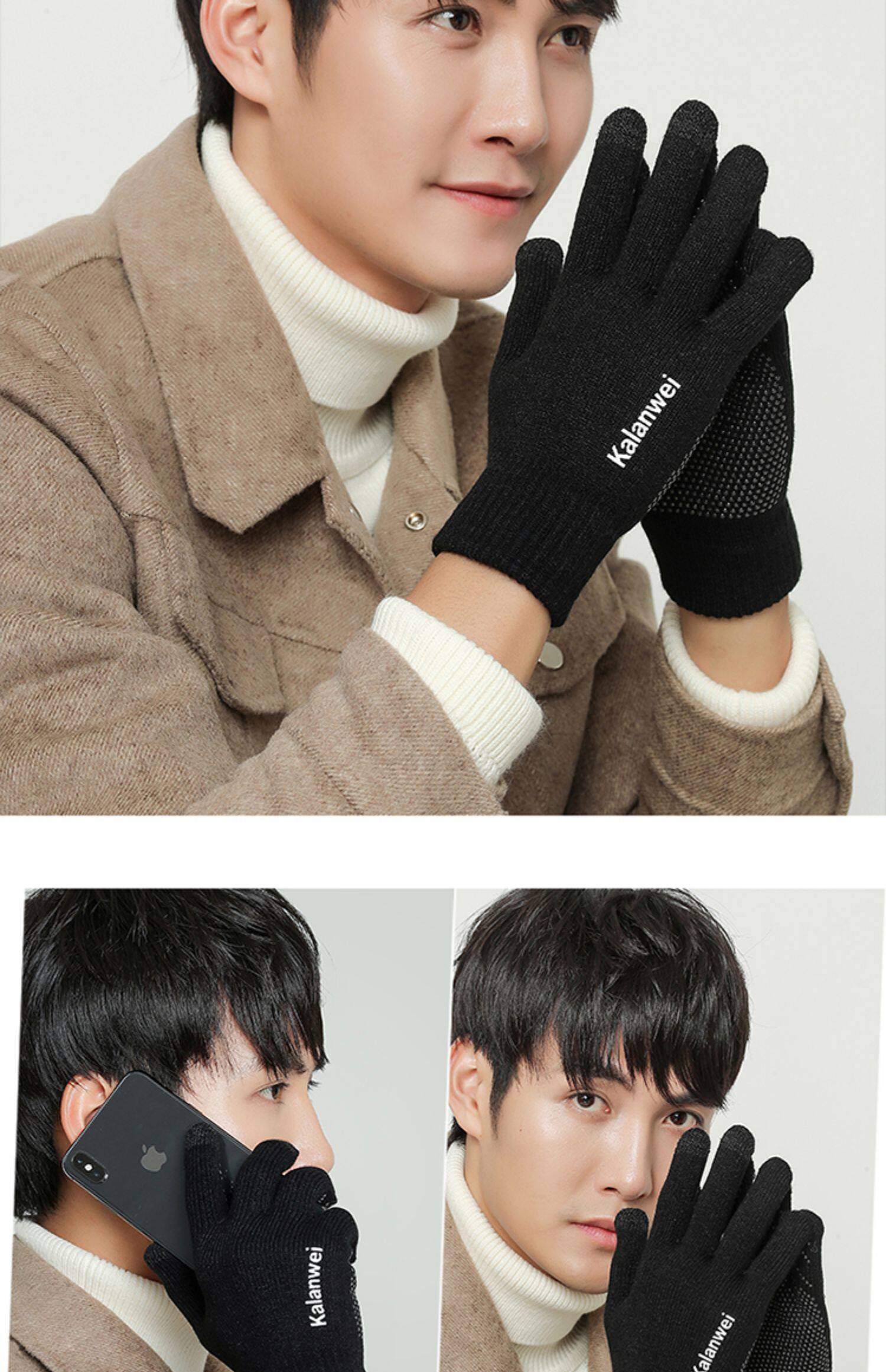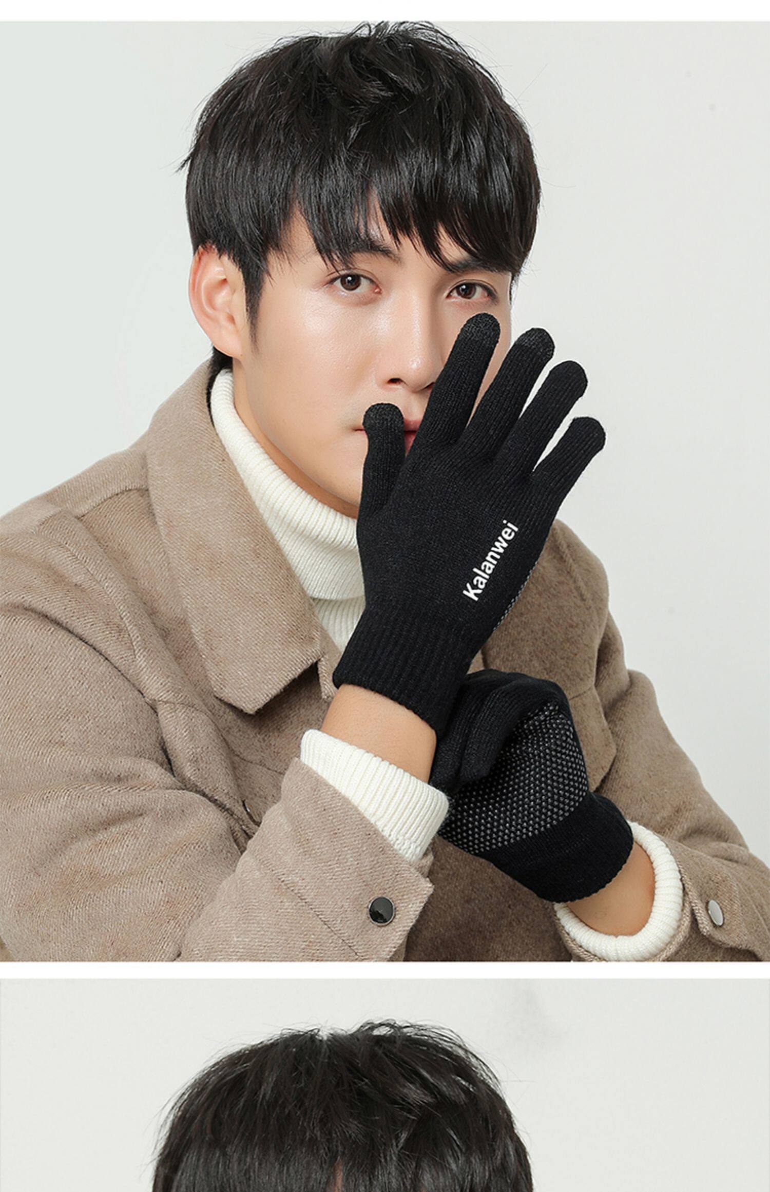 Мужские зимние удерживающие тепло демисезонные трикотажные перчатки, в корейском стиле