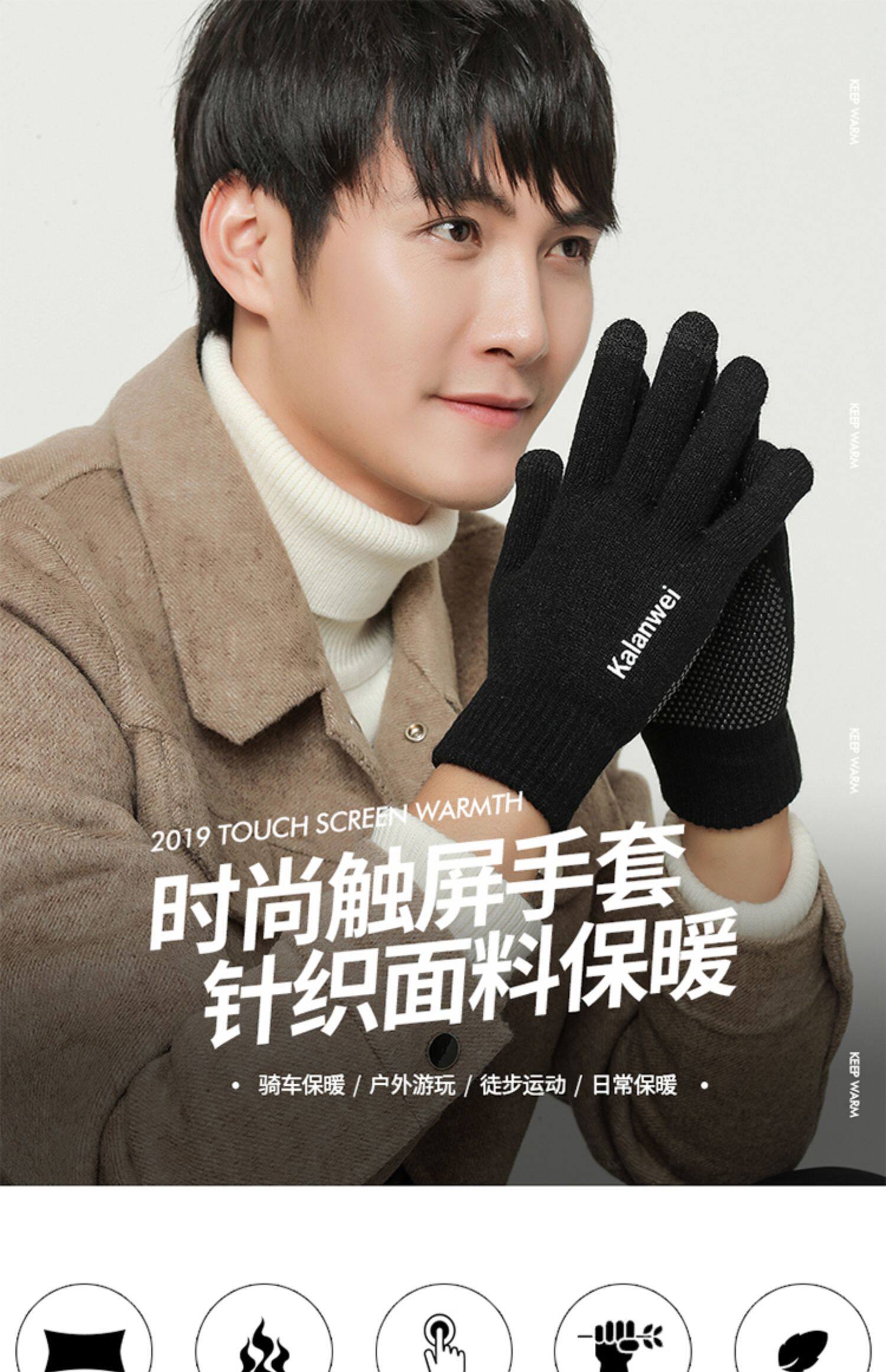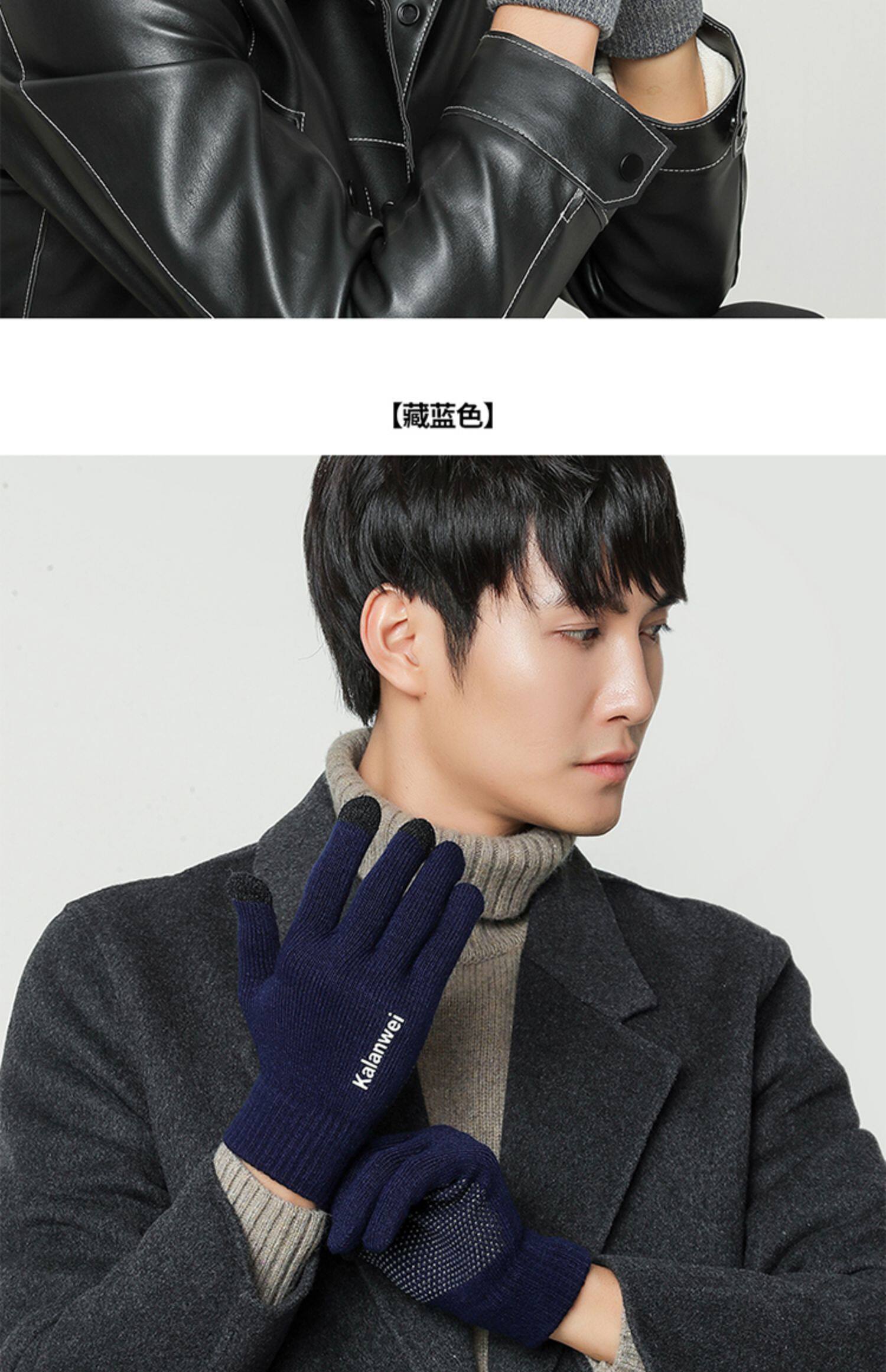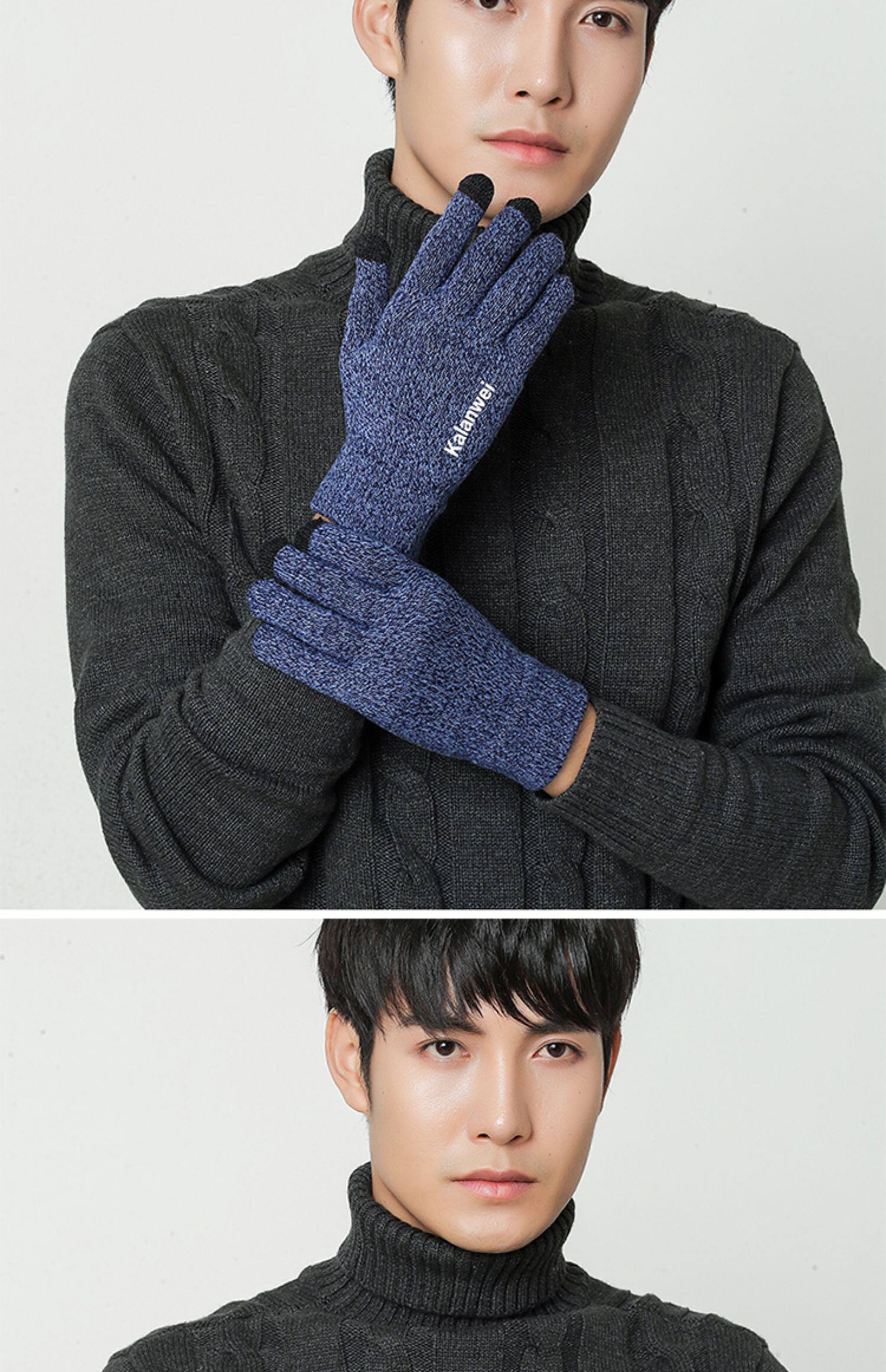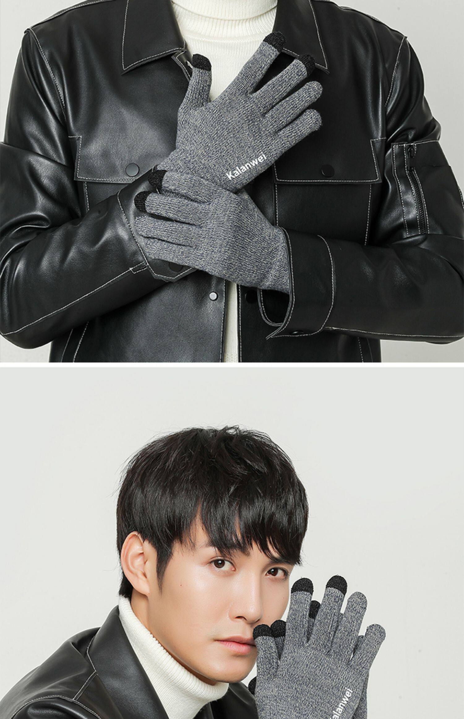 Мужские зимние удерживающие тепло демисезонные трикотажные перчатки, в корейском стиле