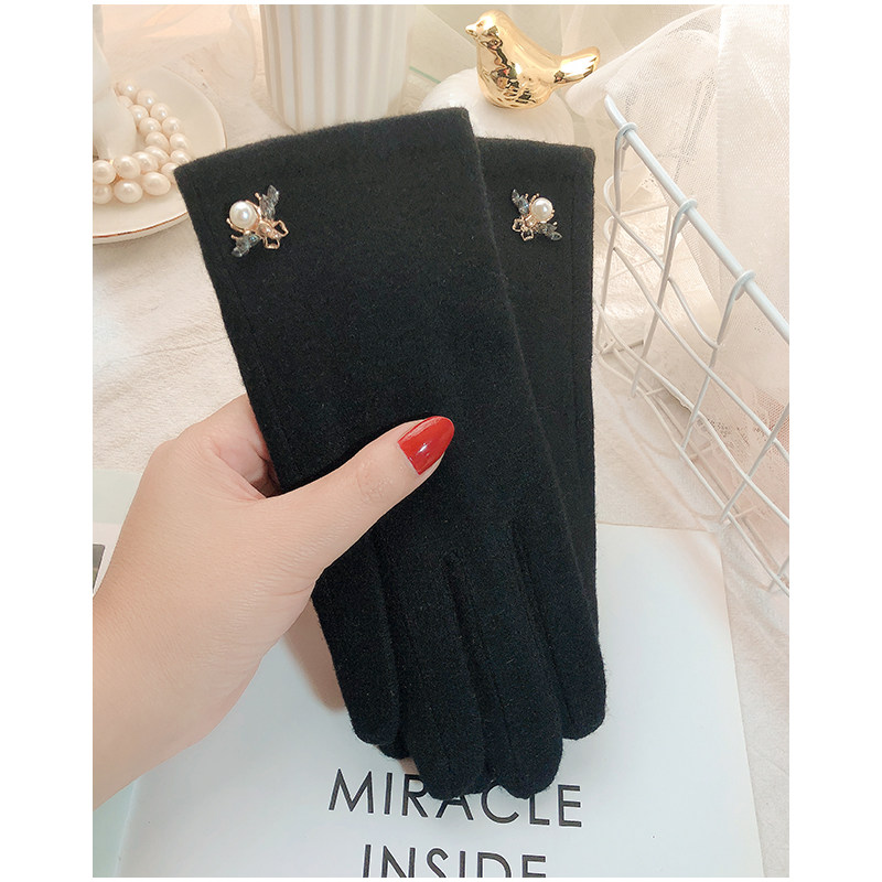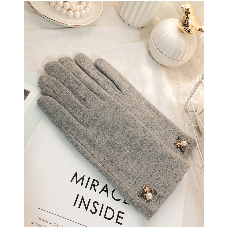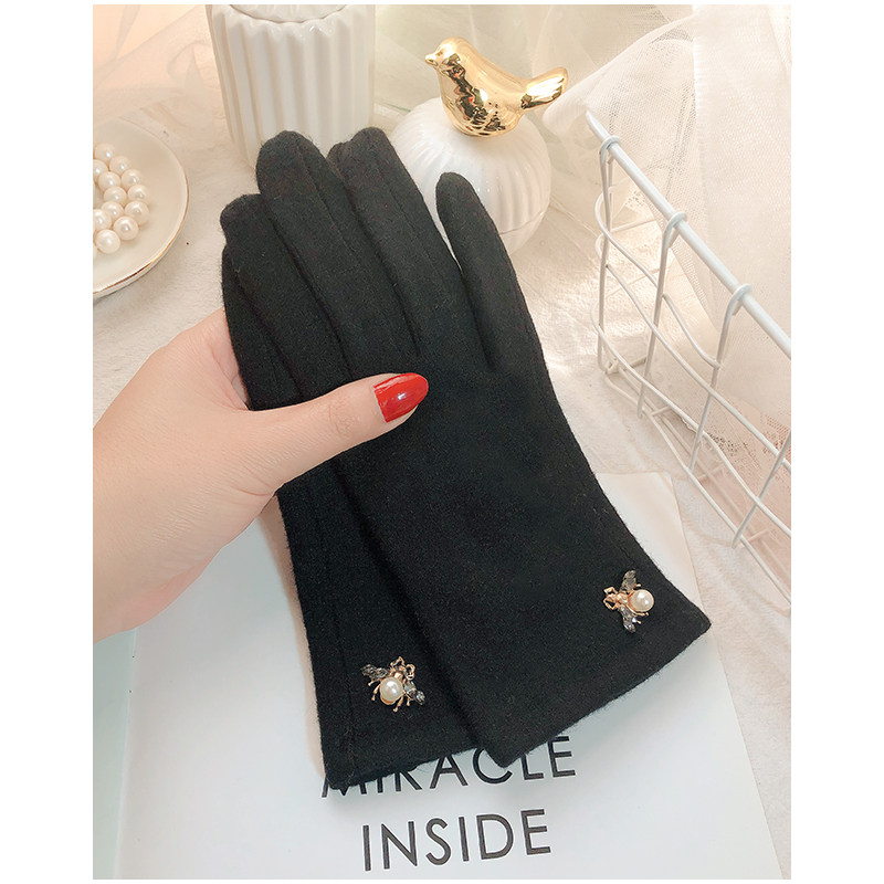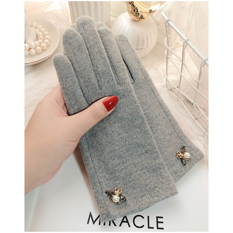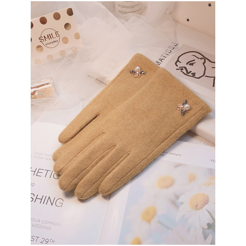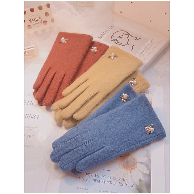 Перчатки, зимний флисовый удерживающий тепло осенний милый шерстяной кашемировый комплект, в корейском стиле