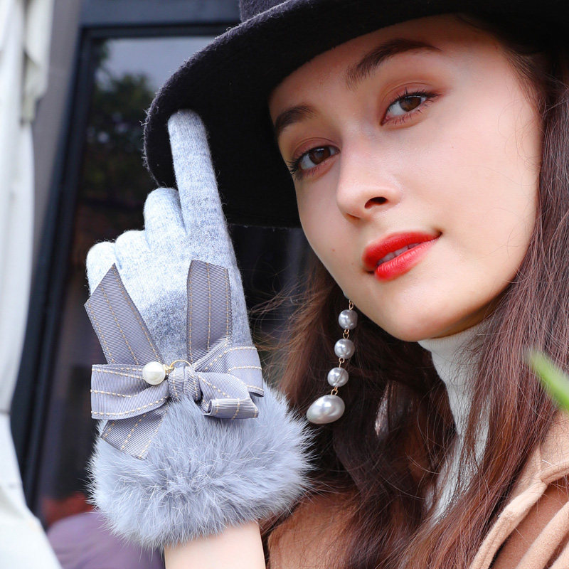 Кашемировые демисезонные перчатки, милый утепленный шерстяной комплект с бантиком