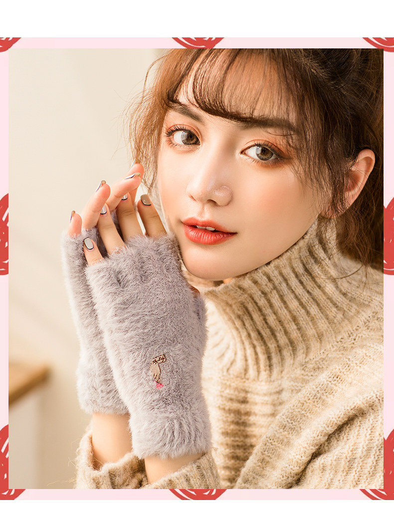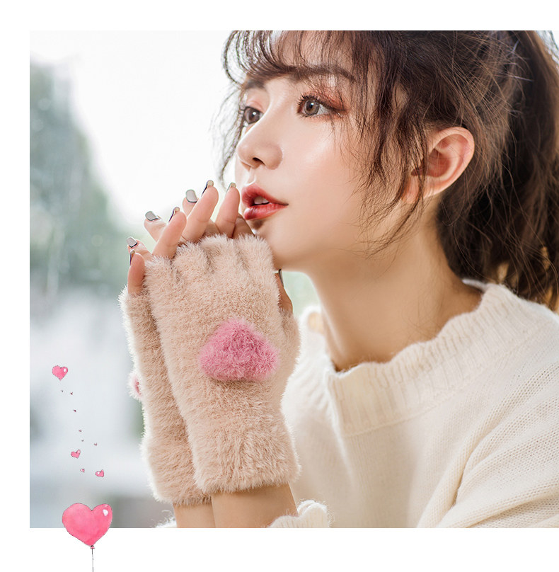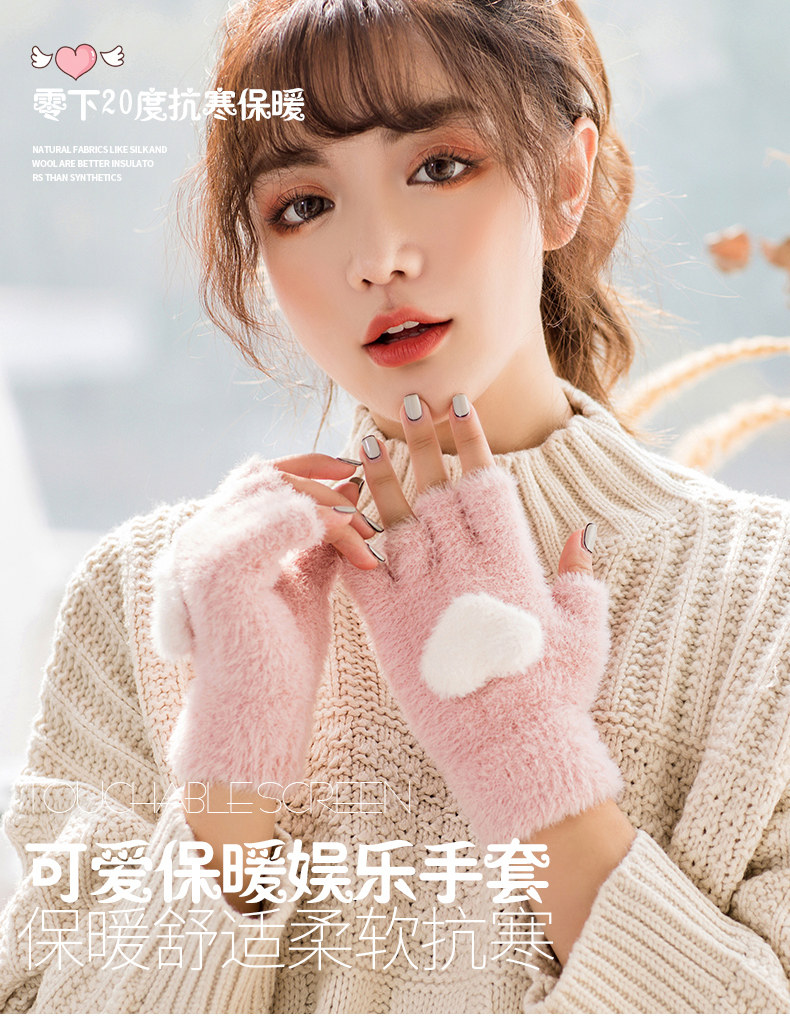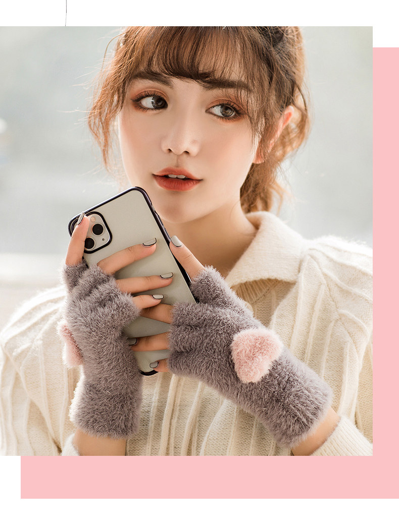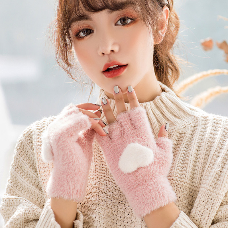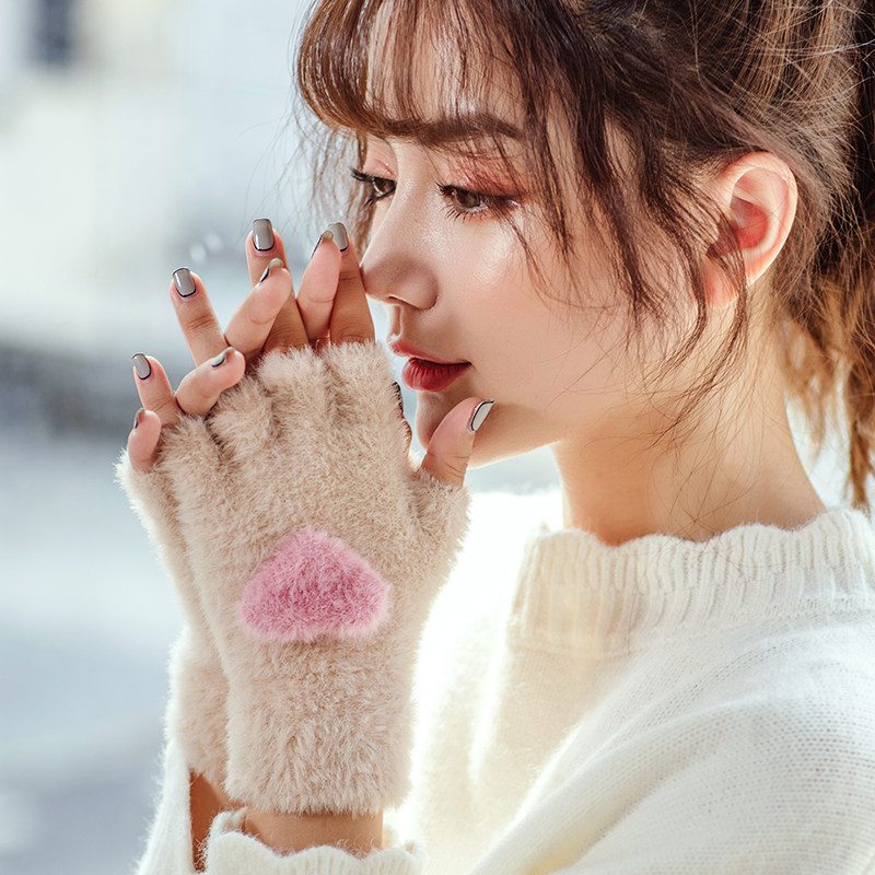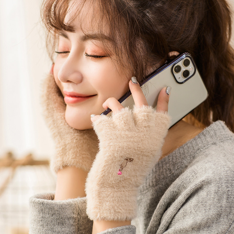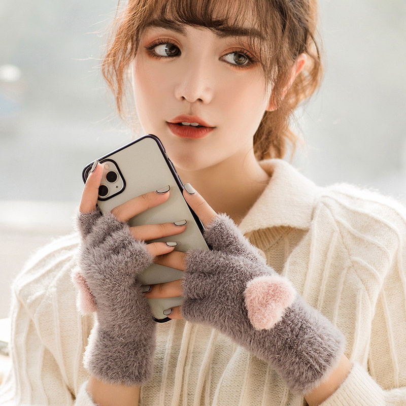 Перчатки, удерживающий тепло милый бархатный зимний комплект для школьников и студентов для офиса, без пальцев, в корейском стиле