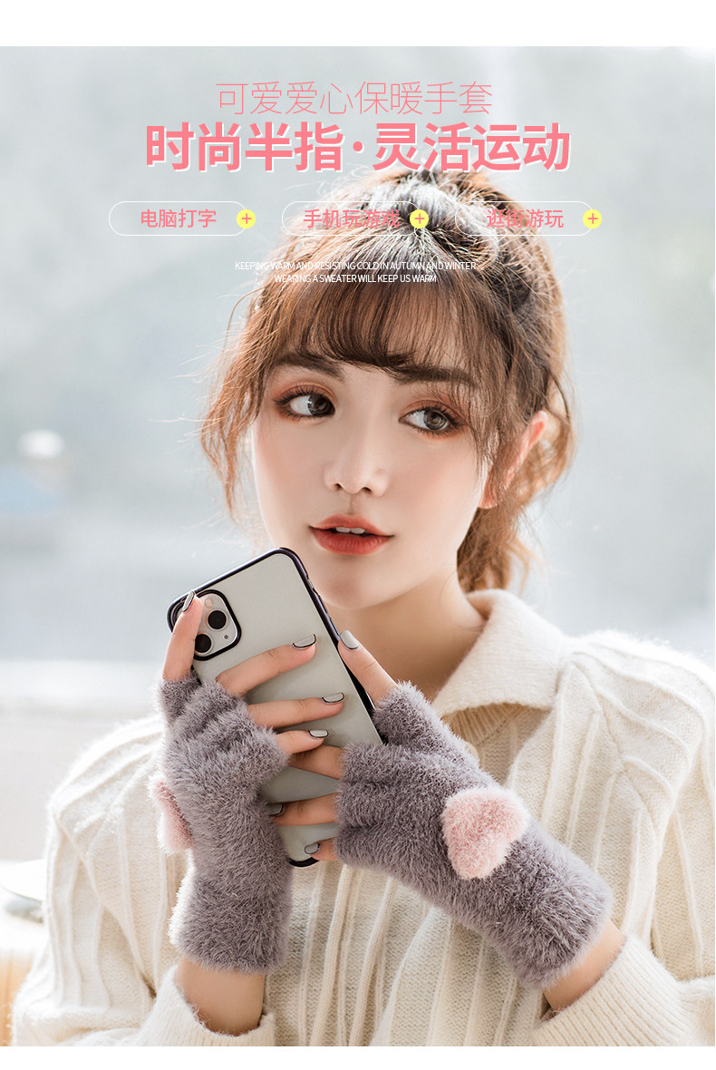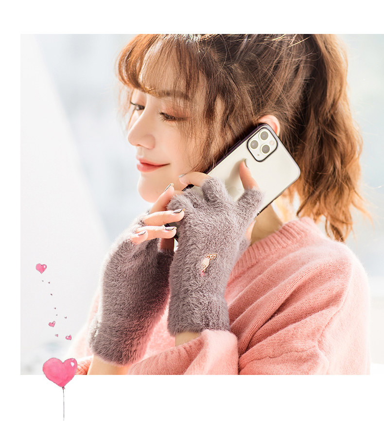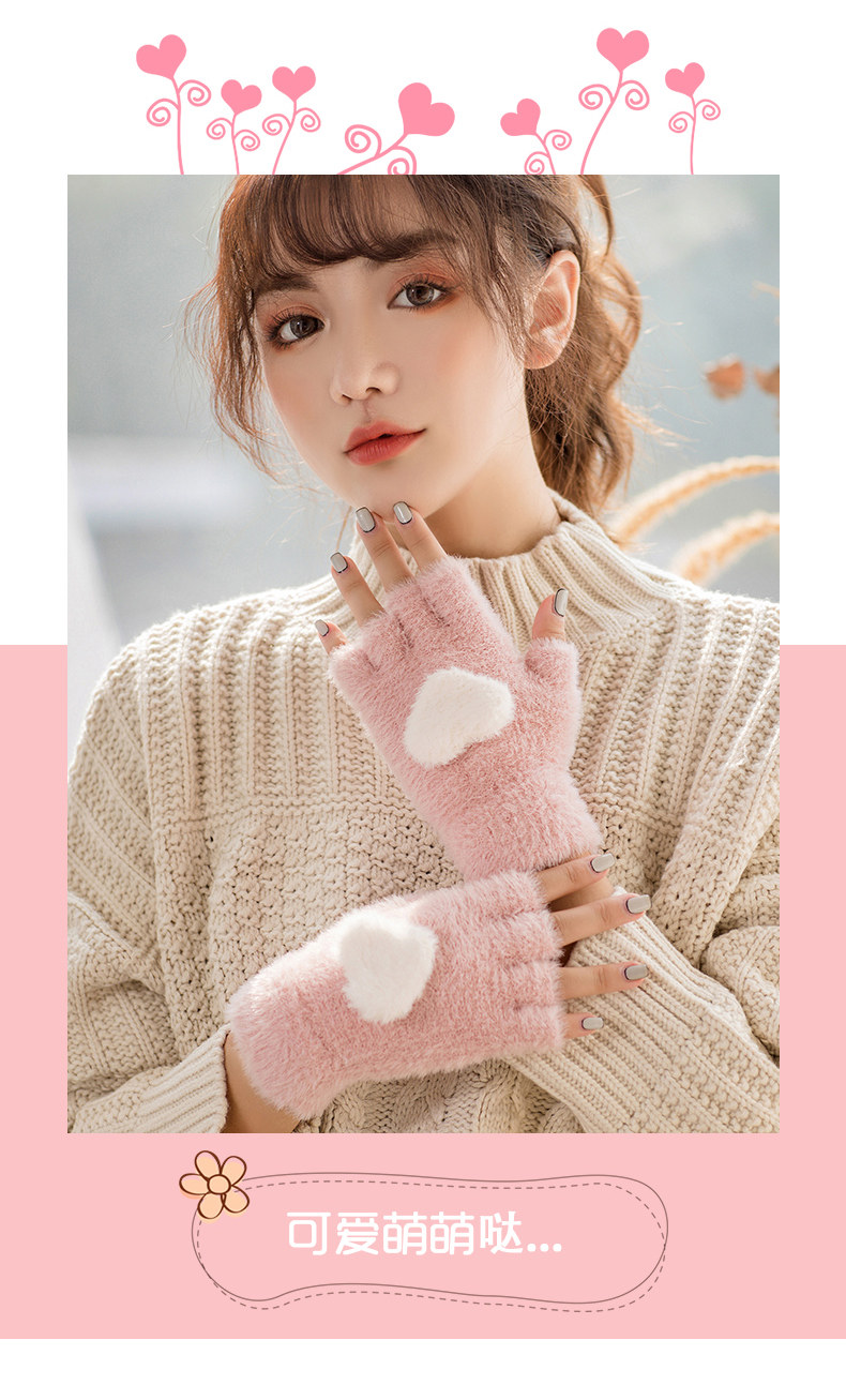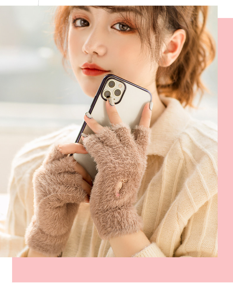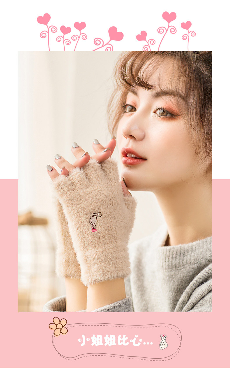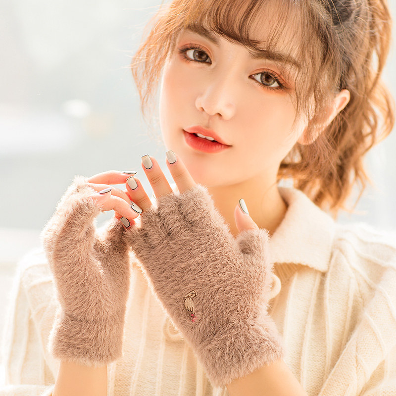 Перчатки, удерживающий тепло милый бархатный зимний комплект для школьников и студентов для офиса, без пальцев, в корейском стиле