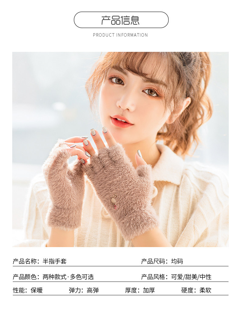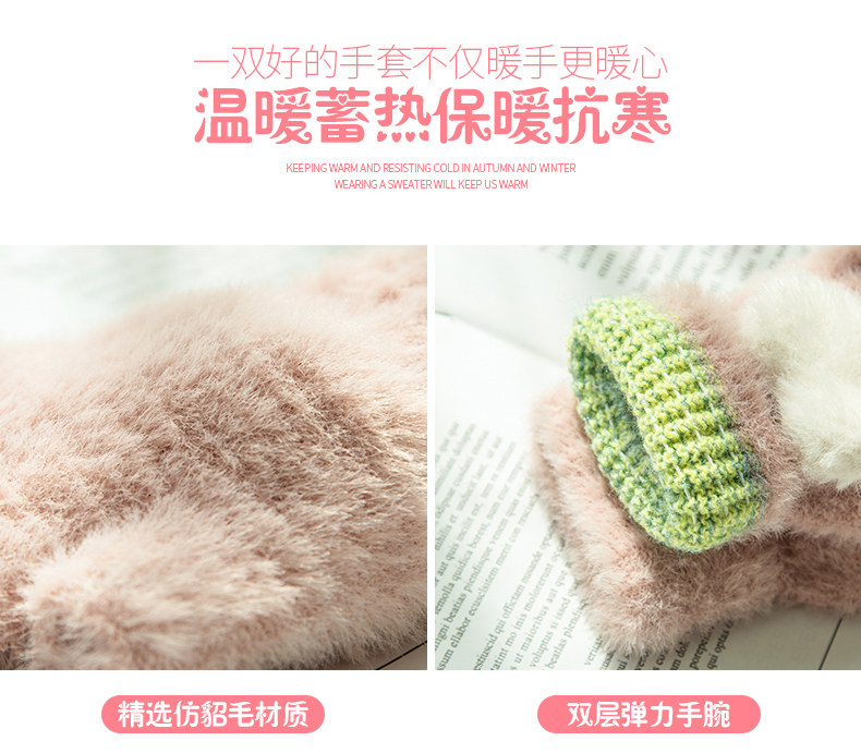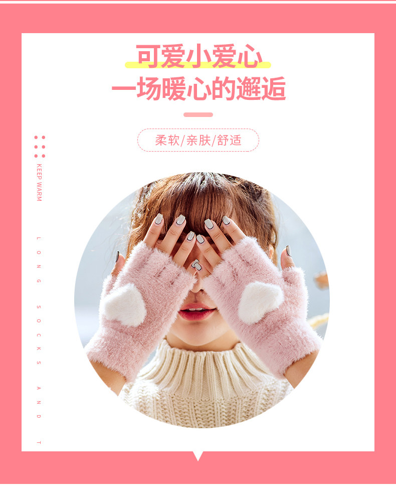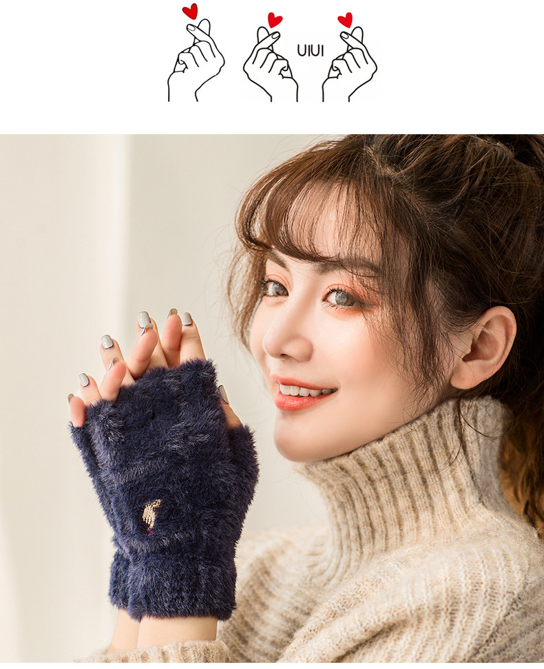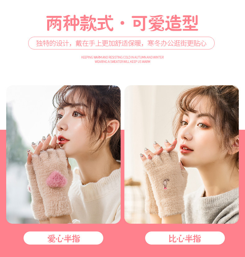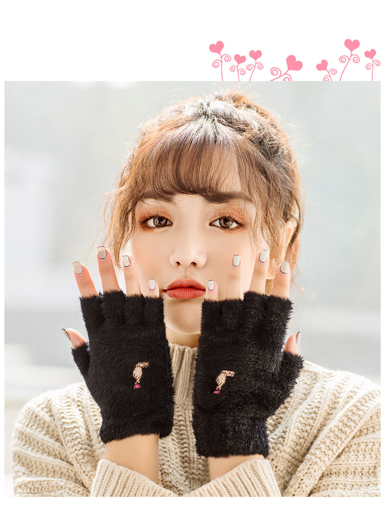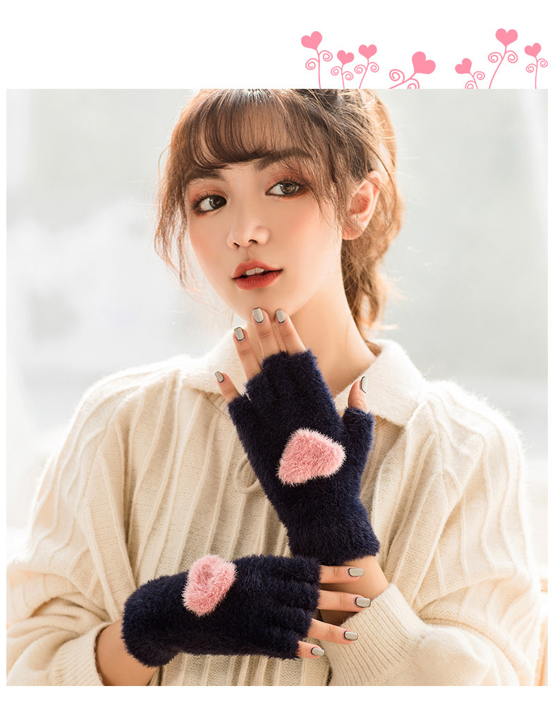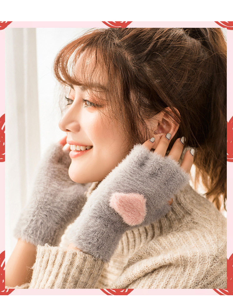 Перчатки, удерживающий тепло милый бархатный зимний комплект для школьников и студентов для офиса, без пальцев, в корейском стиле