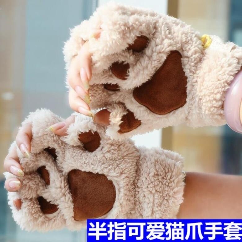 Зимние мужские милые мультяшные перчатки, в корейском стиле, без пальцев