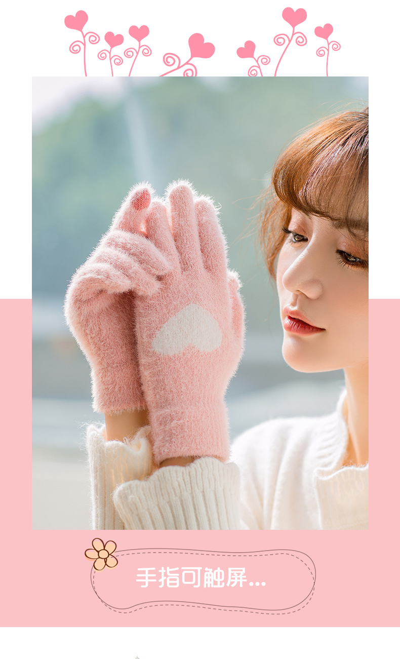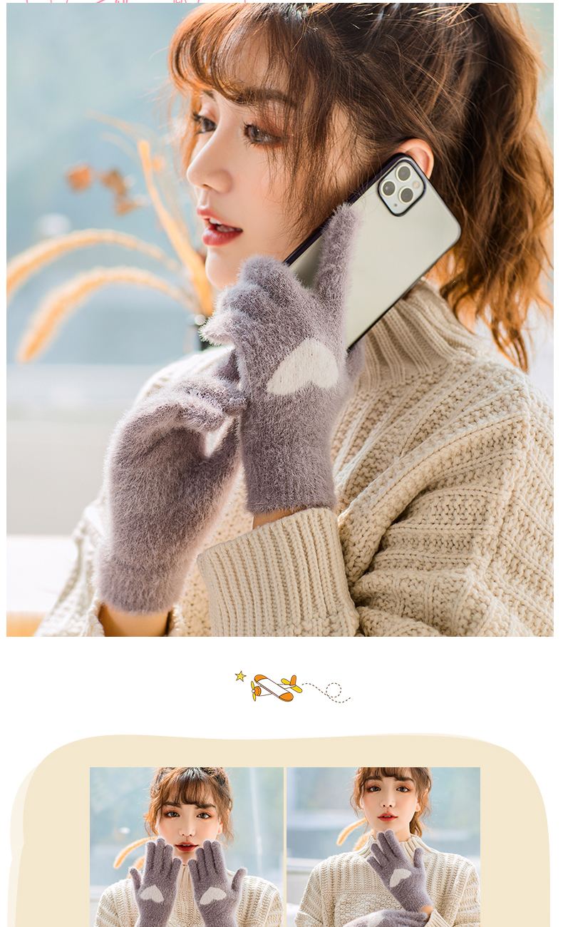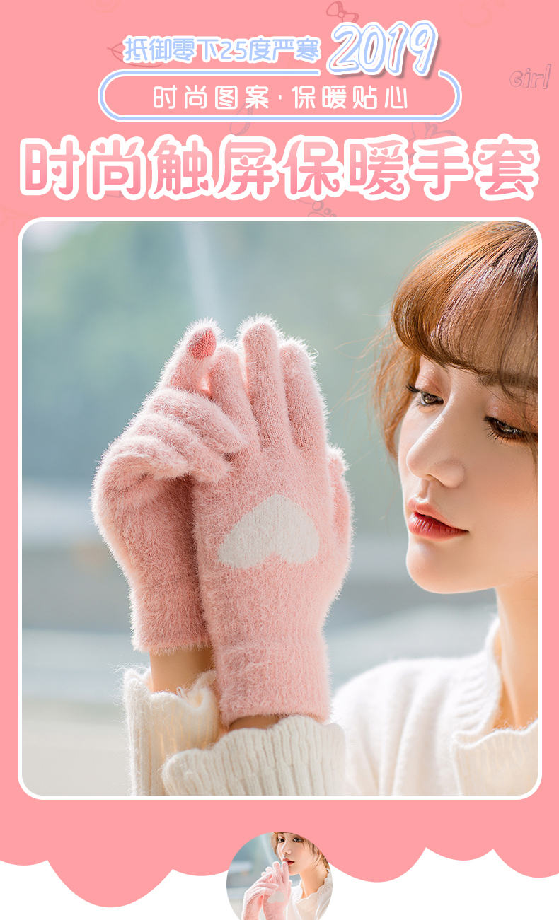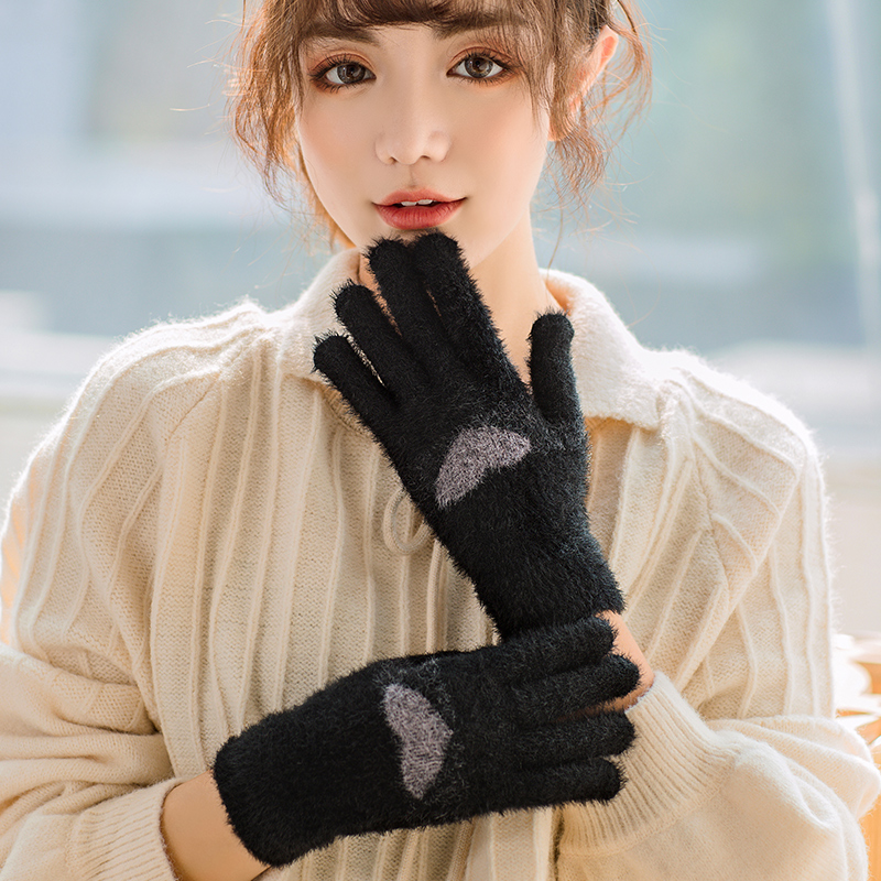 Перчатки, зимний универсальный брендовый милый комплект для школьников, утепленный удерживающий тепло мобильный телефон, в корейском стиле, сенсорный экран