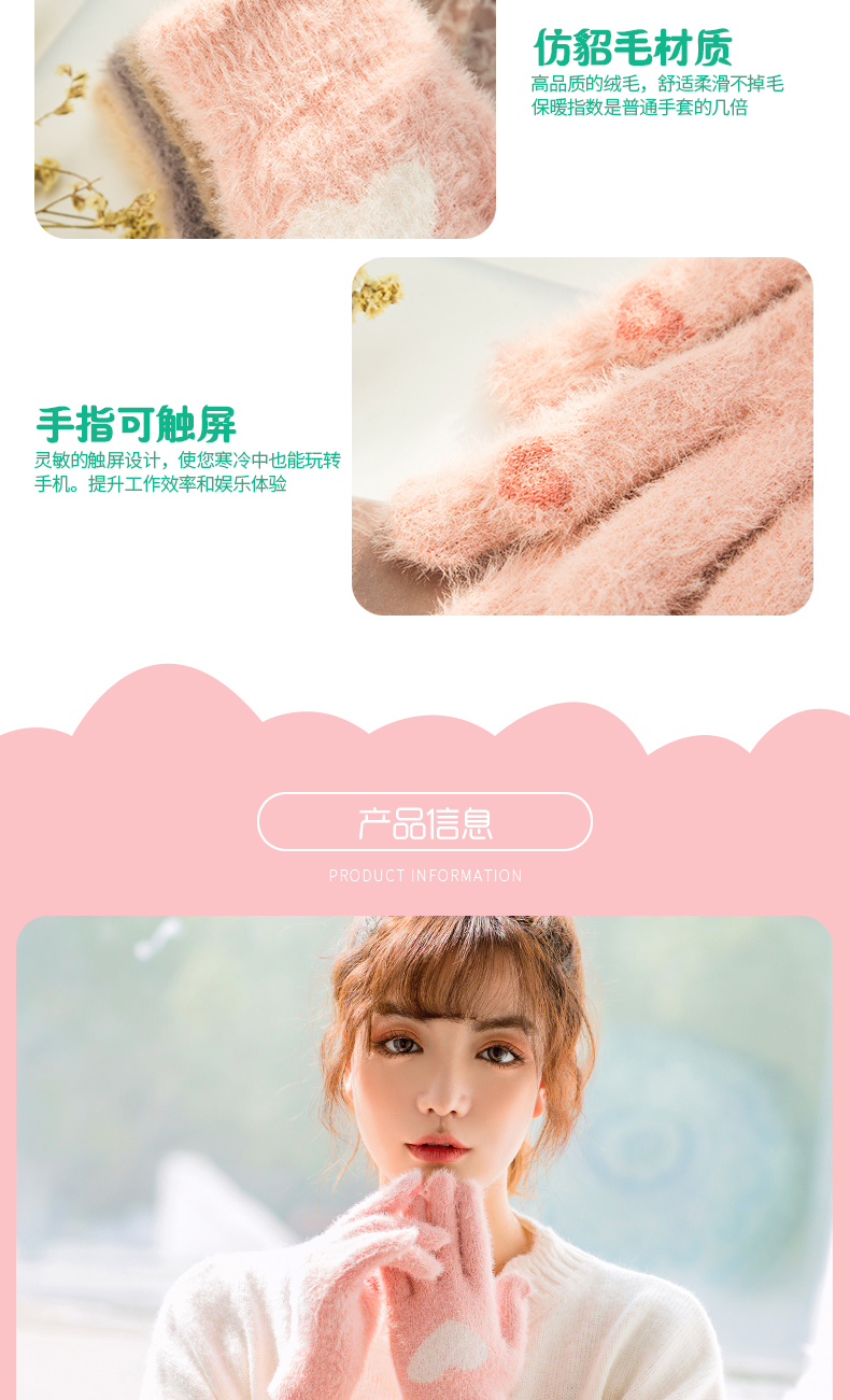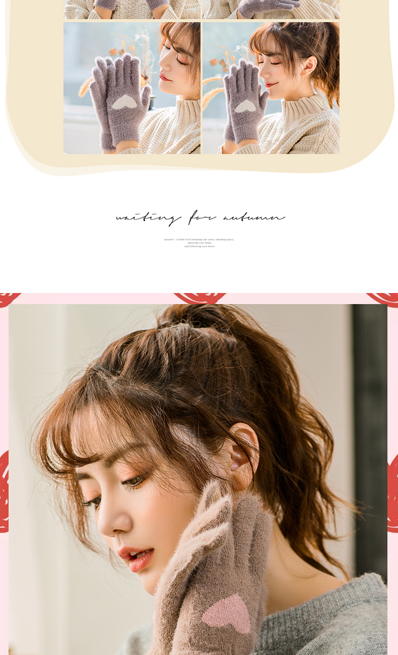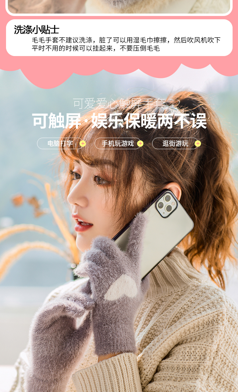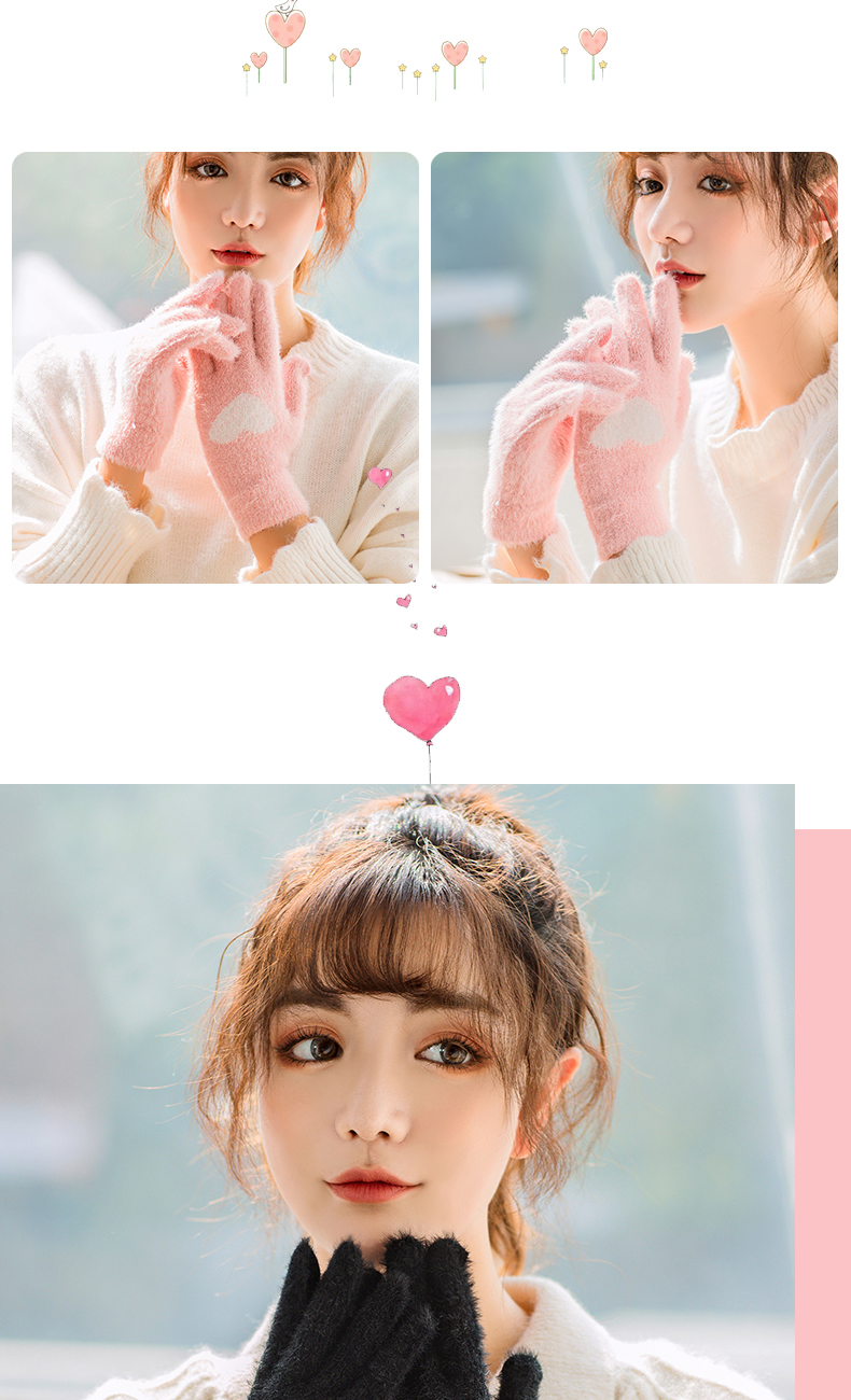 Перчатки, зимний универсальный брендовый милый комплект для школьников, утепленный удерживающий тепло мобильный телефон, в корейском стиле, сенсорный экран