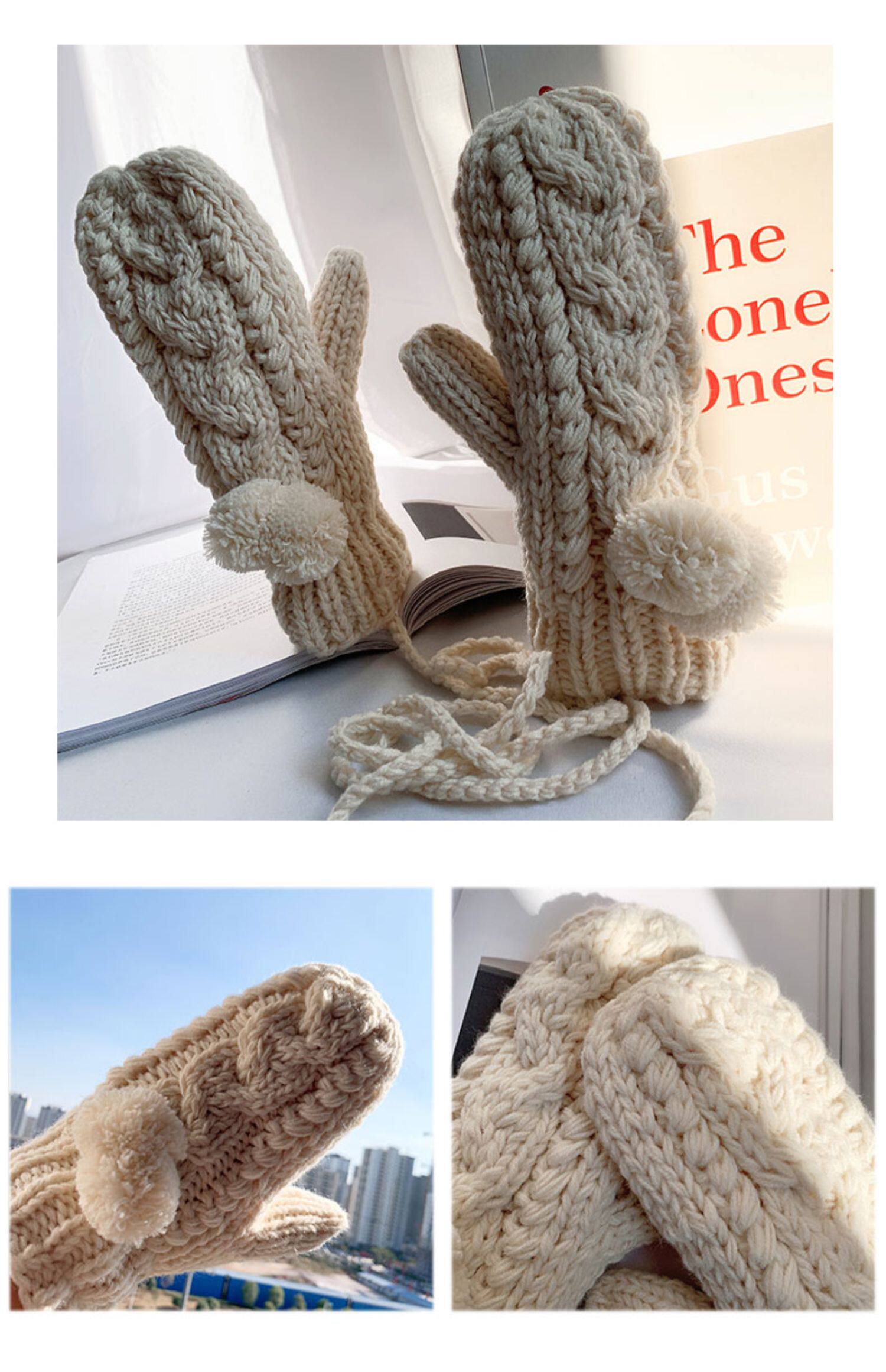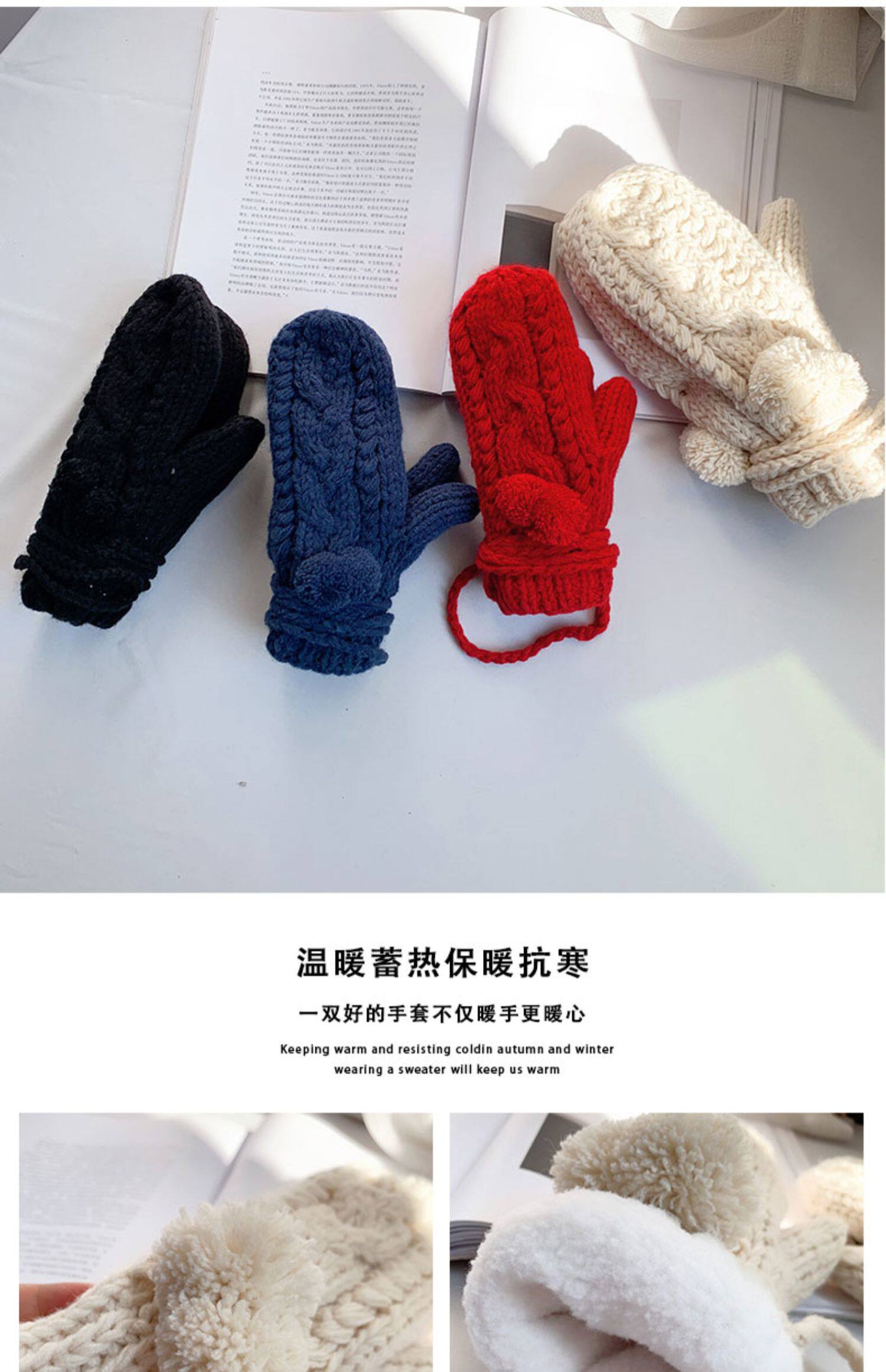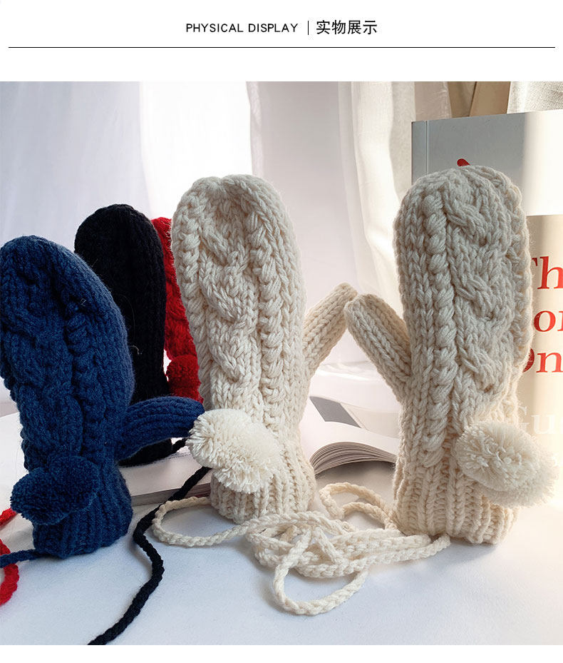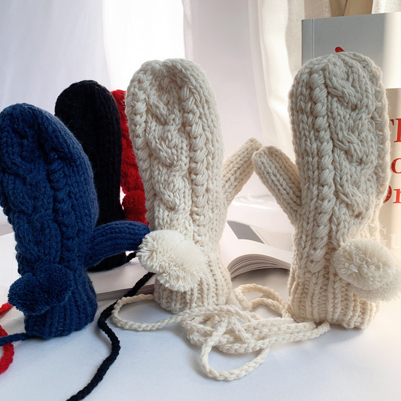 Зимние флисовые удерживающие тепло шерстяные перчатки, японский милый комплект с косичкой
