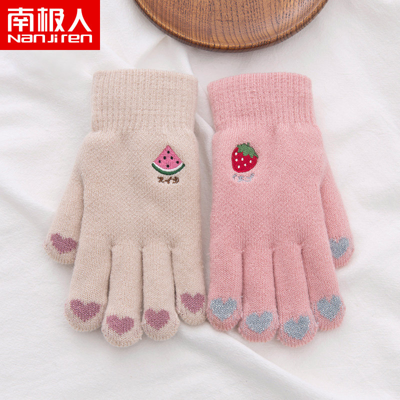 Демисезонные перчатки, утепленный дорожный ветрозащитный шерстяной трикотажный комплект для школьников