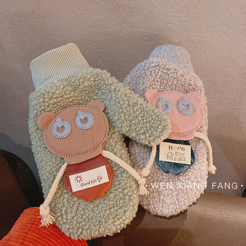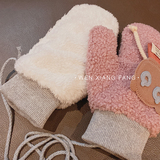Брендовые зимние милые флисовые мультяшные удерживающие тепло перчатки, в корейском стиле