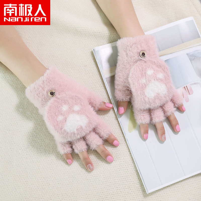 南极人 Перчатки, зимний удерживающий тепло бархатный милый комплект для школьников, без пальцев, осенние