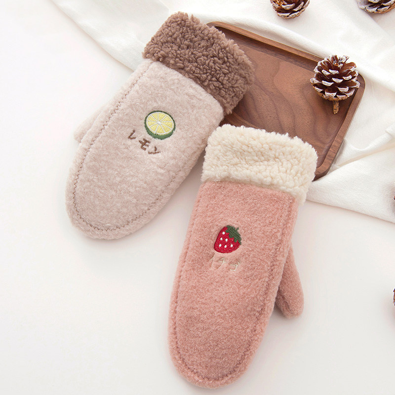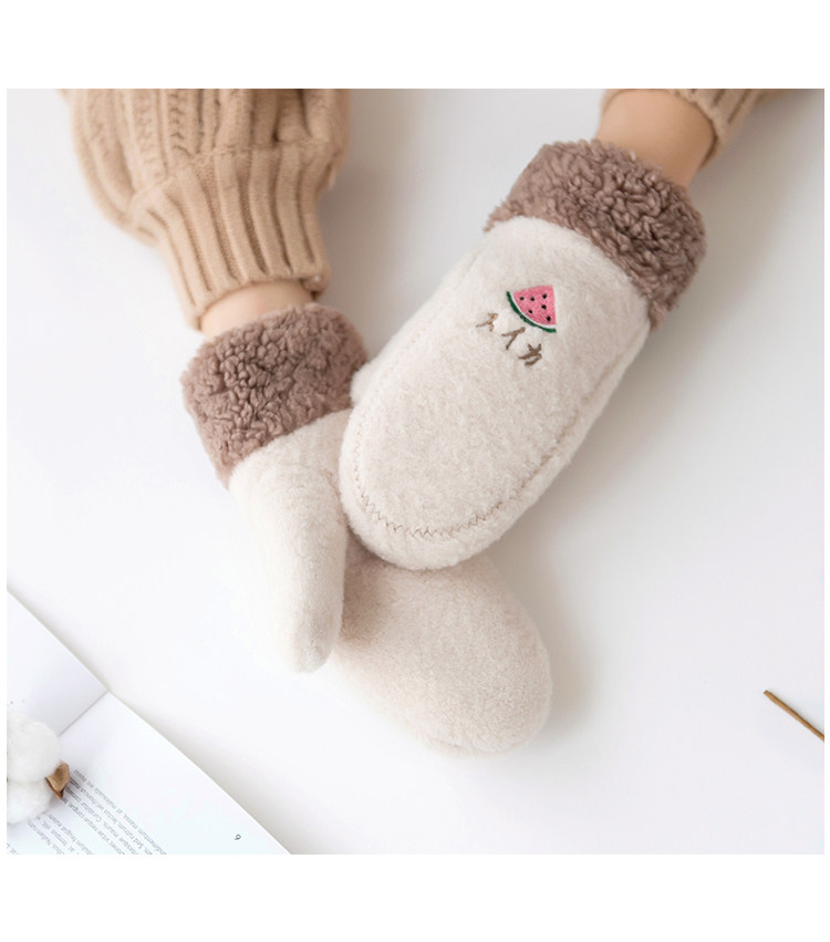 Перчатки, зимний бархатный утепленный японский мультяшный удерживающий тепло комплект для школьников, в корейском стиле